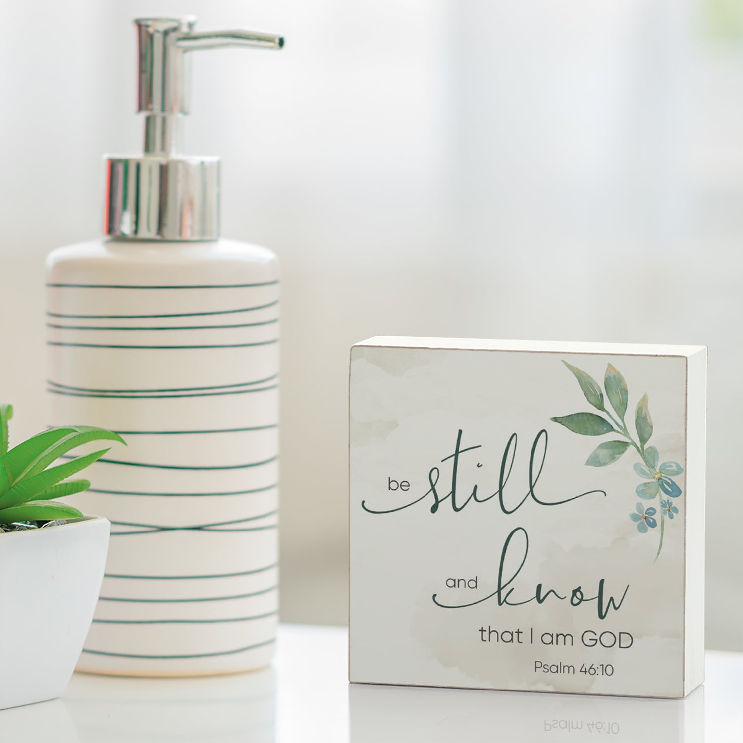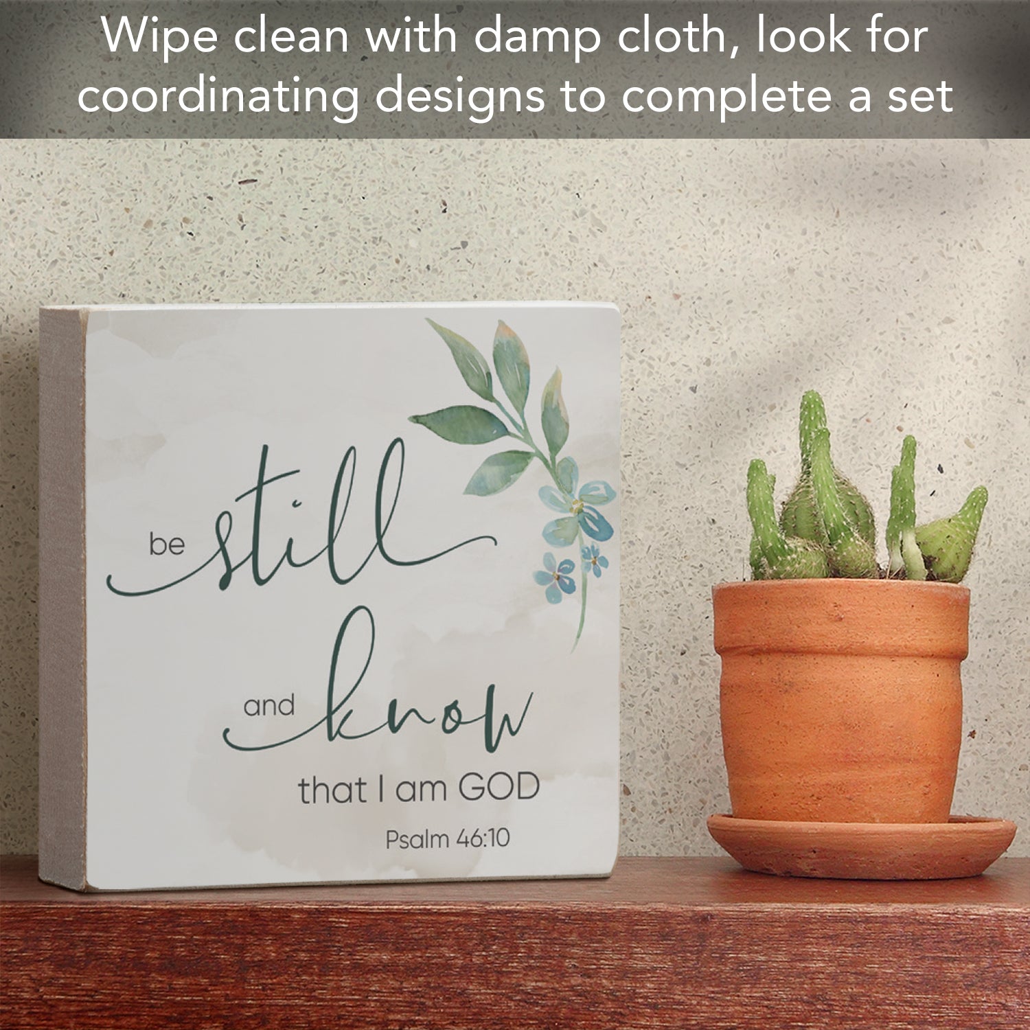 Be Still and Know Decorative Faith Driven Wooden Home Accent Sign 3.75" Square Made in the USA