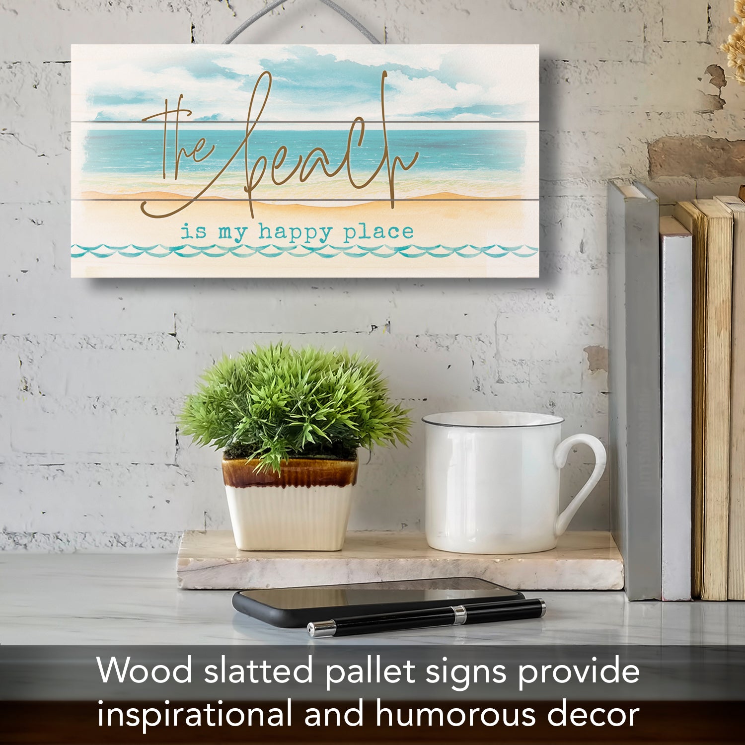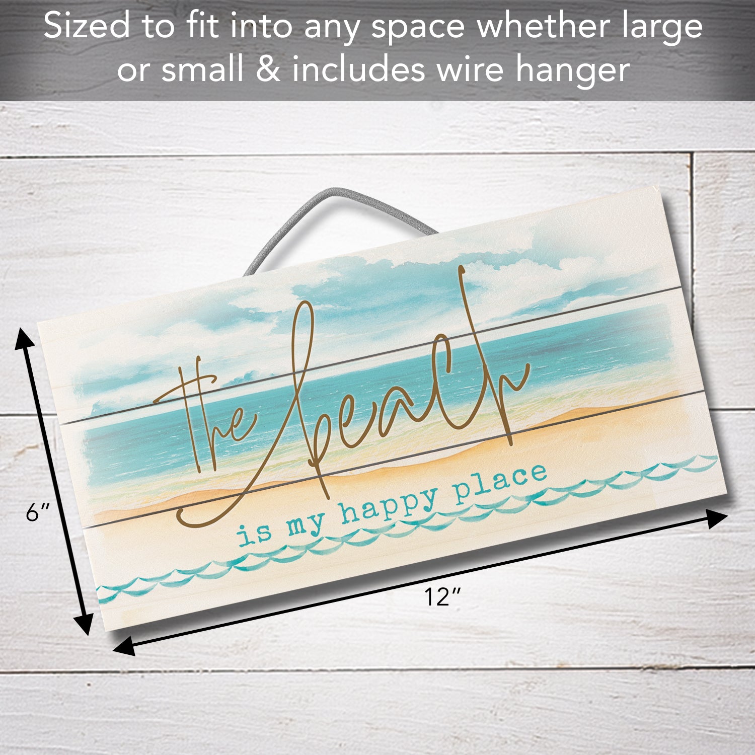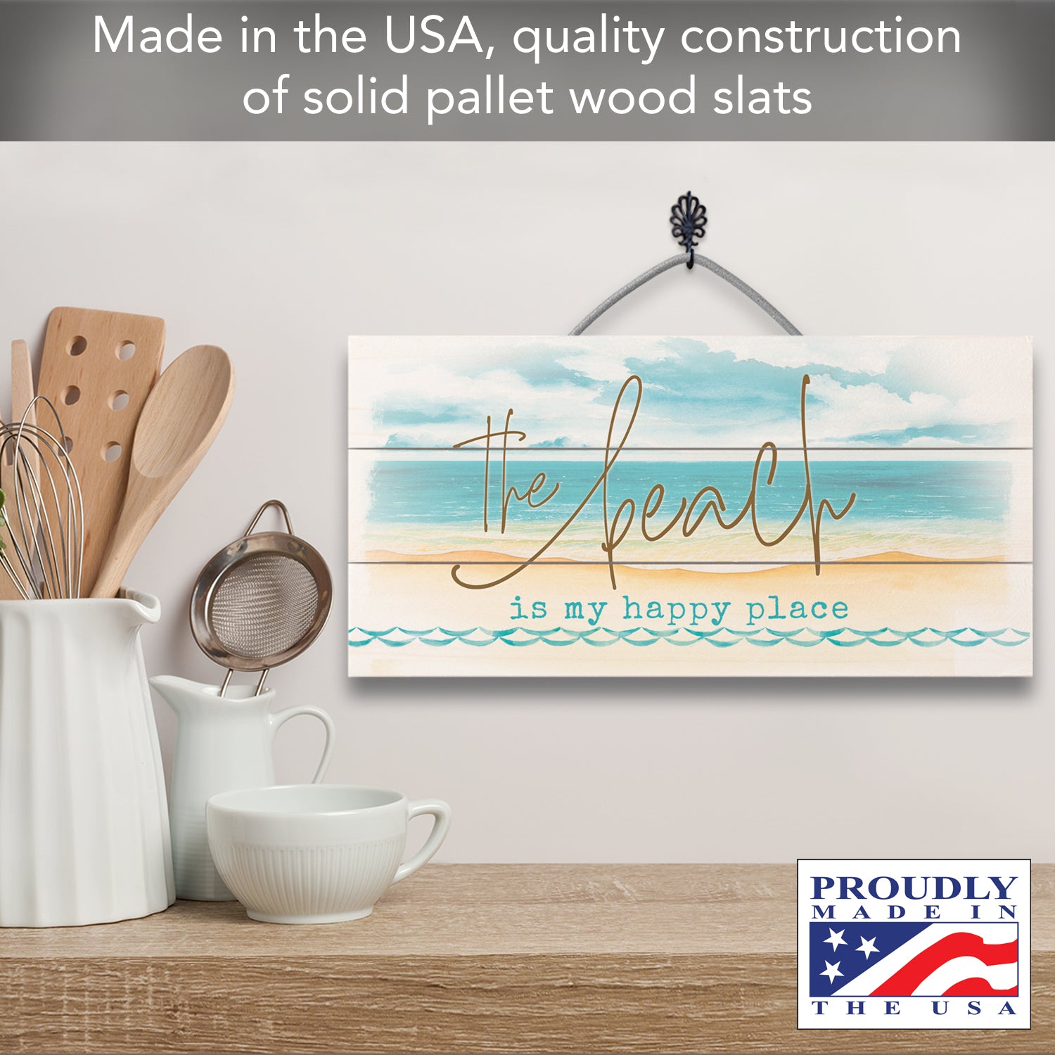 Beach is My Happy Place Handcrafted Pallet Wood Sign 12" x 6" Made in the USA Wire Doubles as an Easel