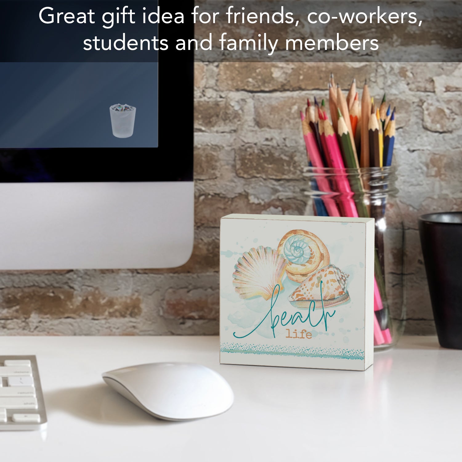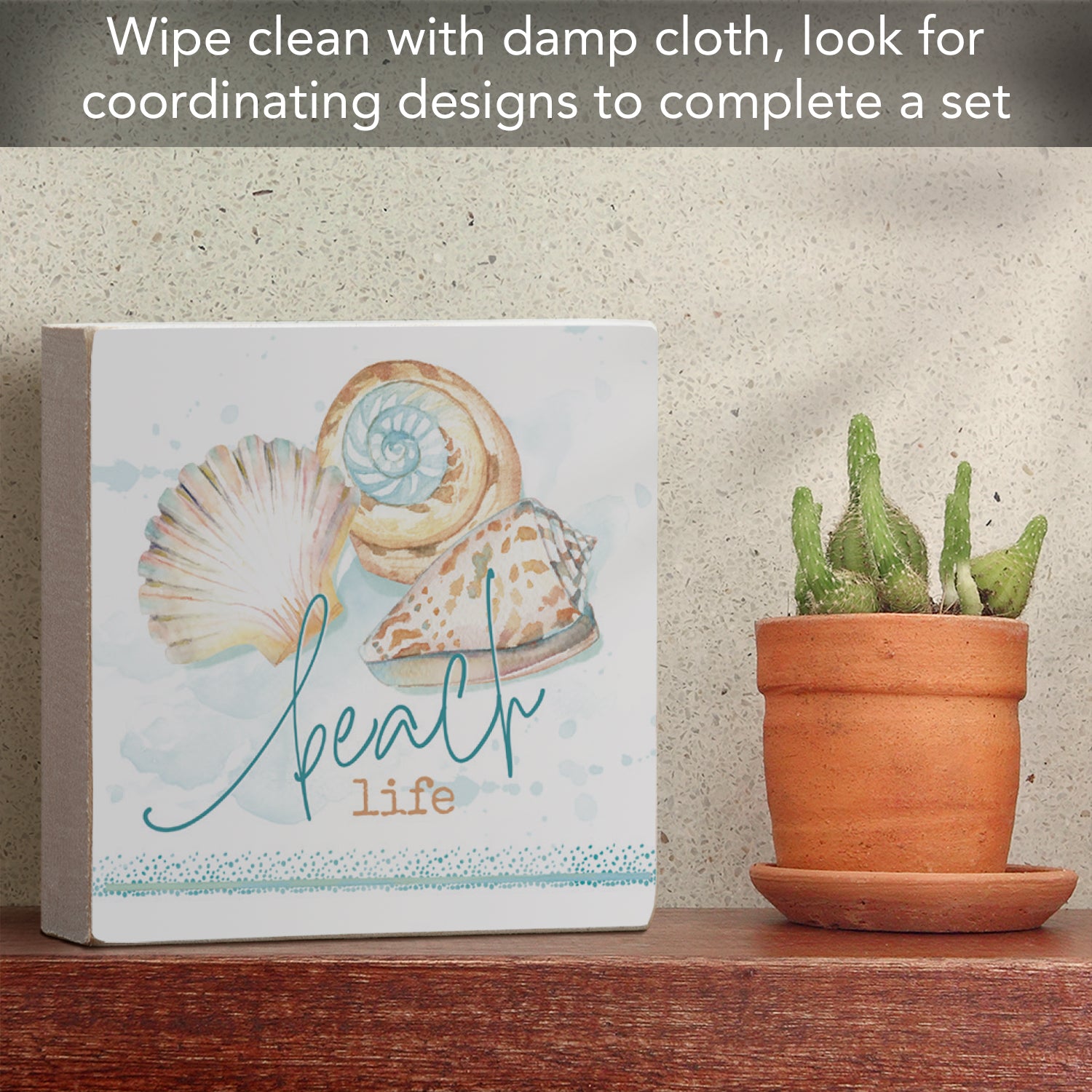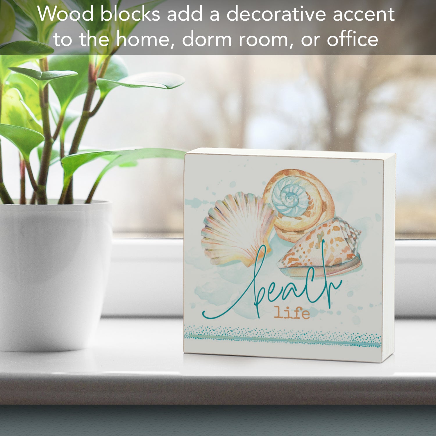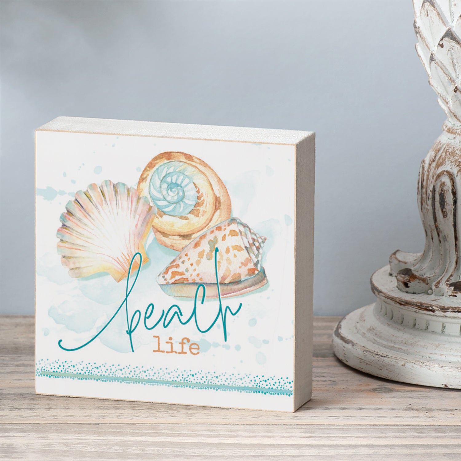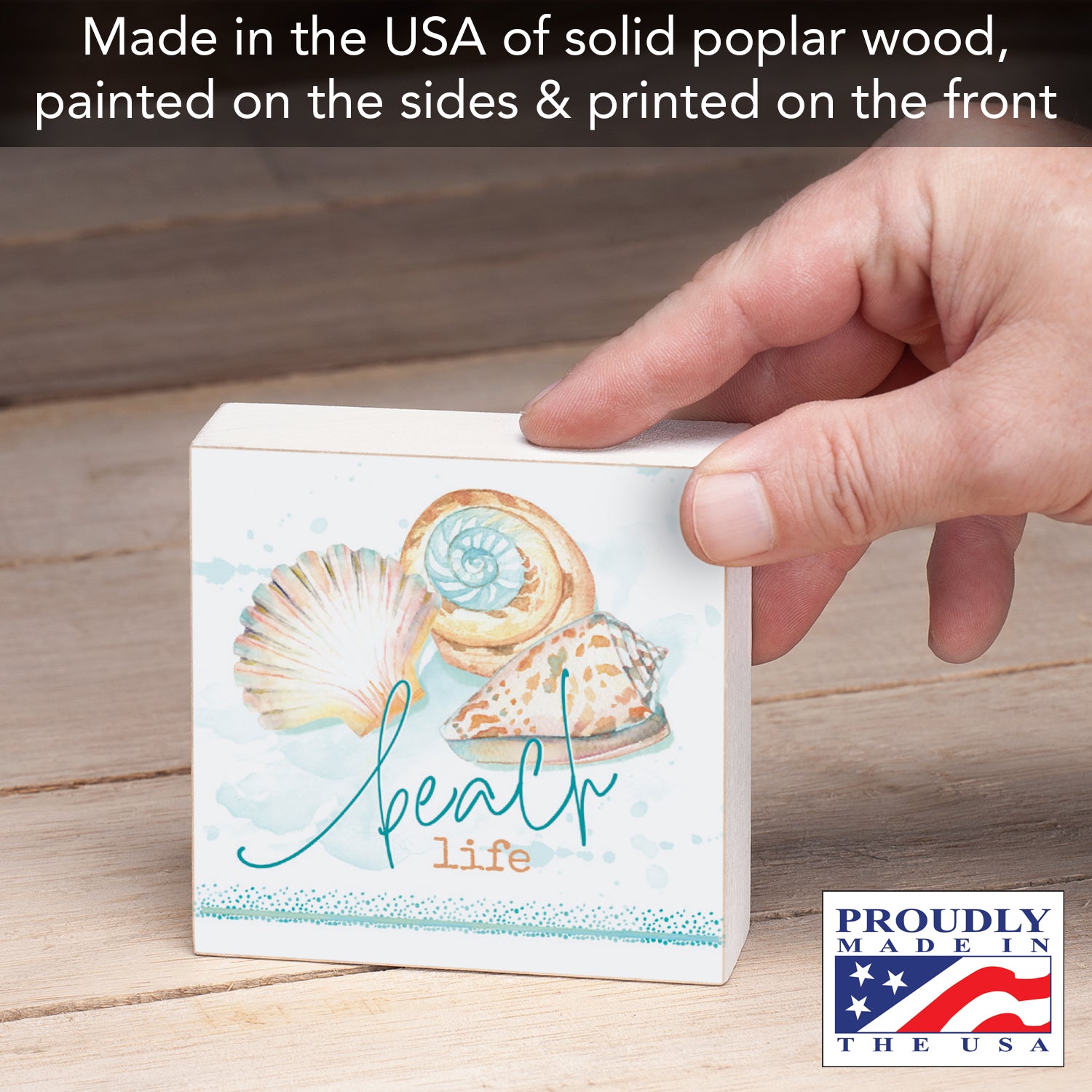 "Beach Life" Artistic Solid Wood Block Sign 3.75” Square Made in the USA