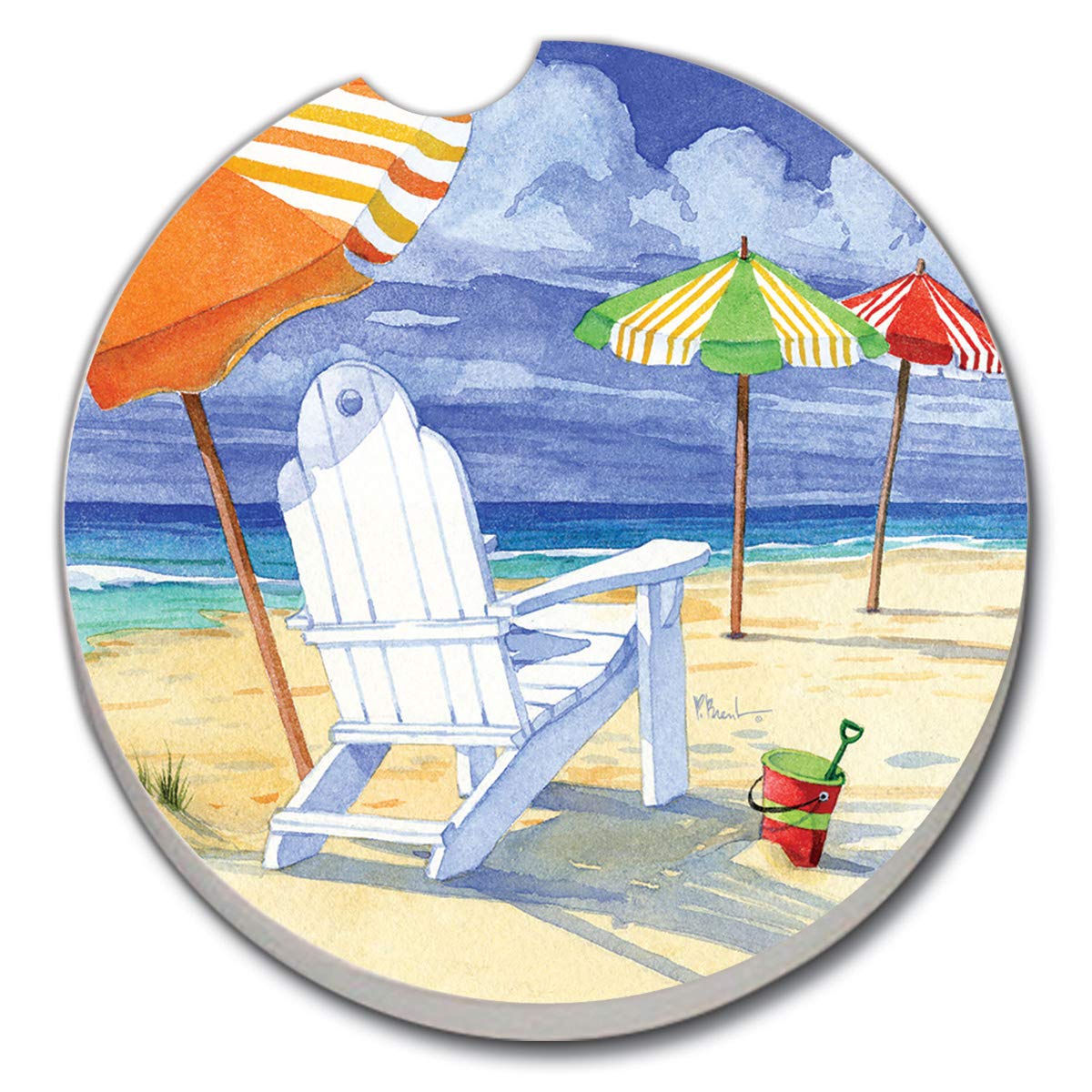 Beach Umbrella Single Absorbent Stone Car Coaster 2.6” Diameter Manufactured in the USA