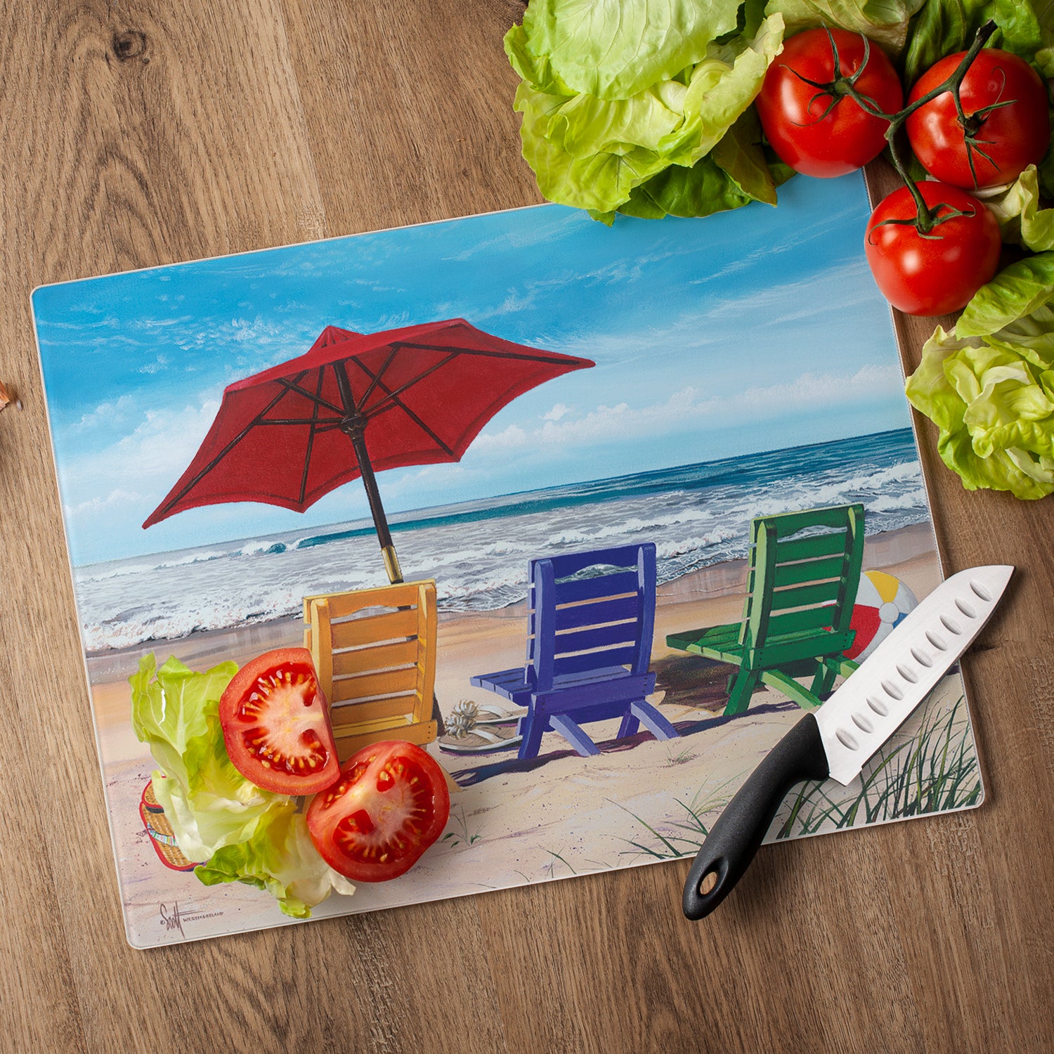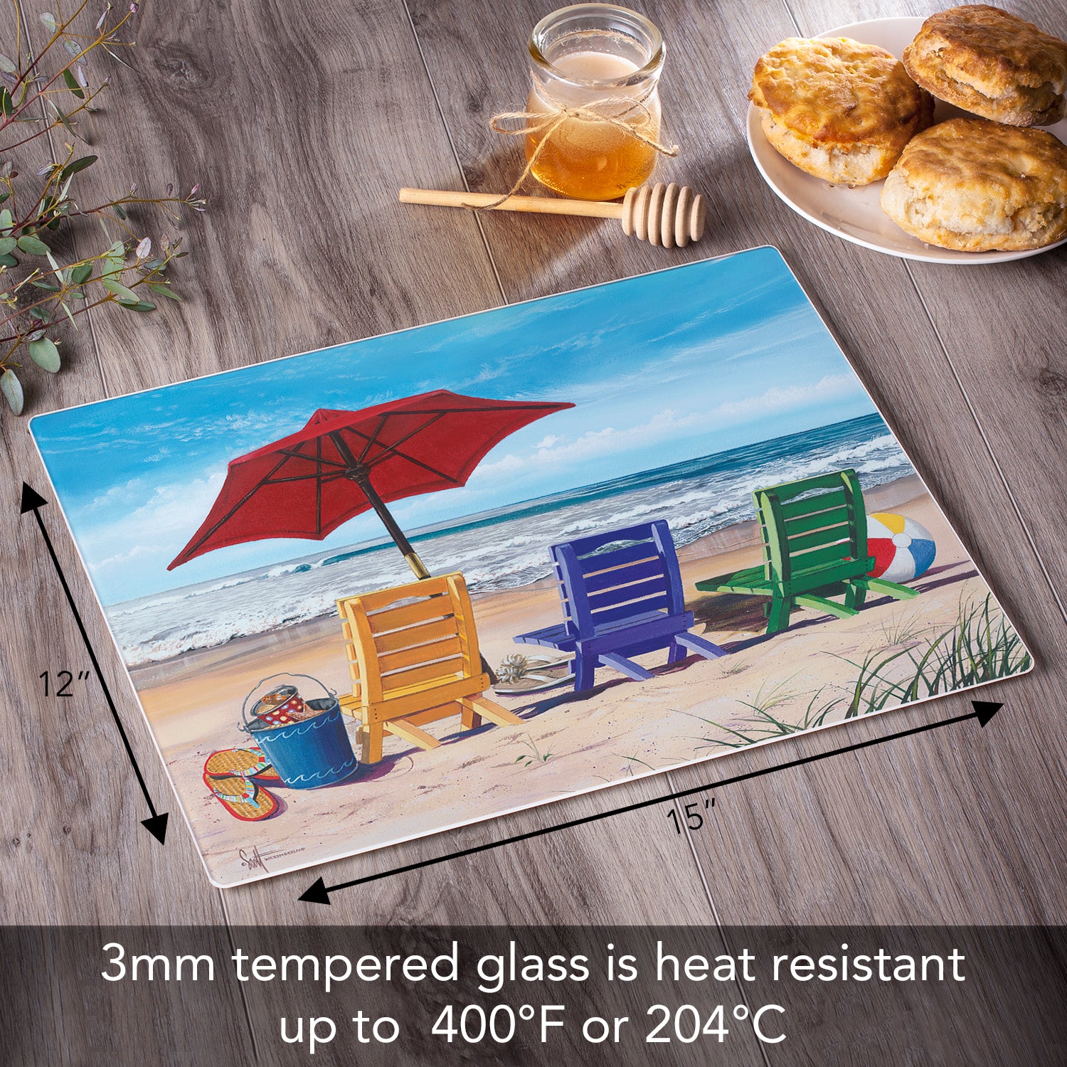 CounterArt Beachy Keen 3mm Tempered Glass Cutting Boards 12" x 15"