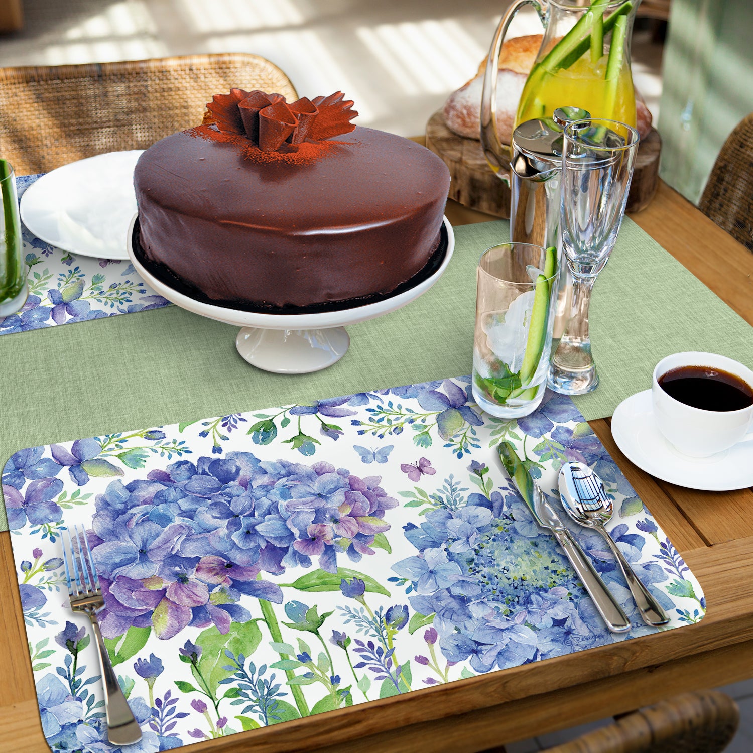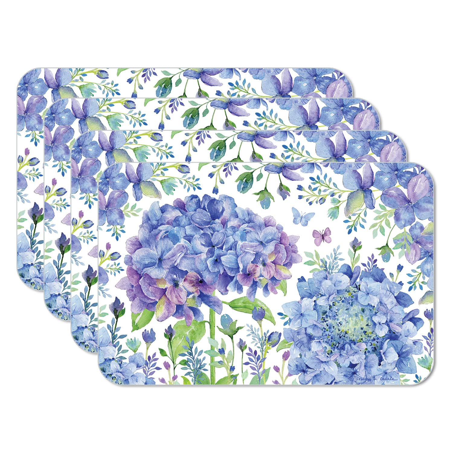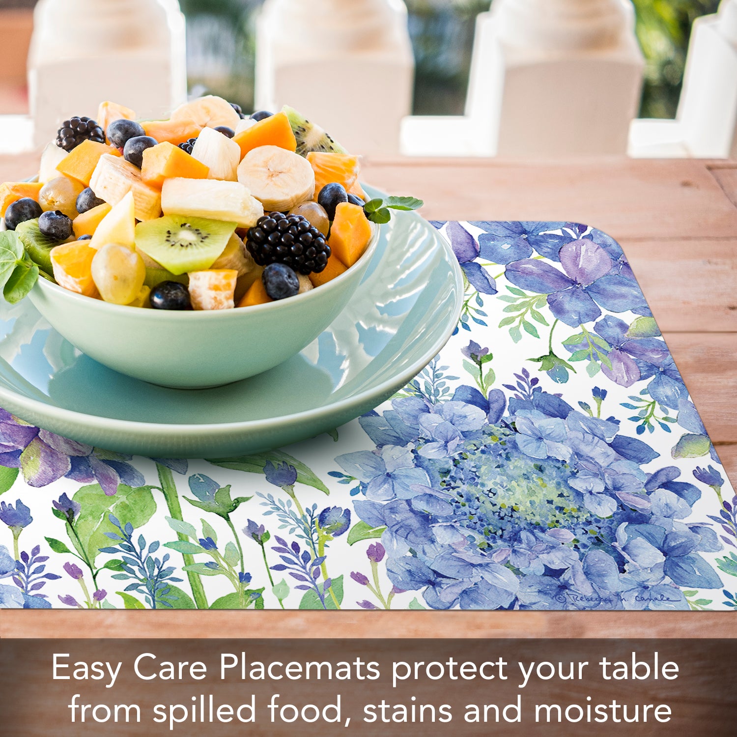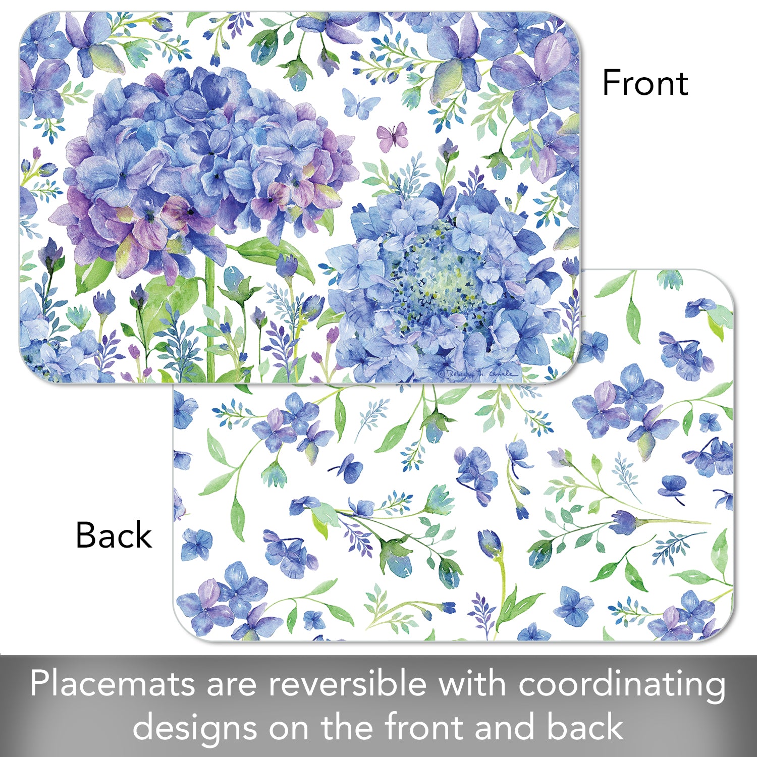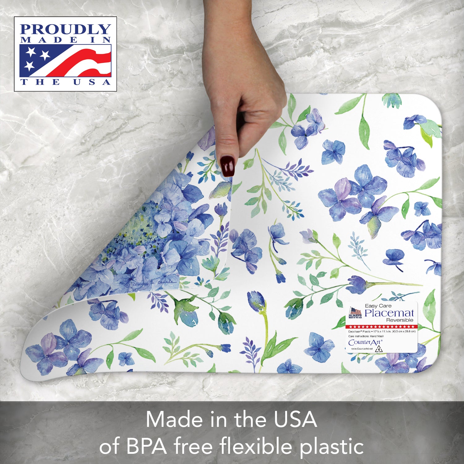 CounterArt Beautiful Hydrangea 4 Pack Reversible Easy Care Flexible Placemats Made in the USA