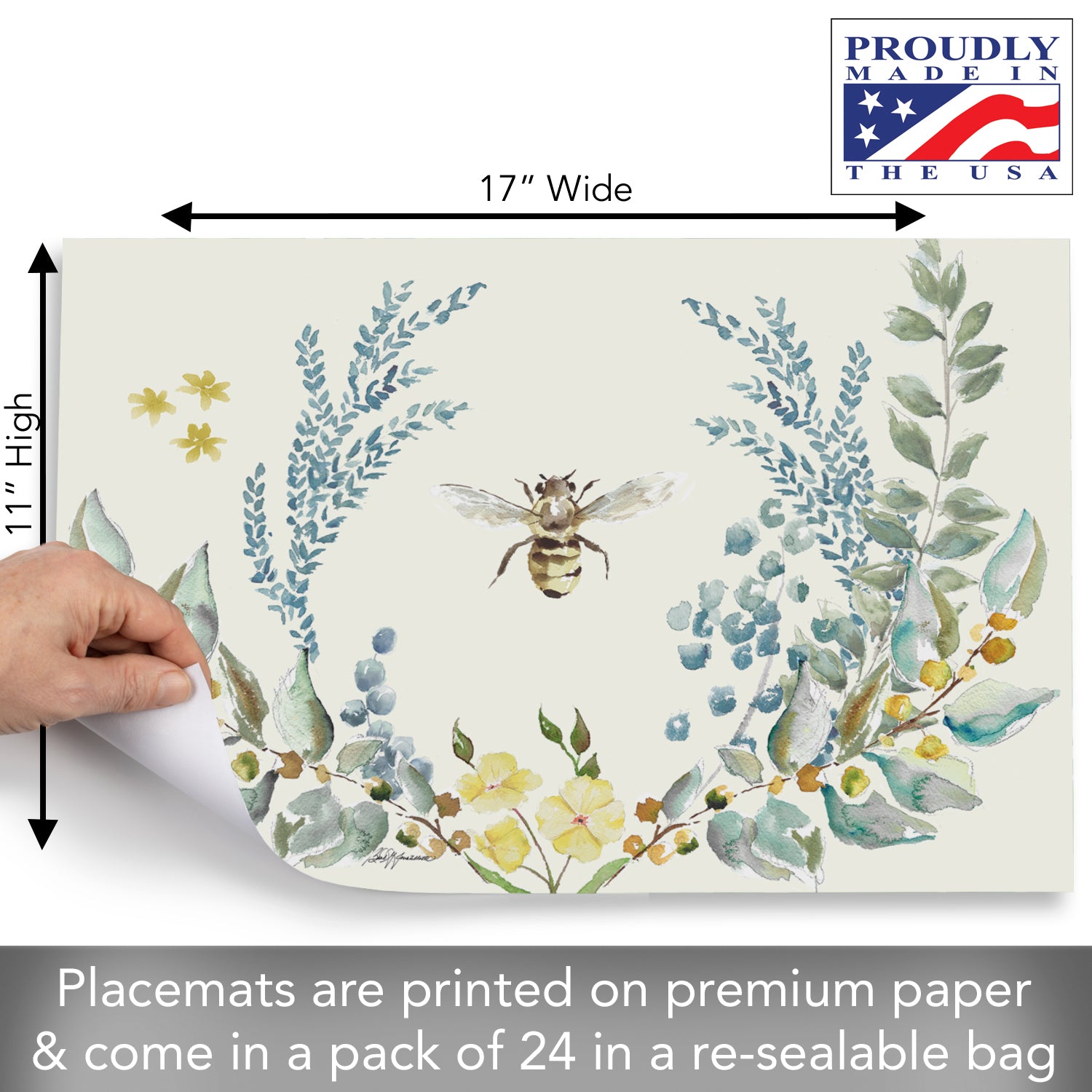 Bee Crest 24 Premium Paper Placemats in Resealable Storage Bag Made in the USA 17" x 11"