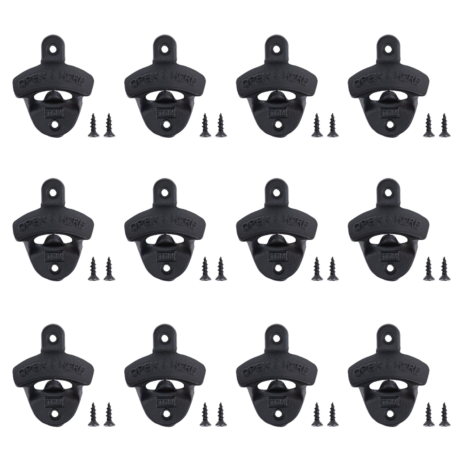 CounterArt Black Cast Iron Bottle Opener 12 Pack Wall Mounted Beer Top Opener Bar Tool Kitchen Tool