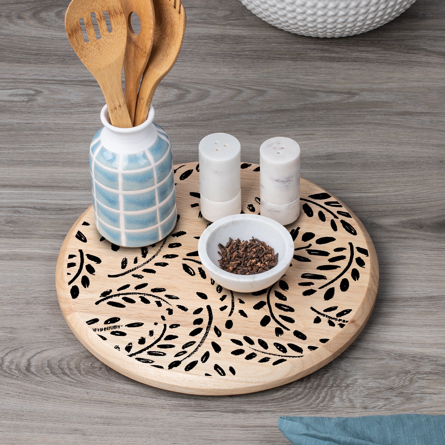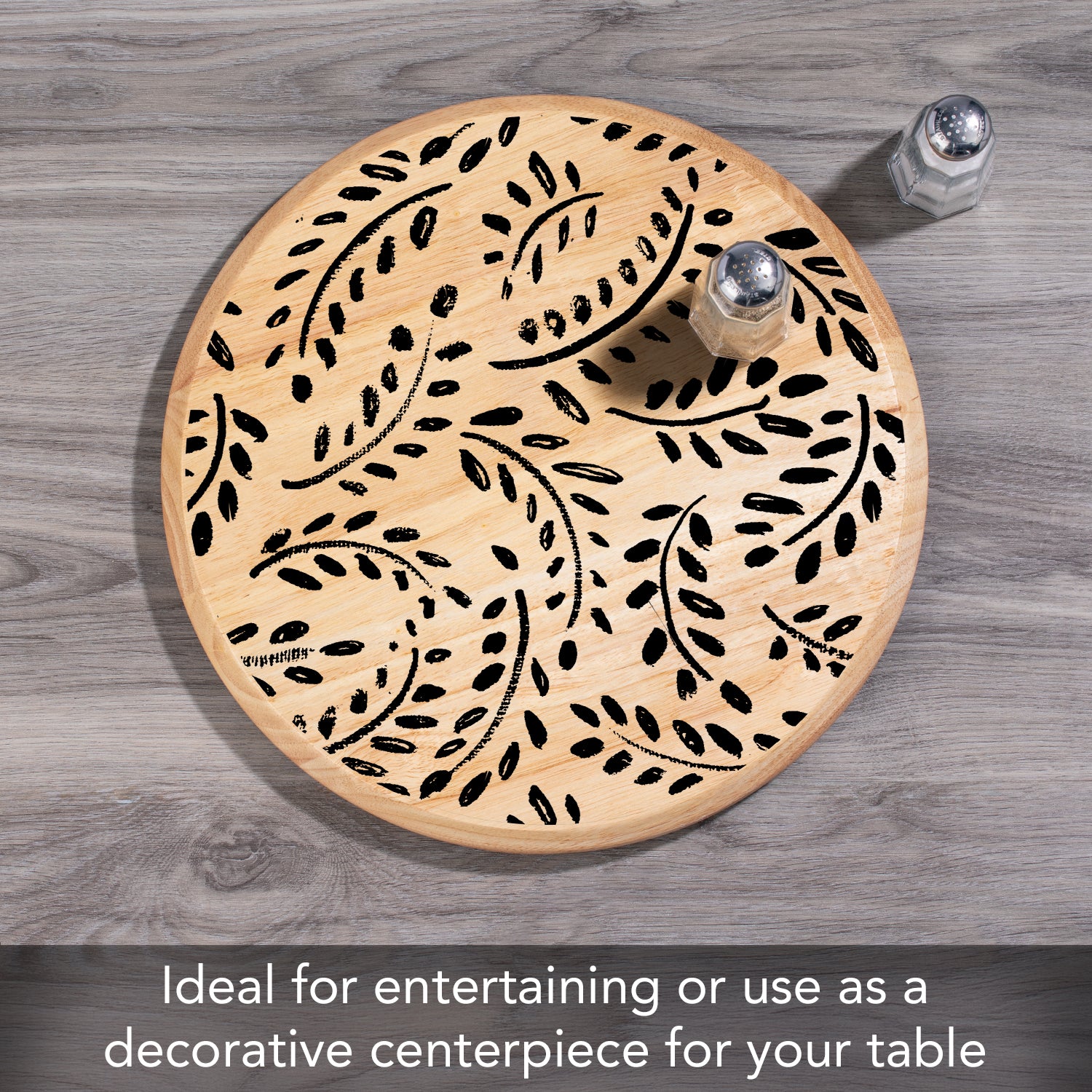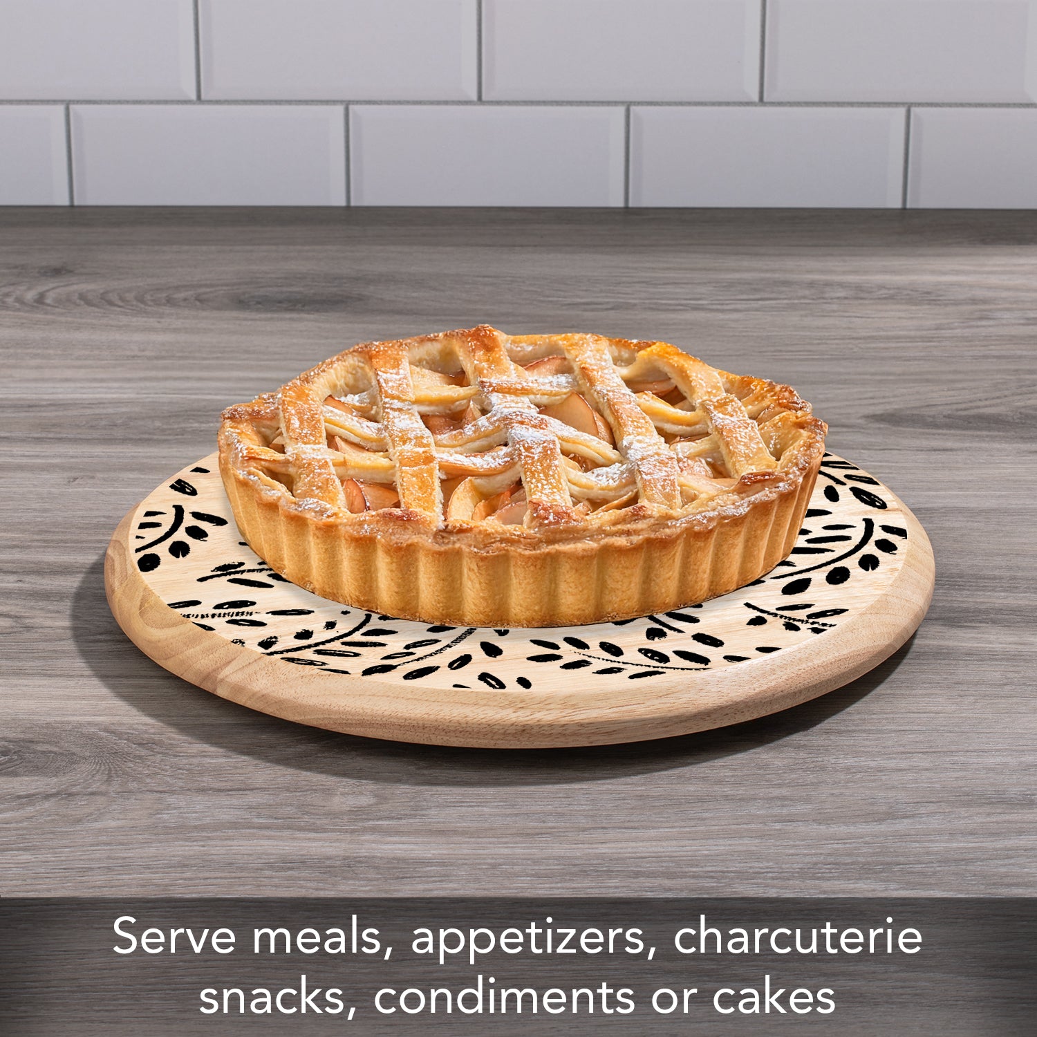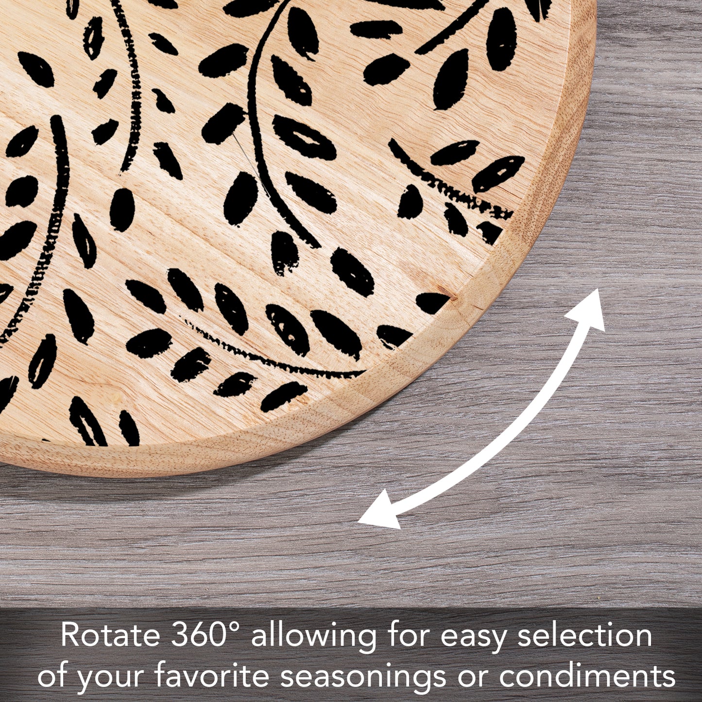 ART FOR THE KITCHEN-Beautiful appearance and design allows the Turntable to remain displayed even when not in use. Wood surface is printed with designs that complement the wood’s natural beauty.