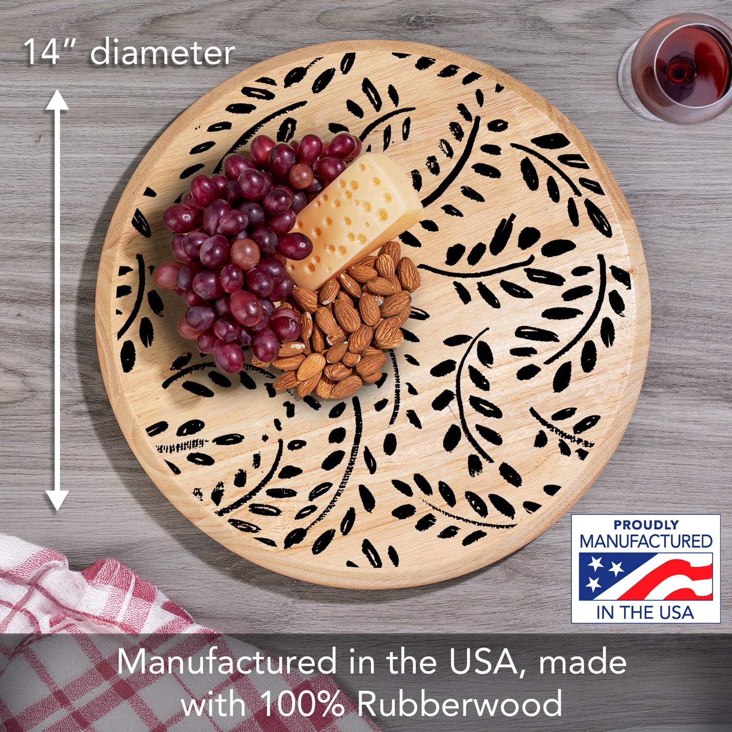 MEASUREMENTS-Lazy Susan Turntable measures 14” diameter and 1.25” in height. Look for our Placemats, Cutting Boards, and Coasters to complete your home interior design.