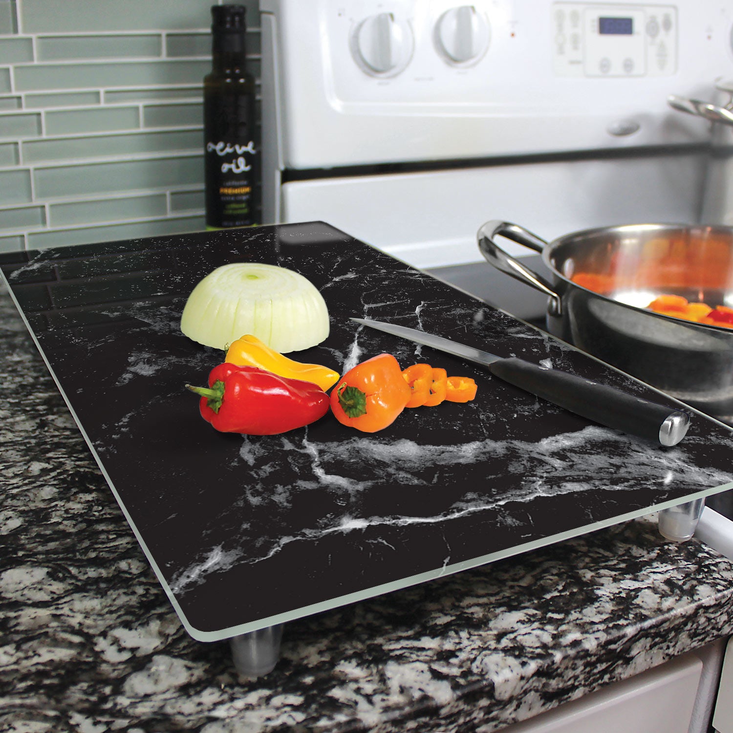 Black Marble 5mm Tempered Glass Cutting Board/Instant Counter 20.5” x 11.75” Manufactured in the USA