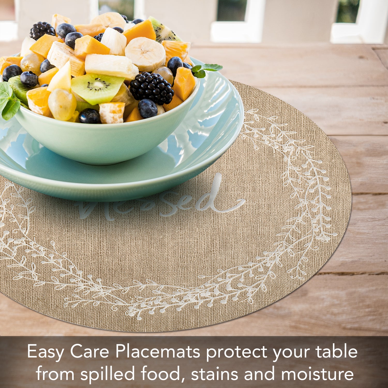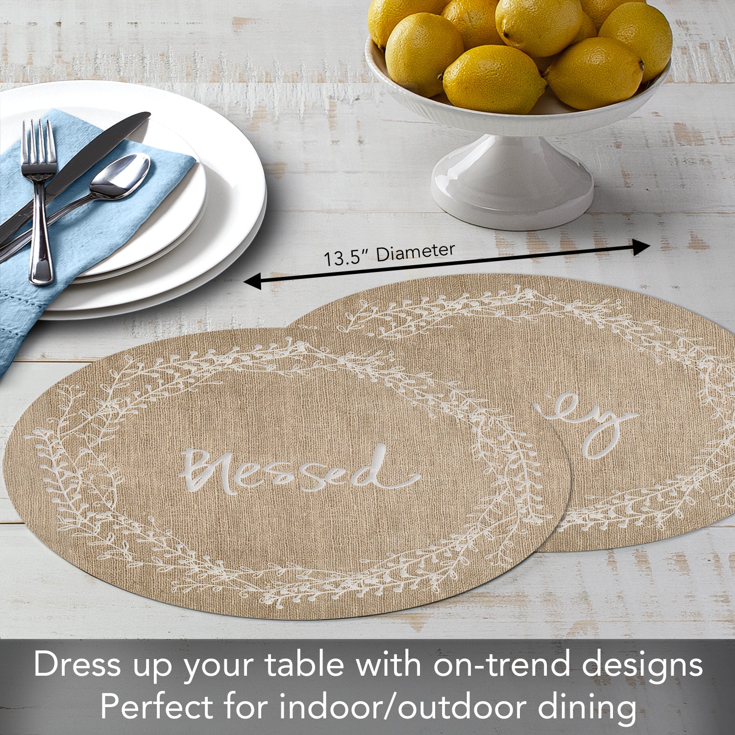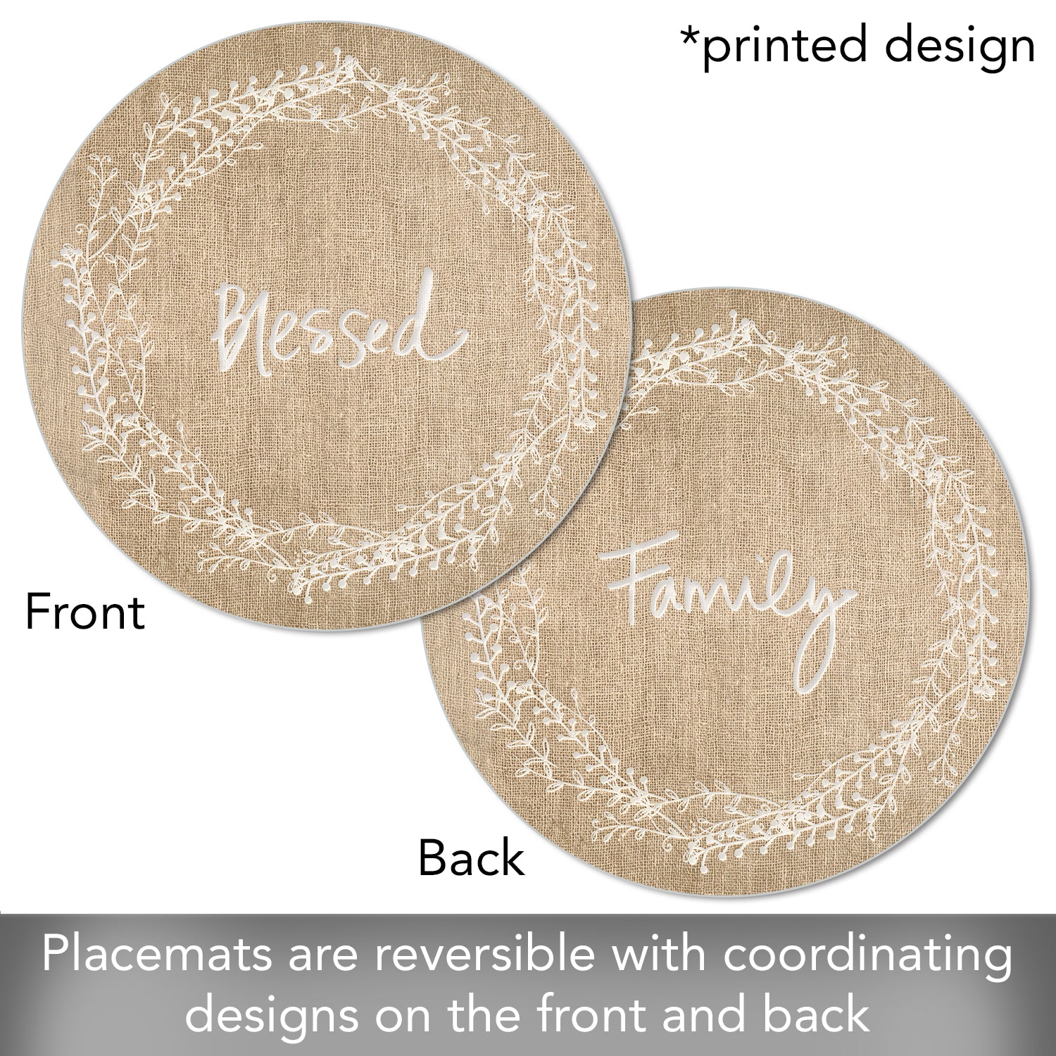 CounterArt Family Blessed 4 Pack Round Reversible Easy Care Flexible Placemats Made in the USA