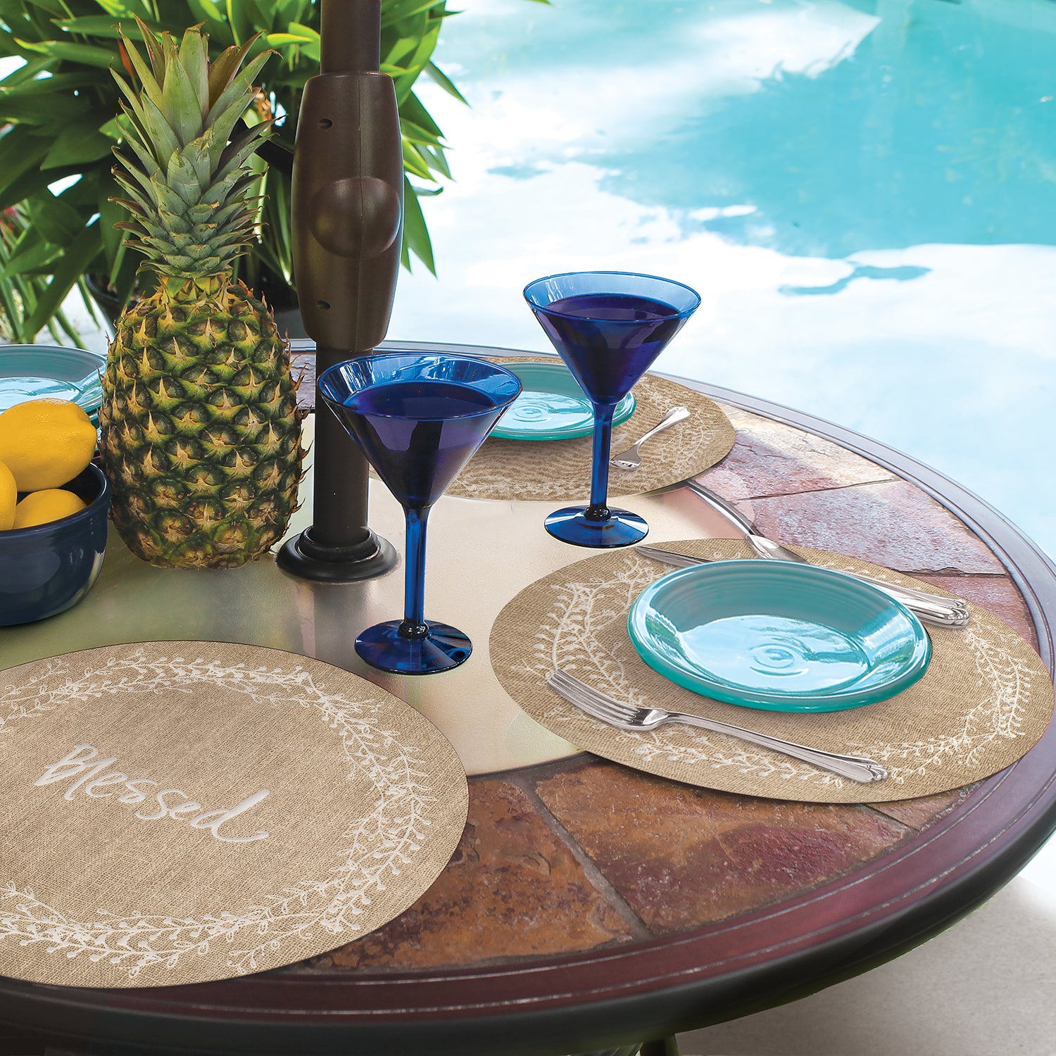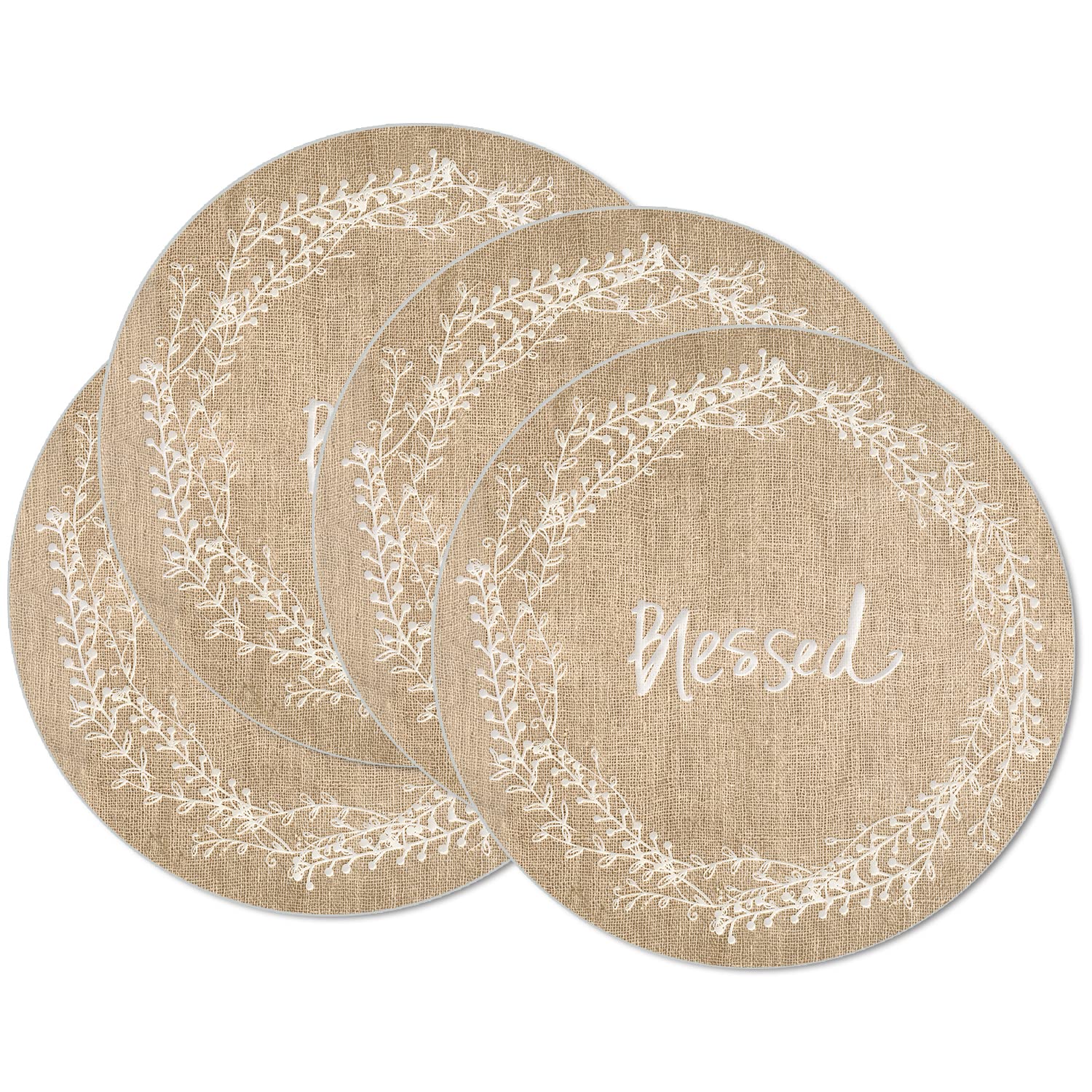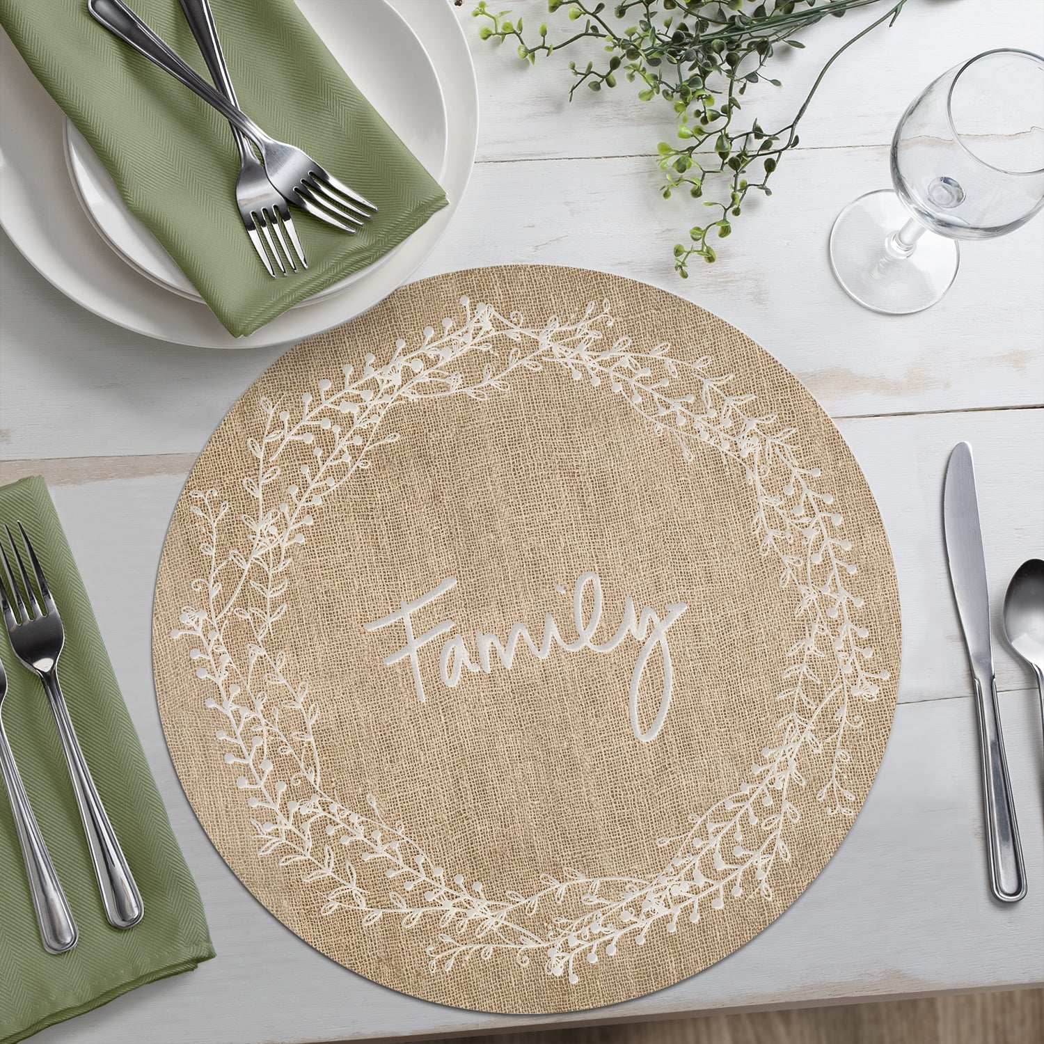 CounterArt Family Blessed 4 Pack Round Reversible Easy Care Flexible Placemats Made in the USA