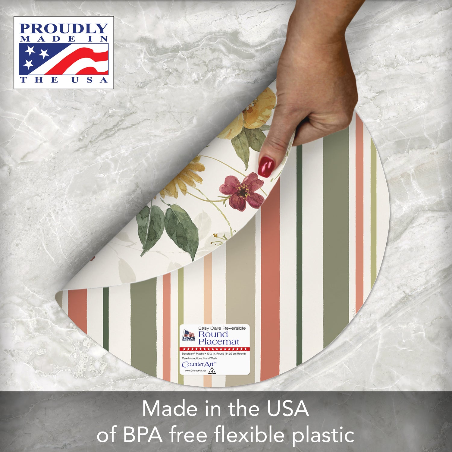 CounterArt Blessed by Nature 4 Pack Round Reversible Easy Care Flexible Placemats Made in the USA