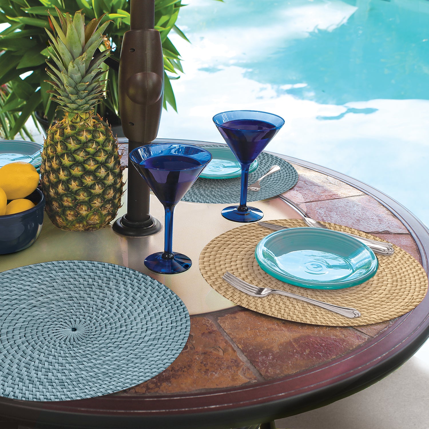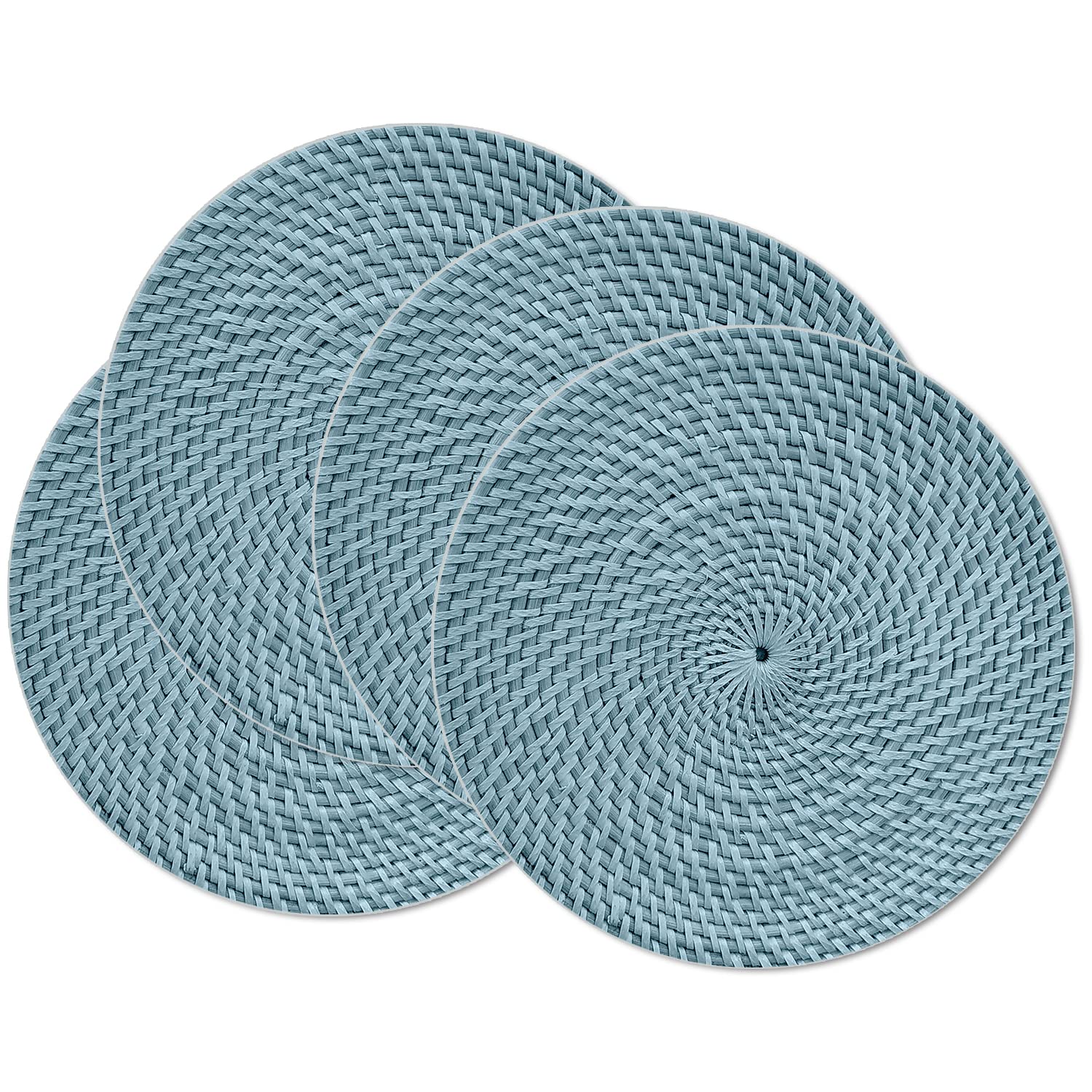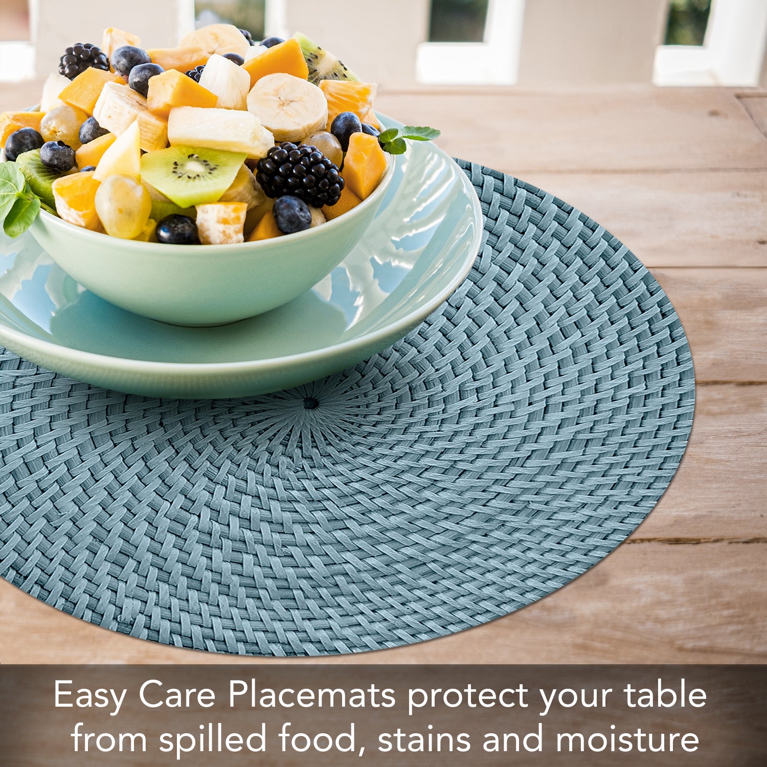 CounterArt Blue Natural Faux Basketweave 4 Pack Round Reversible Easy Care Flexible Plastic Placemats Made in The USA Reversible Flexible Easily Wipes Clean