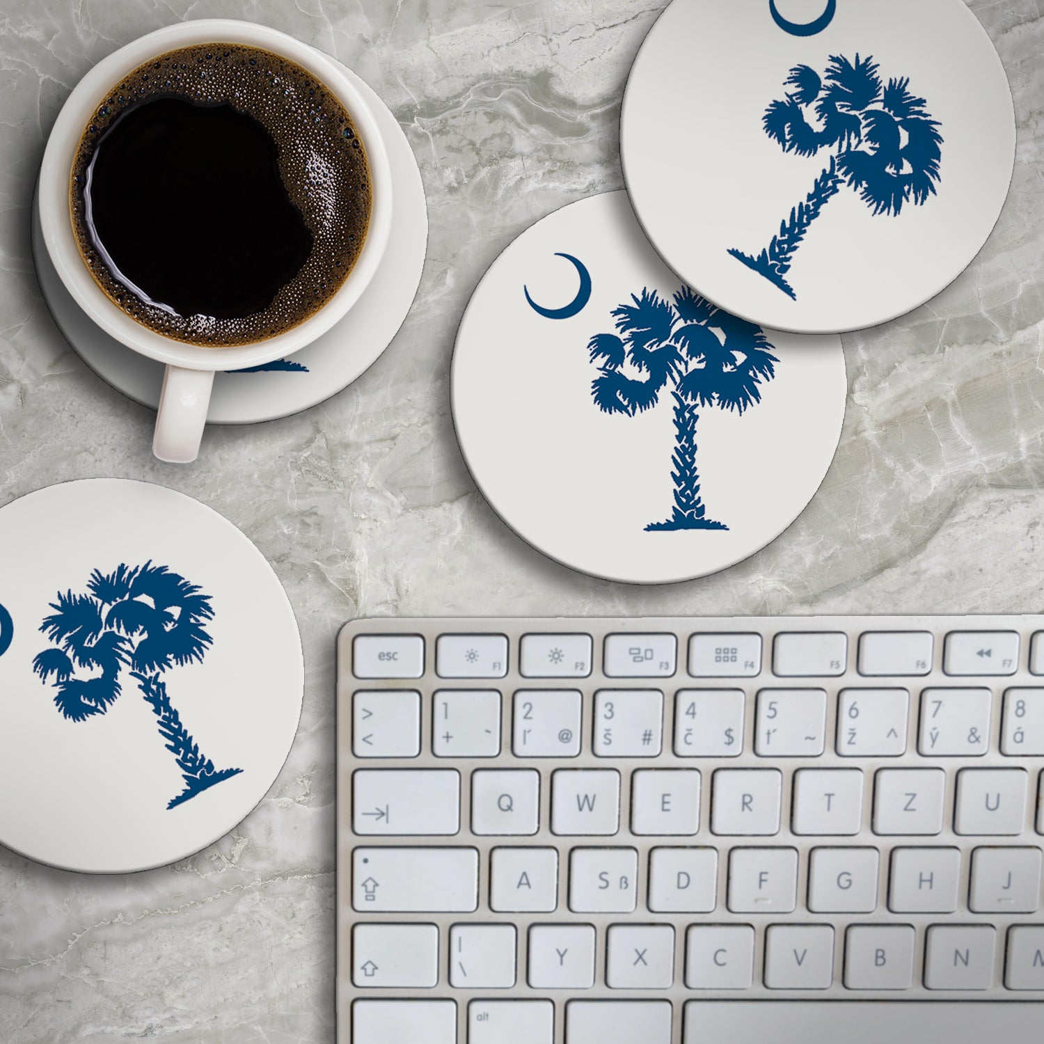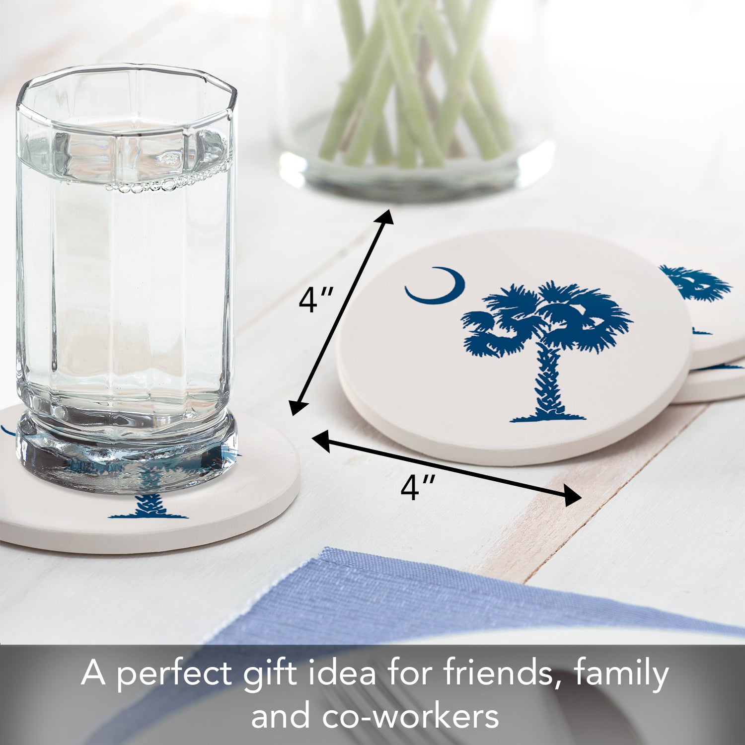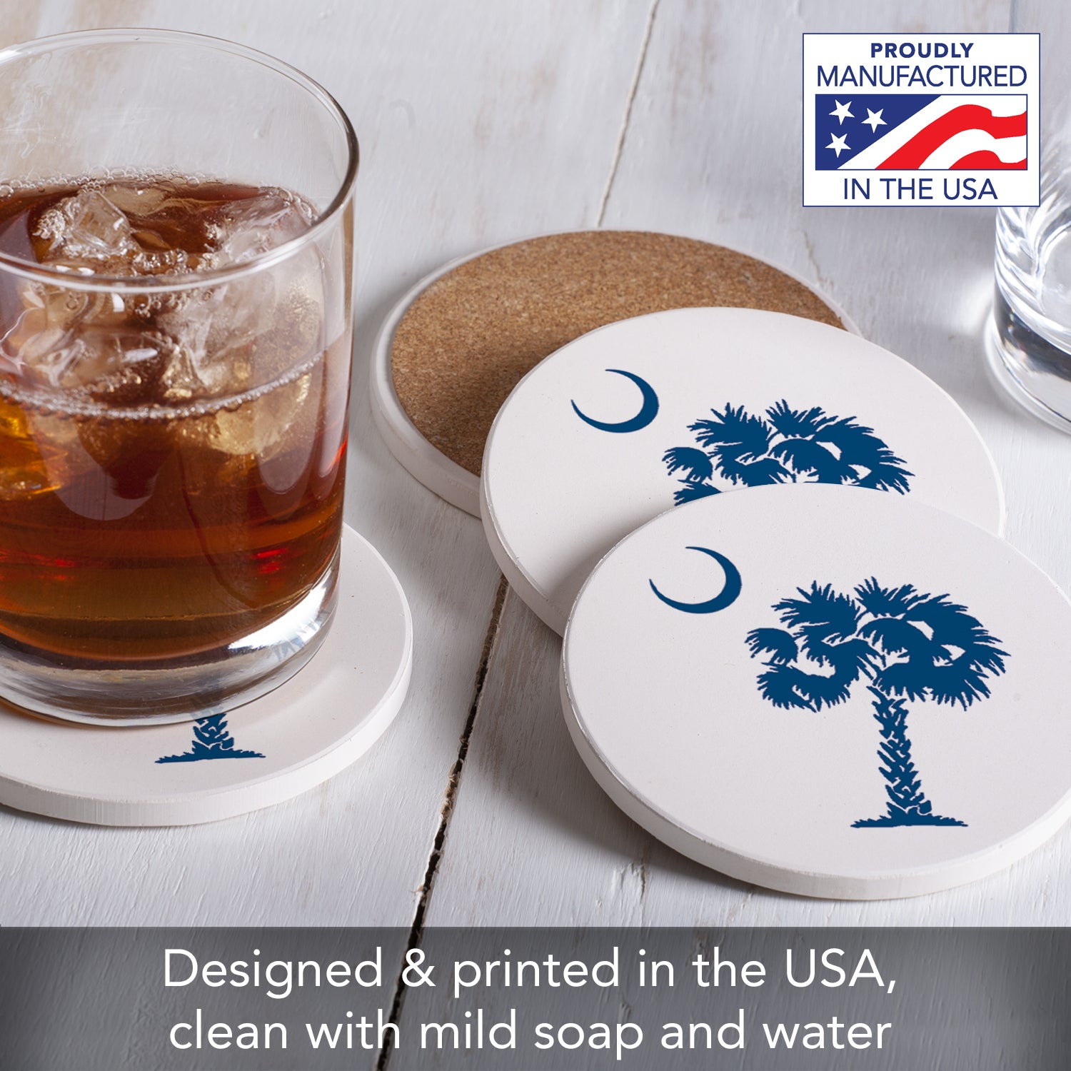 Thirstystone Palmetto Blue 4 Pack Round Absorbent Stone Coasters 4" Diameter