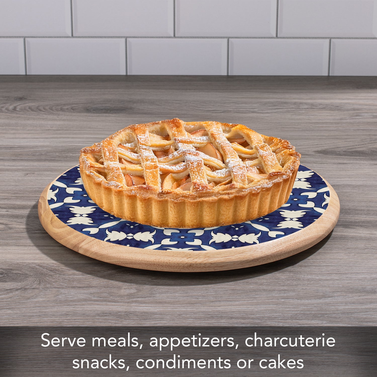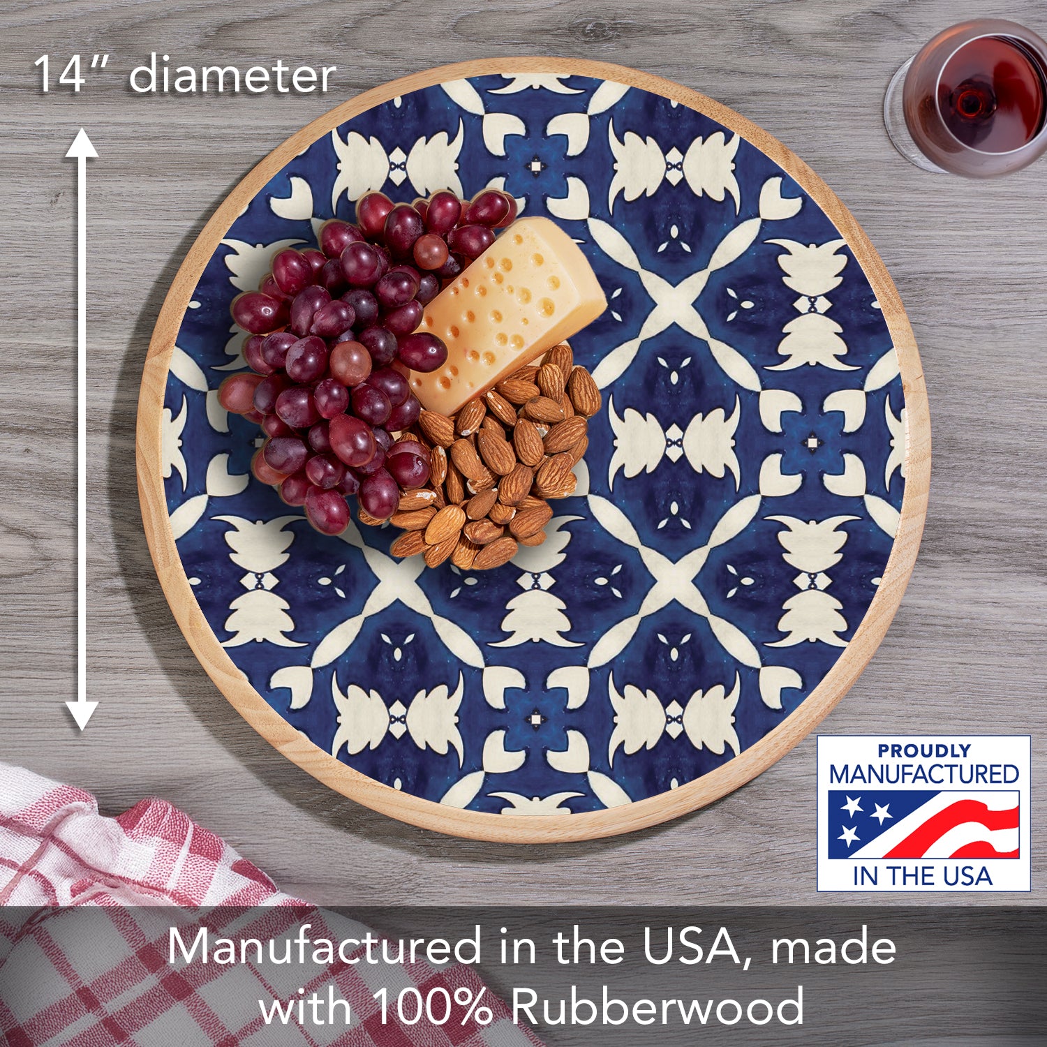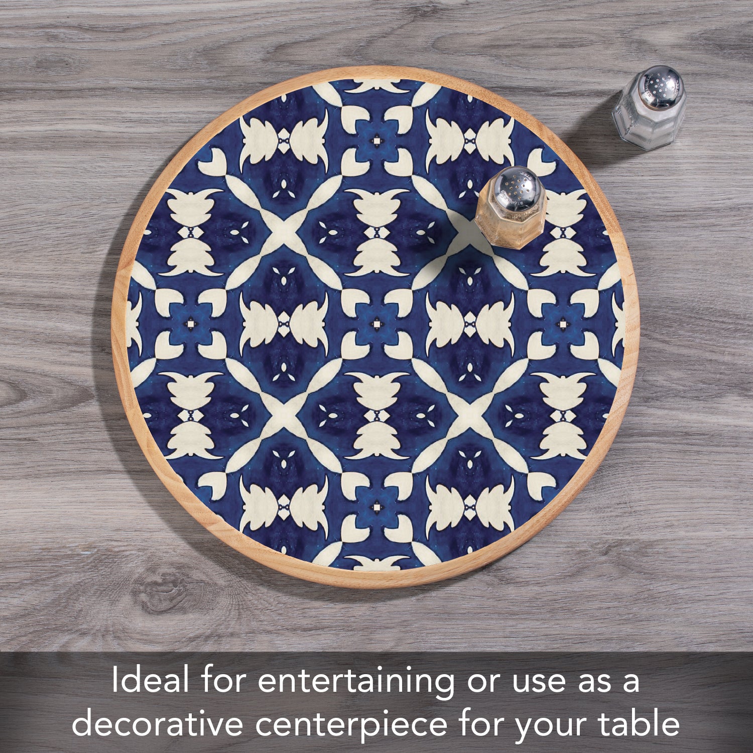 Blue & White Pattern Wood Lazy Susan Turntable 14" Diameter for Serving Kitchen Organization Condiment Caddy