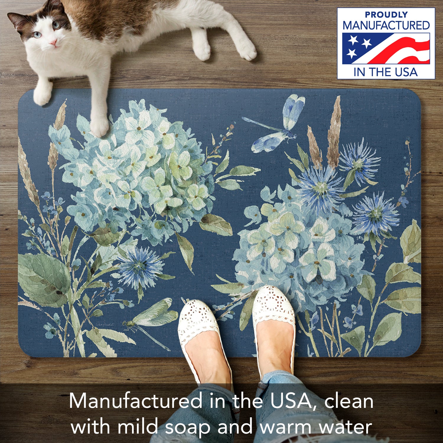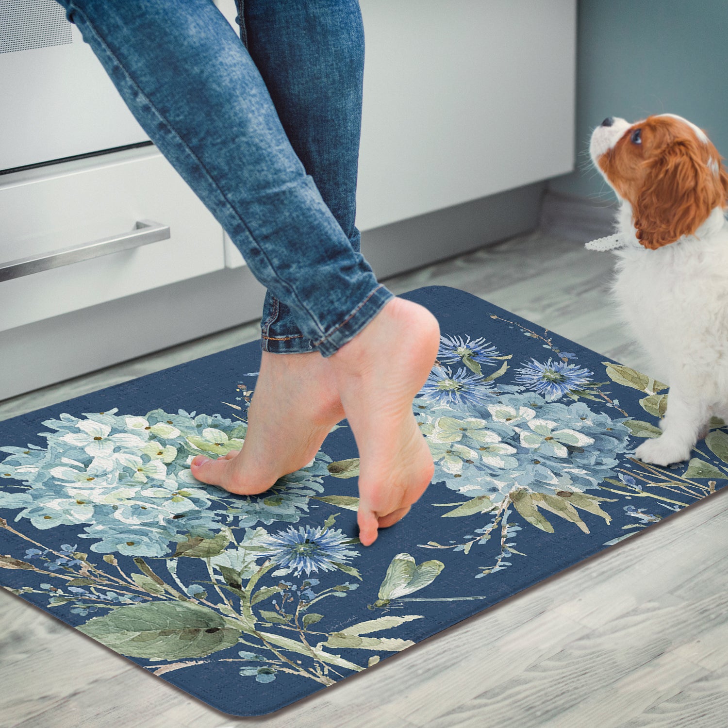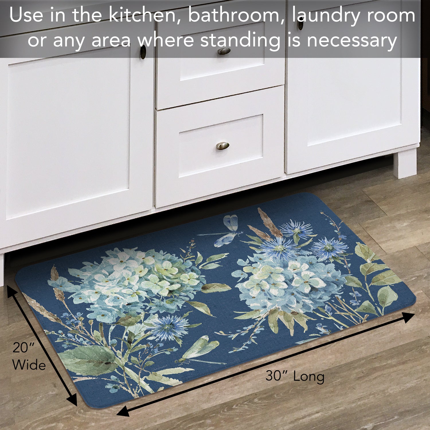 Bohemian Blue, 30" x 20" Decorative Vinyl Kitchen Comfort Floor Mat Manufactured the USA