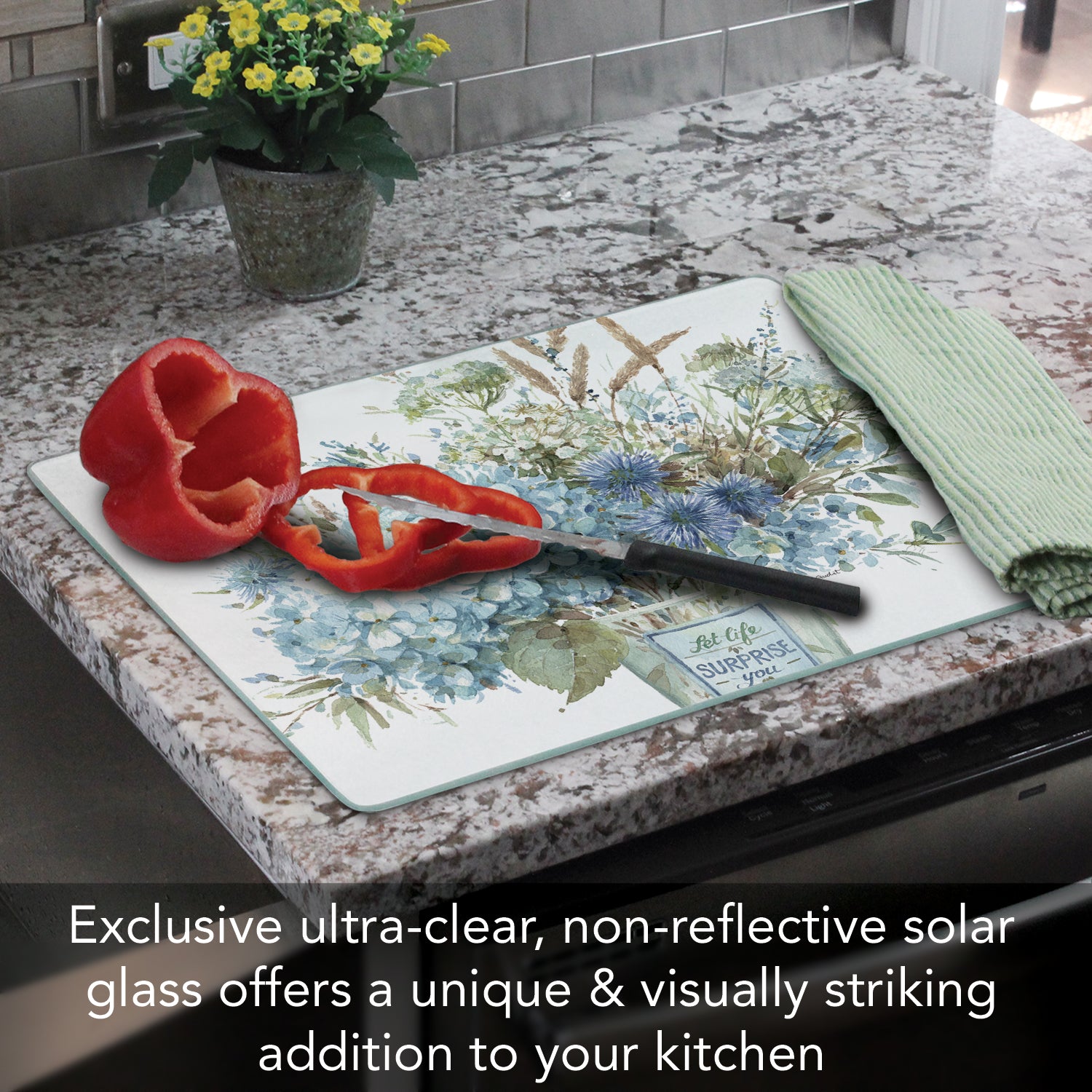 CounterArt Bohemian Blue 3mm Tempered Glass Cutting Board 15" x 12" Manufactured in the USA