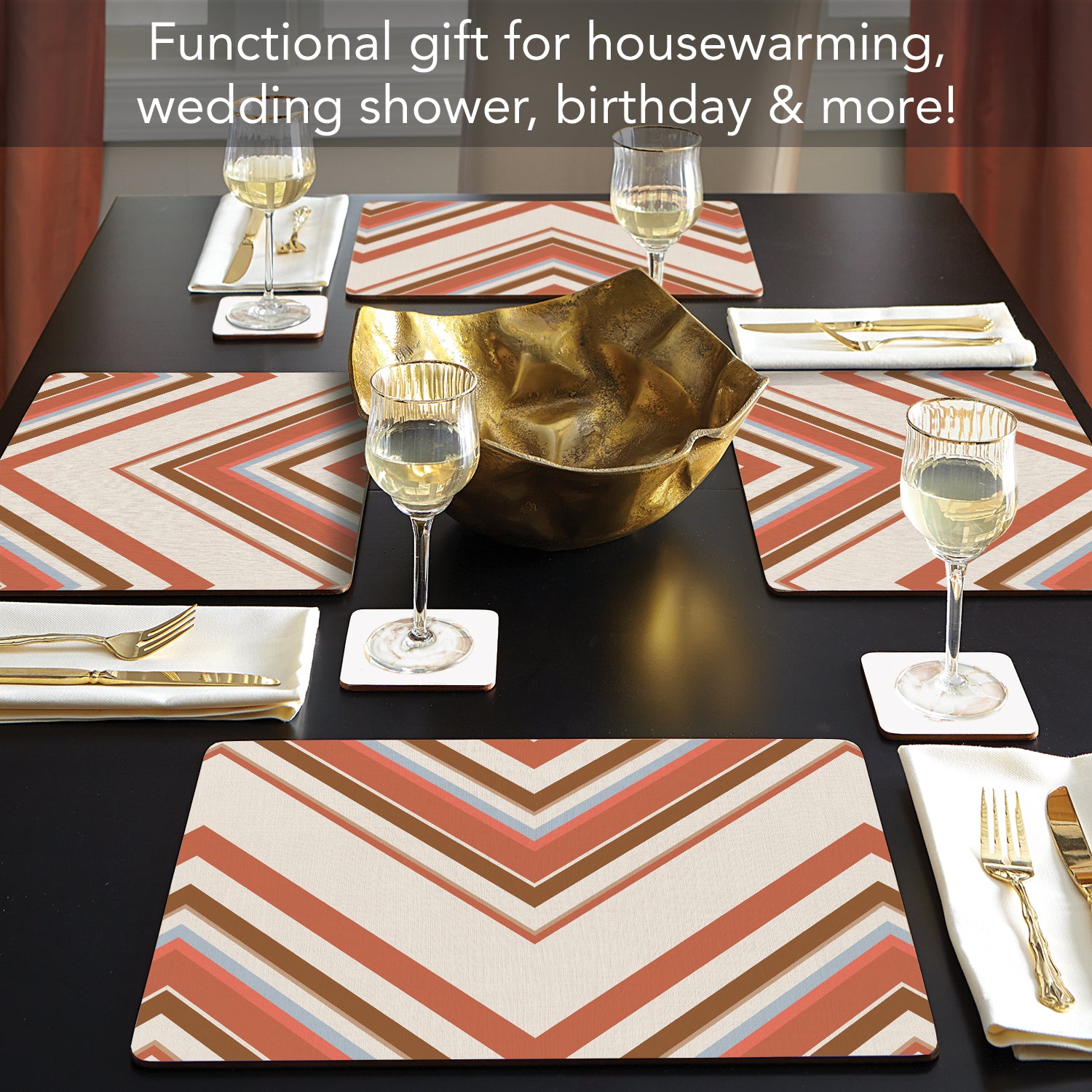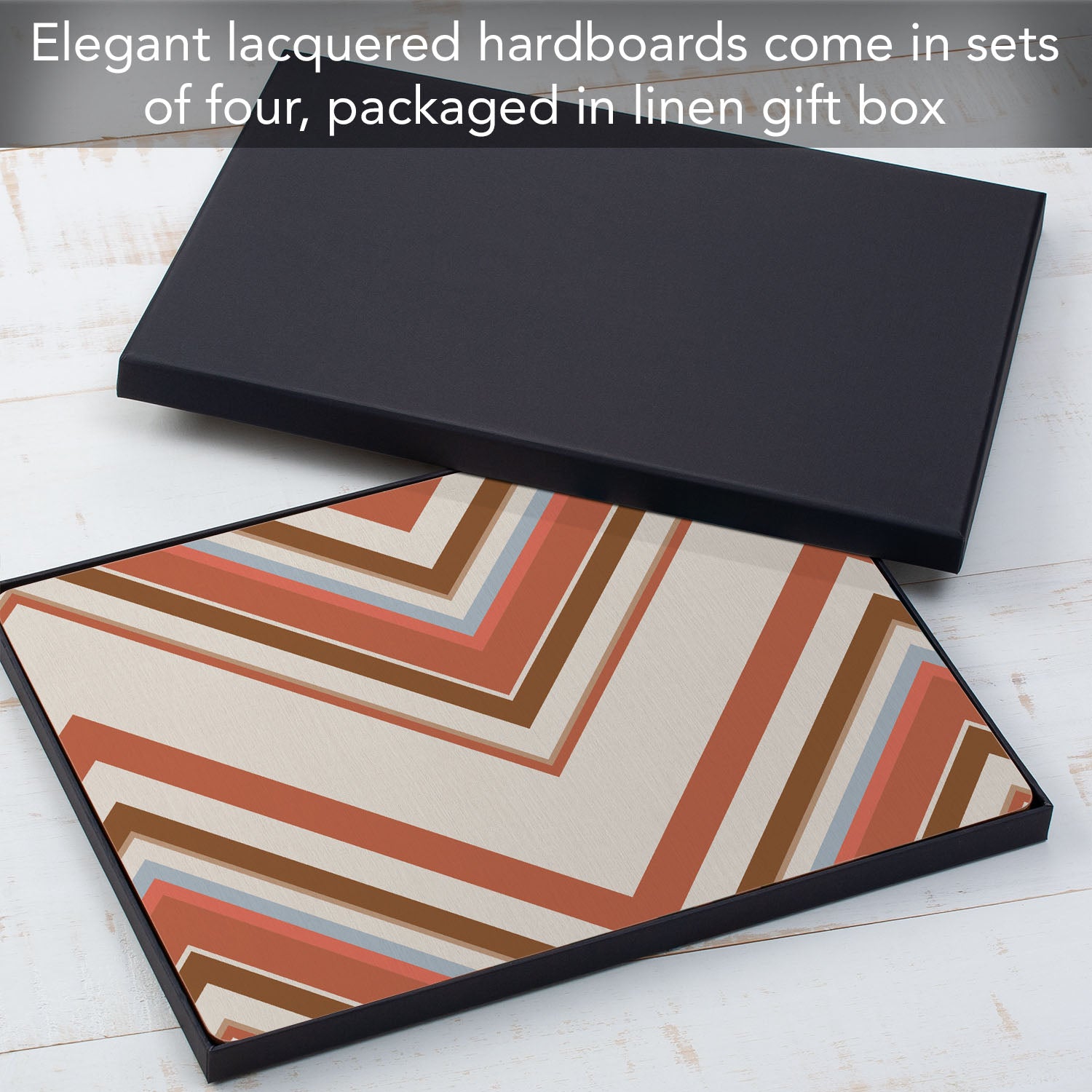 ELEGANCE- Set of 4 Decorative Placemats. Hardboard with a Cork Backing. Placemats arrive in elegant gift box that can also be used to store them. Add elegance and style to your kitchen or dining area with these functional placemats.