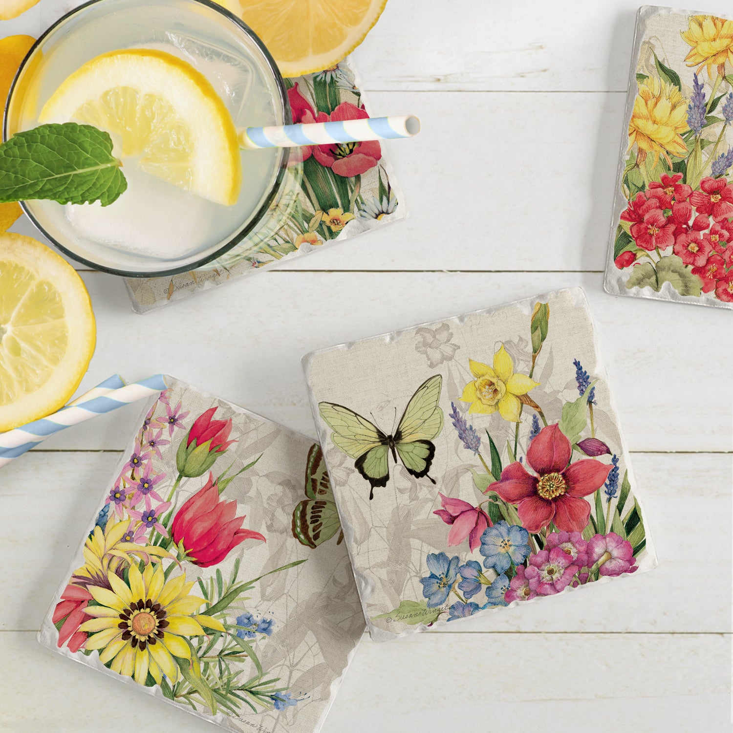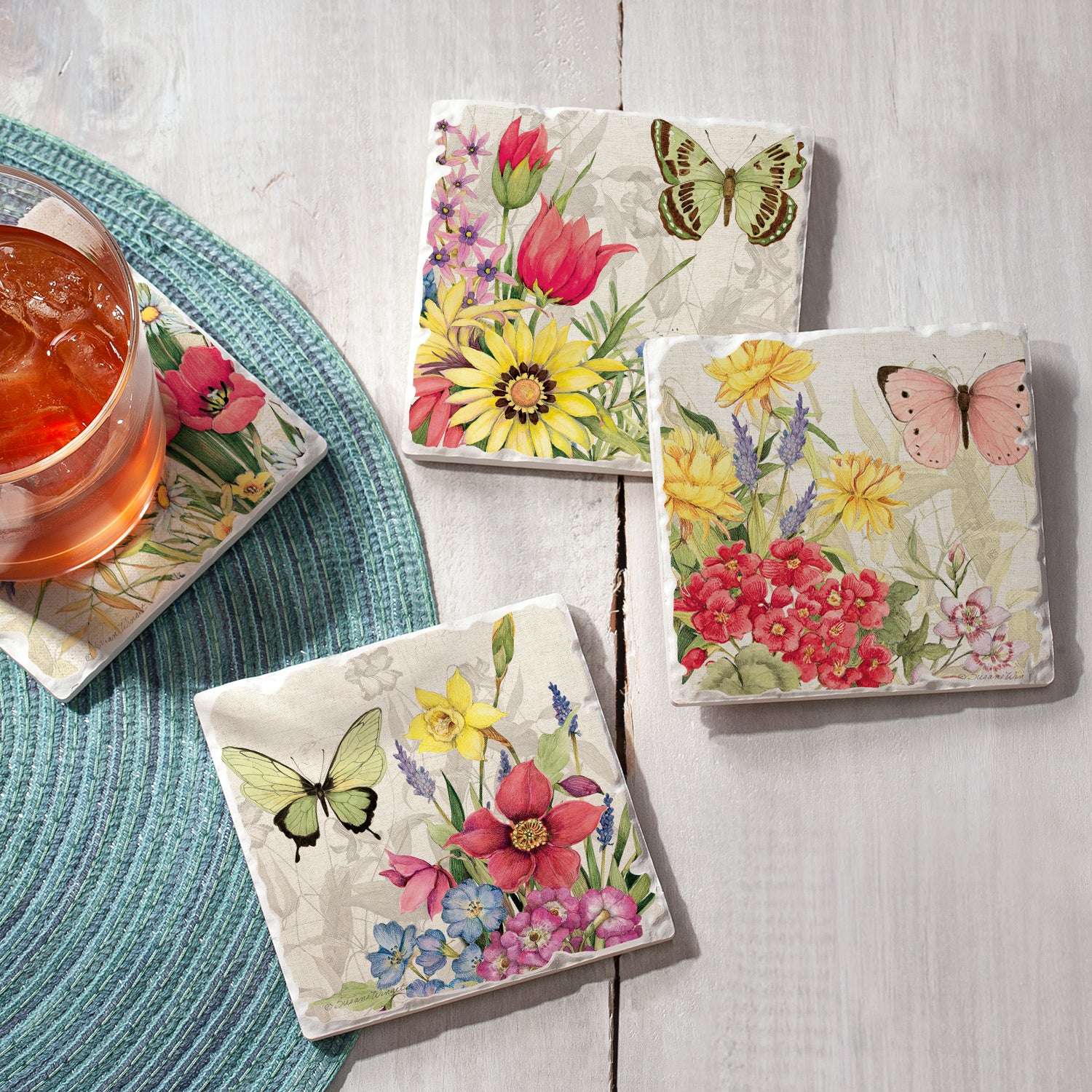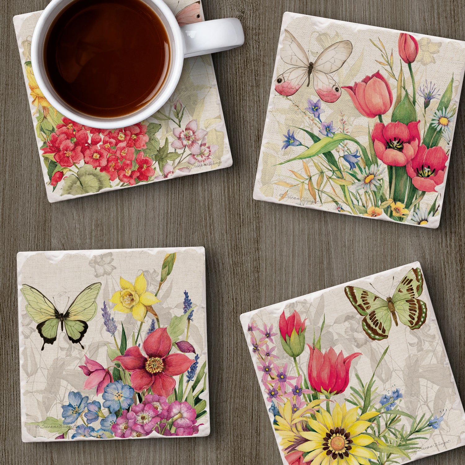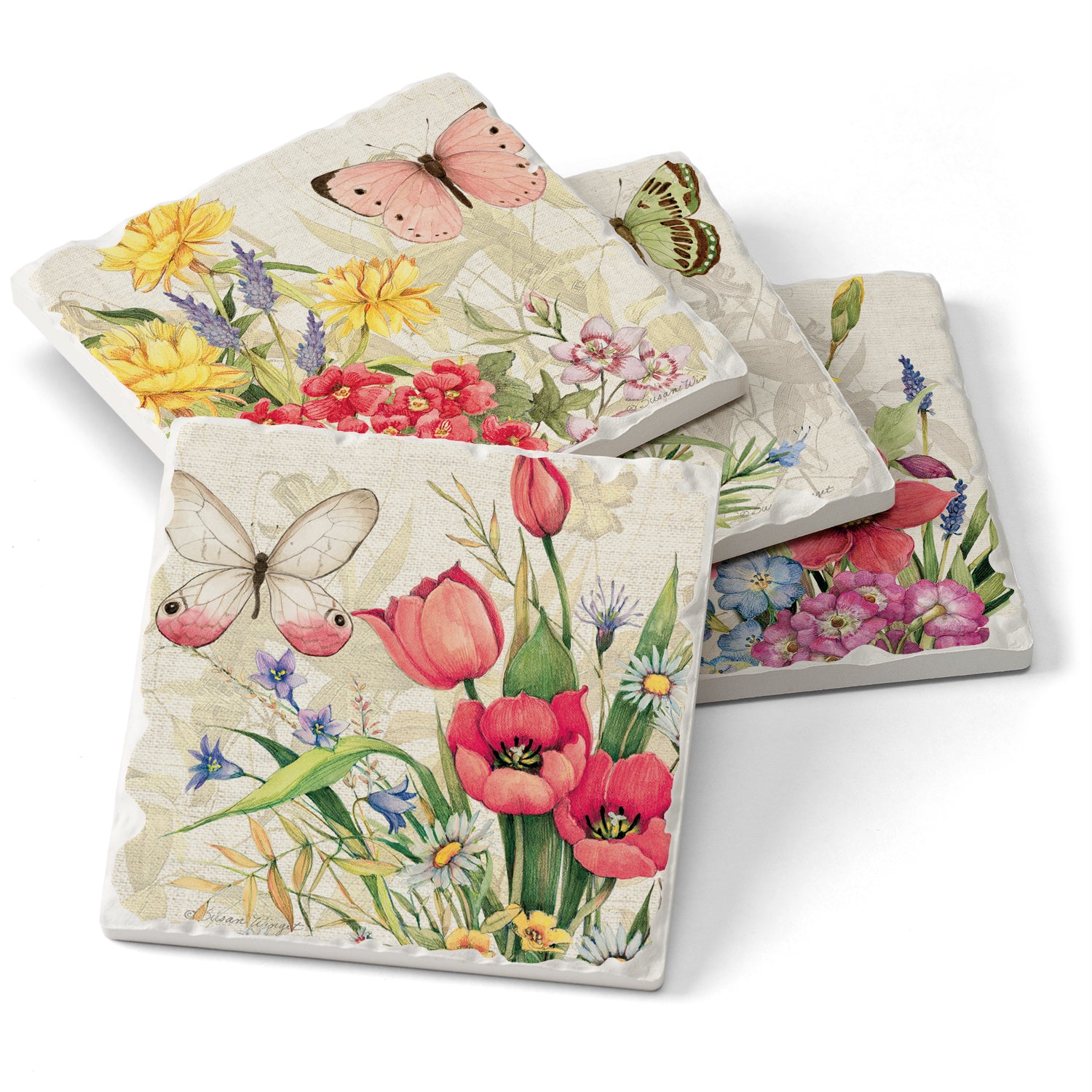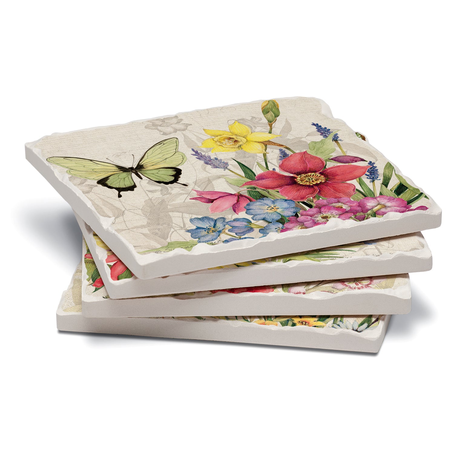 CounterArt Botanical Butterfly Florals Absorbent Coasters (Set of 4)