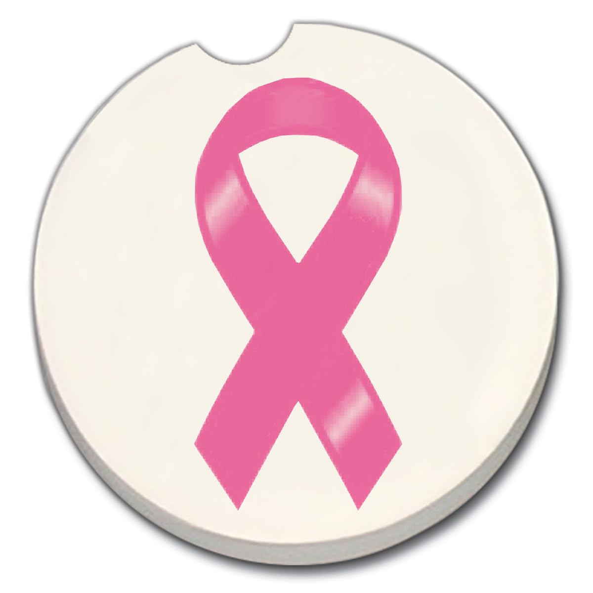 Breast Cancer Ribbon Single Absorbent Stone Car Coaster 2.6” Diameter Manufactured in the USA