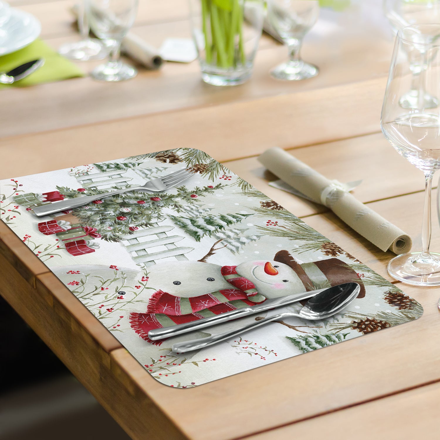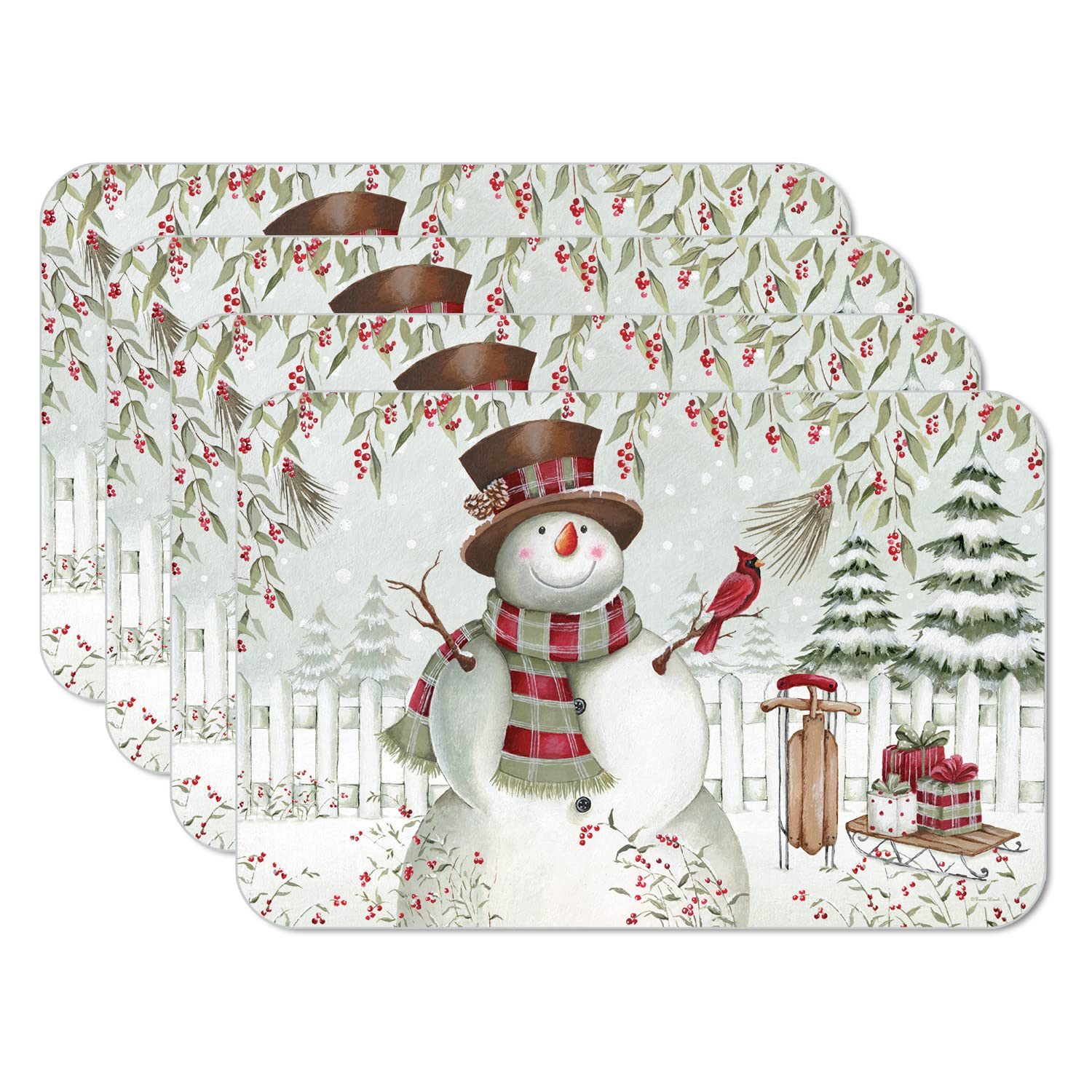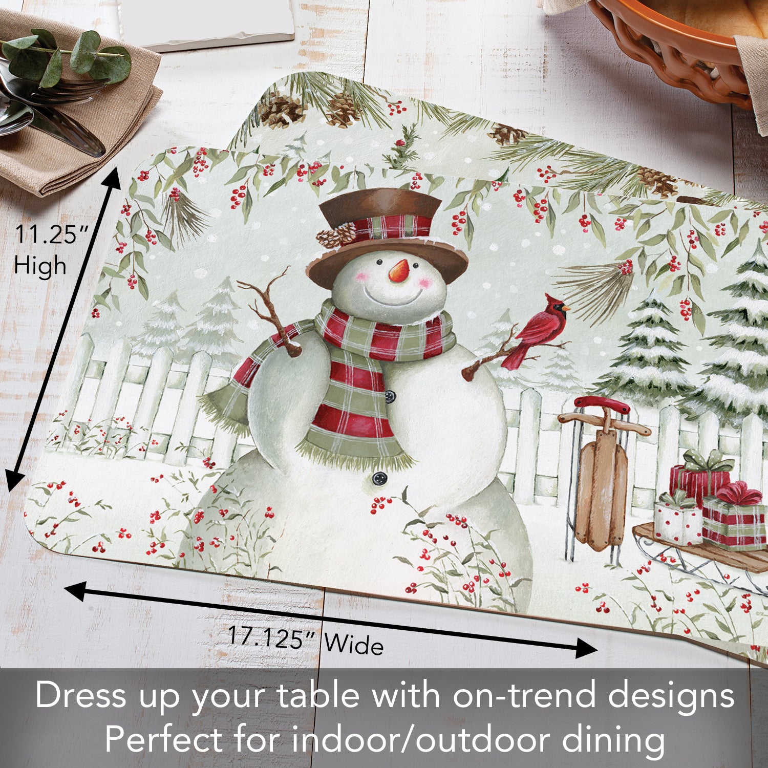 CounterArt Brown Hat Snowman 4 Pack Reversible Easy Care Placemats Made in the USA