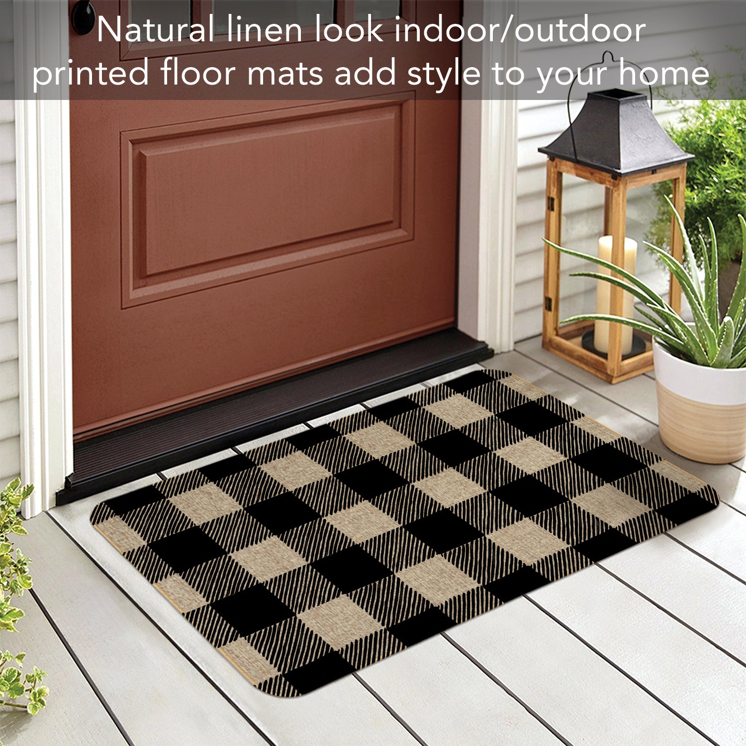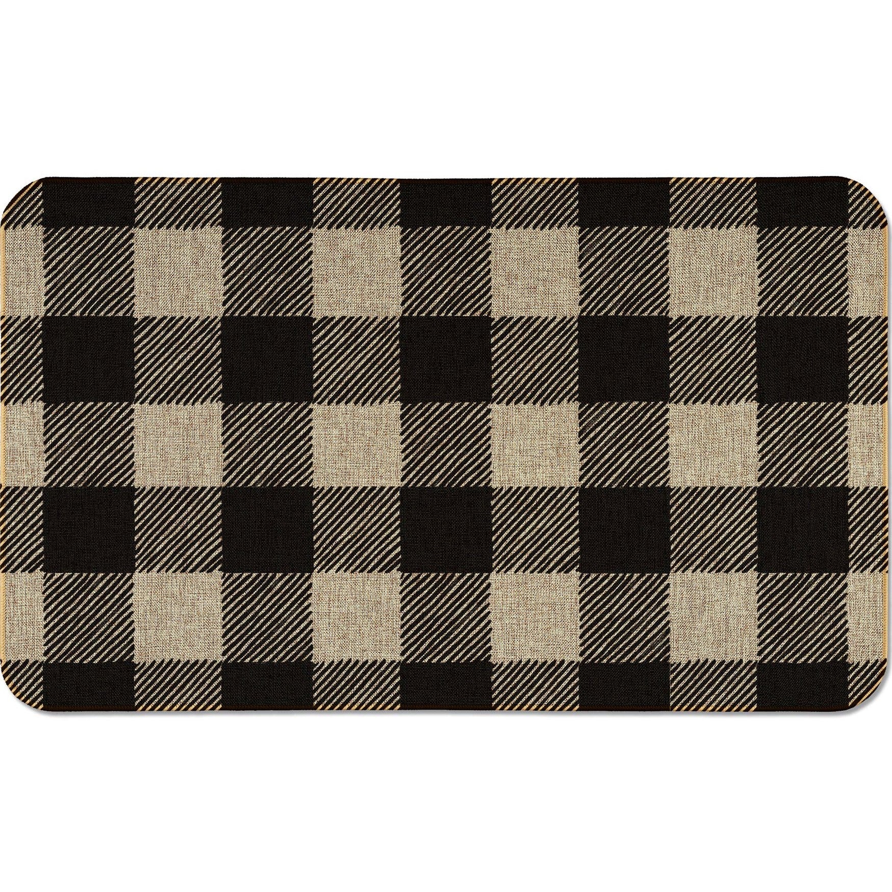 Buffalo Check Decorative Indoor/Outdoor Natural Linen Look Floor Mat 29.5” x 17.75”