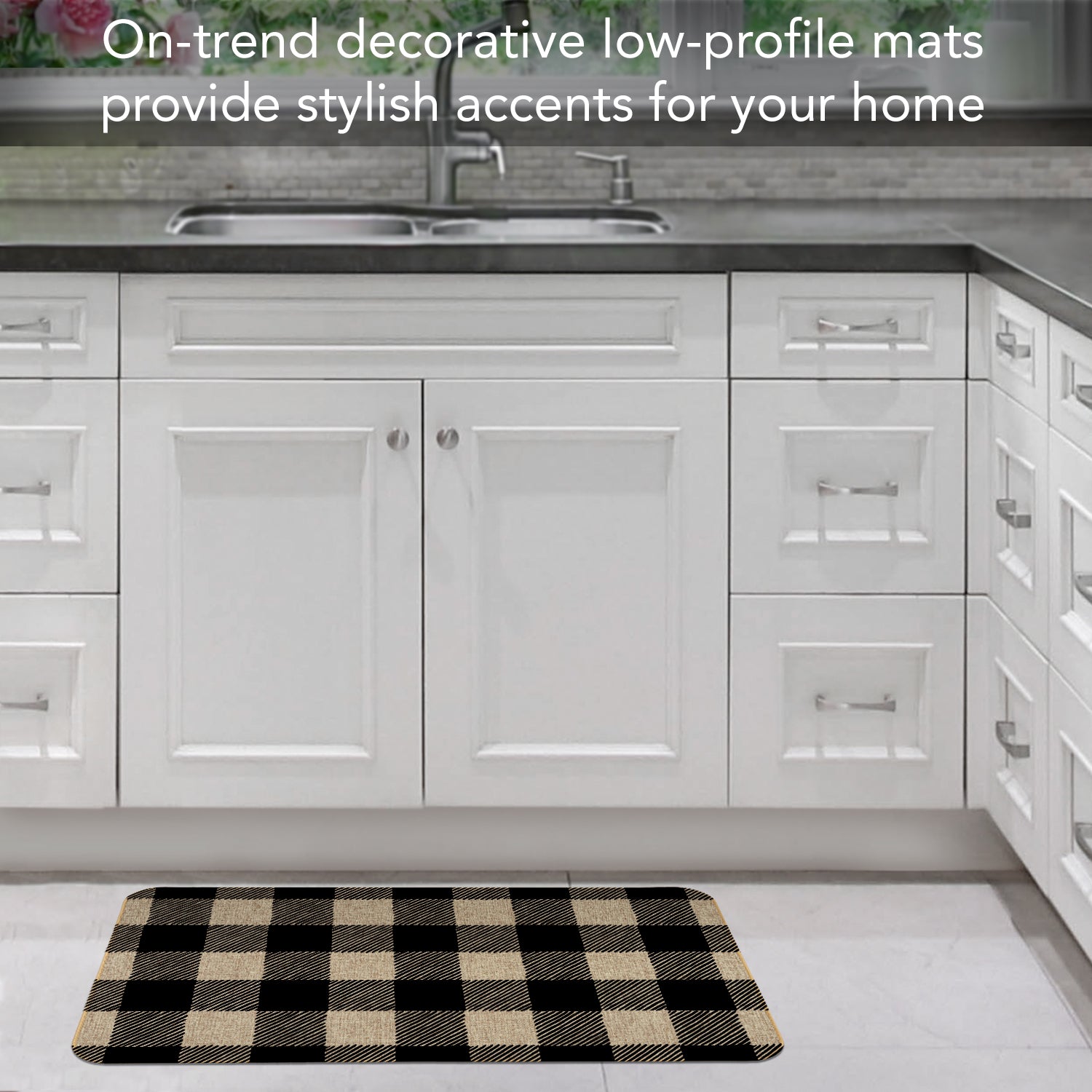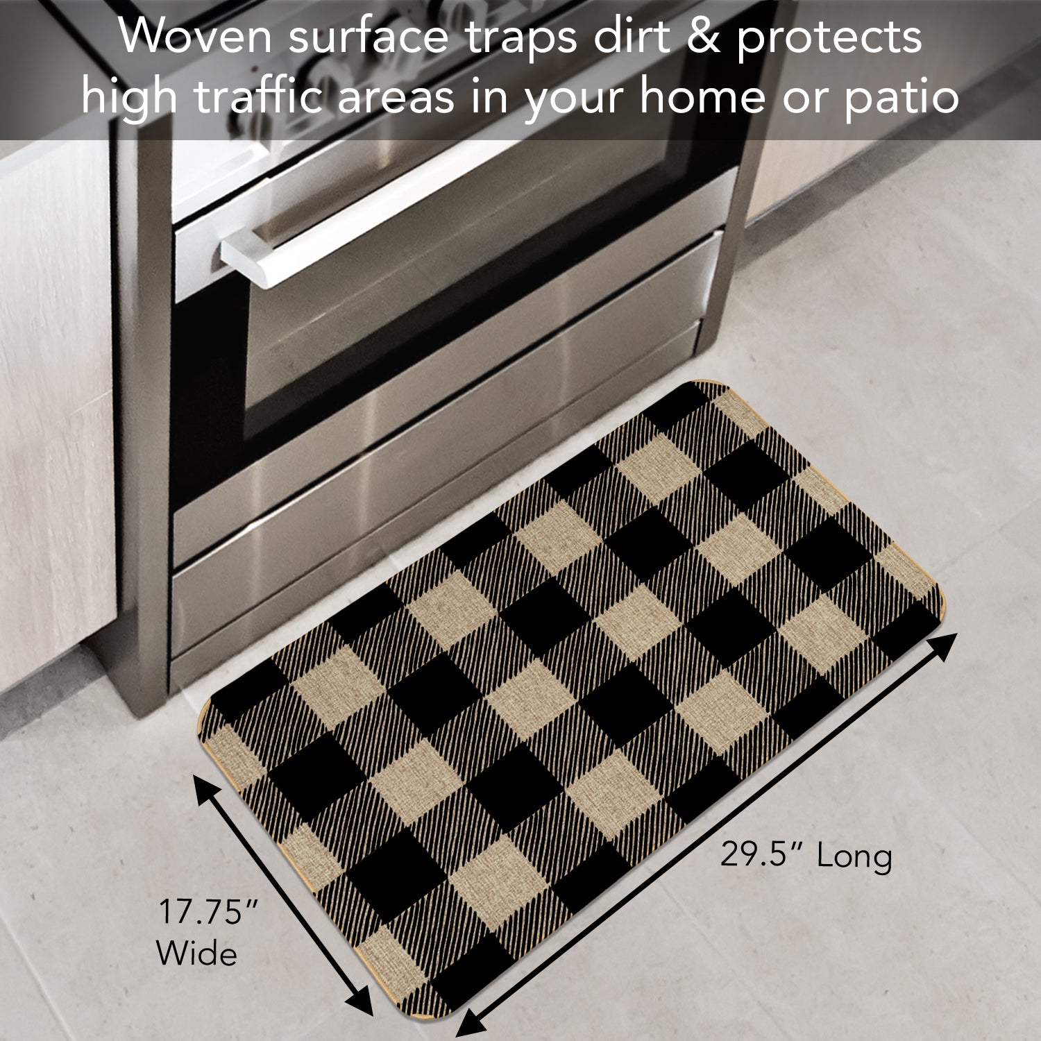 INDOOR/OUTDOOR-Natural Linen Look decorative floor mat adds style to entryways, porch, patio, kitchen, and other rooms in your home. Floor Mat protects floors in high traffic areas.