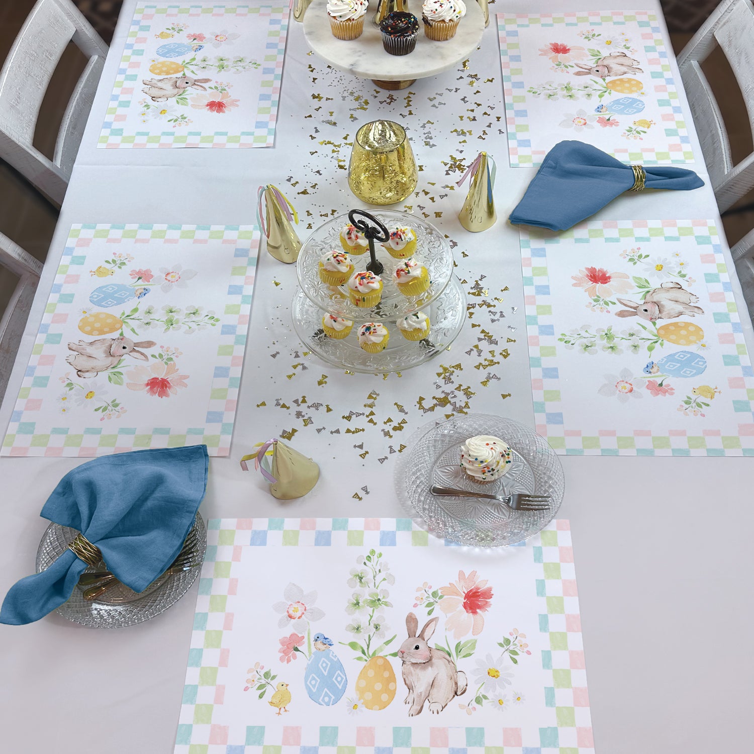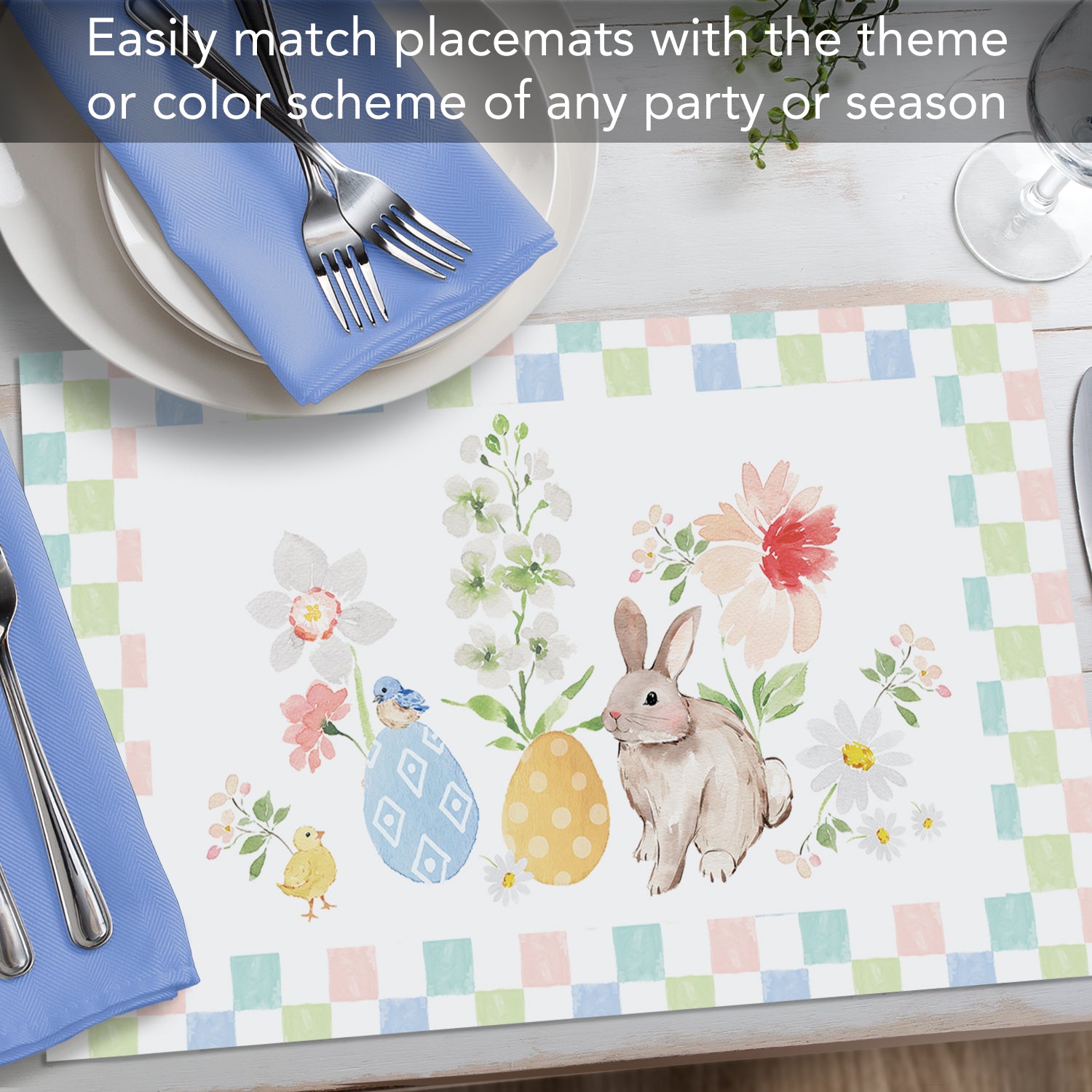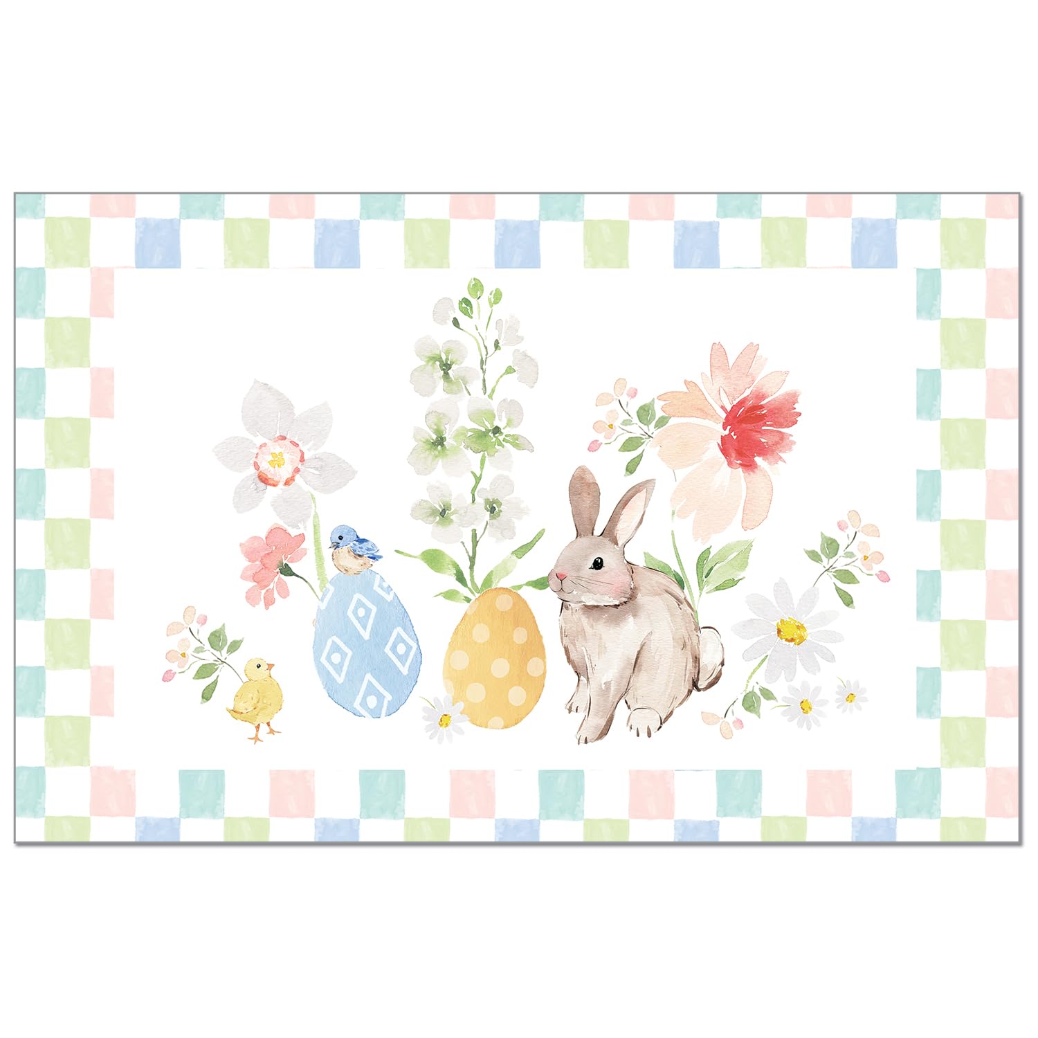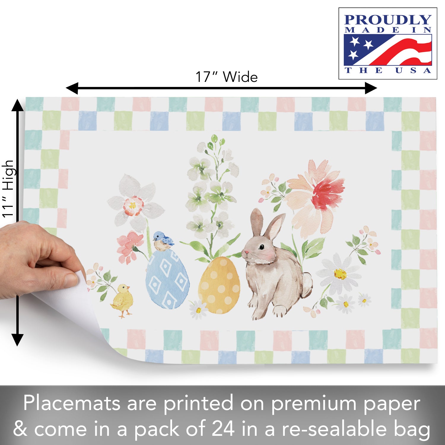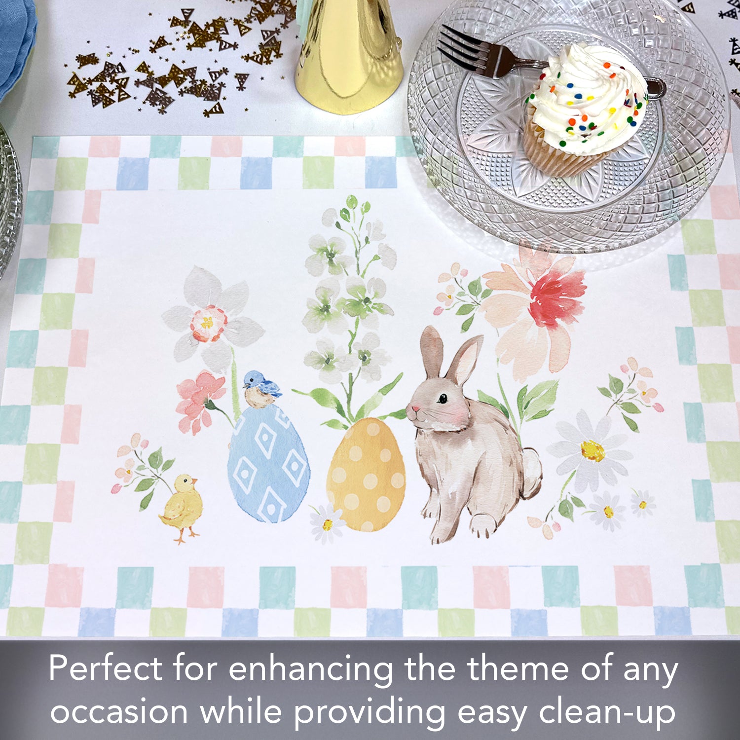 Bunny Checkerboard 24 Premium Paper Placemats in Resealable Storage Bag Made in the USA 17" x 11"