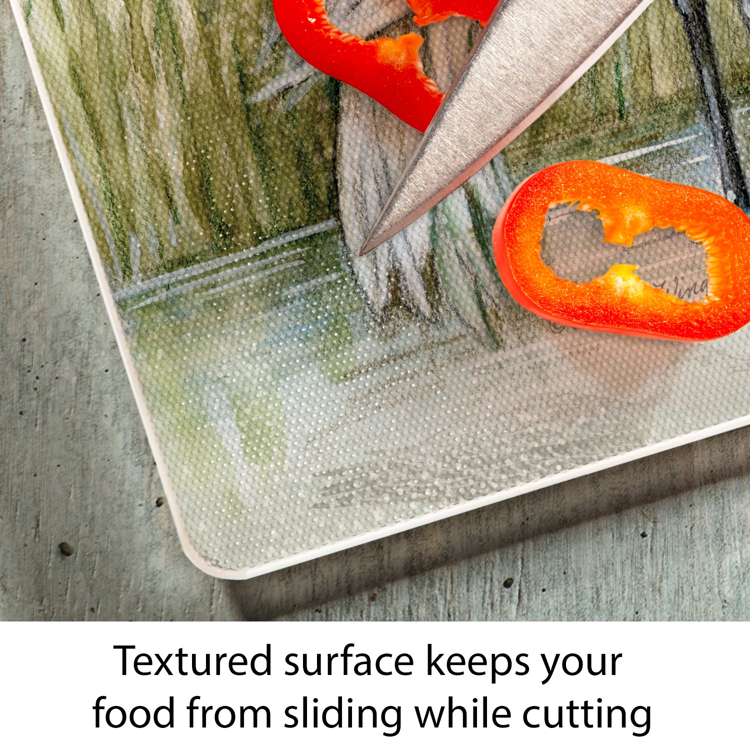 - GLASS CUTTING BOARD-This attractive Cutting Board works great for food preparation, cutting and serving. Manufactured in the USA with durable 3mm Tempered Glass.