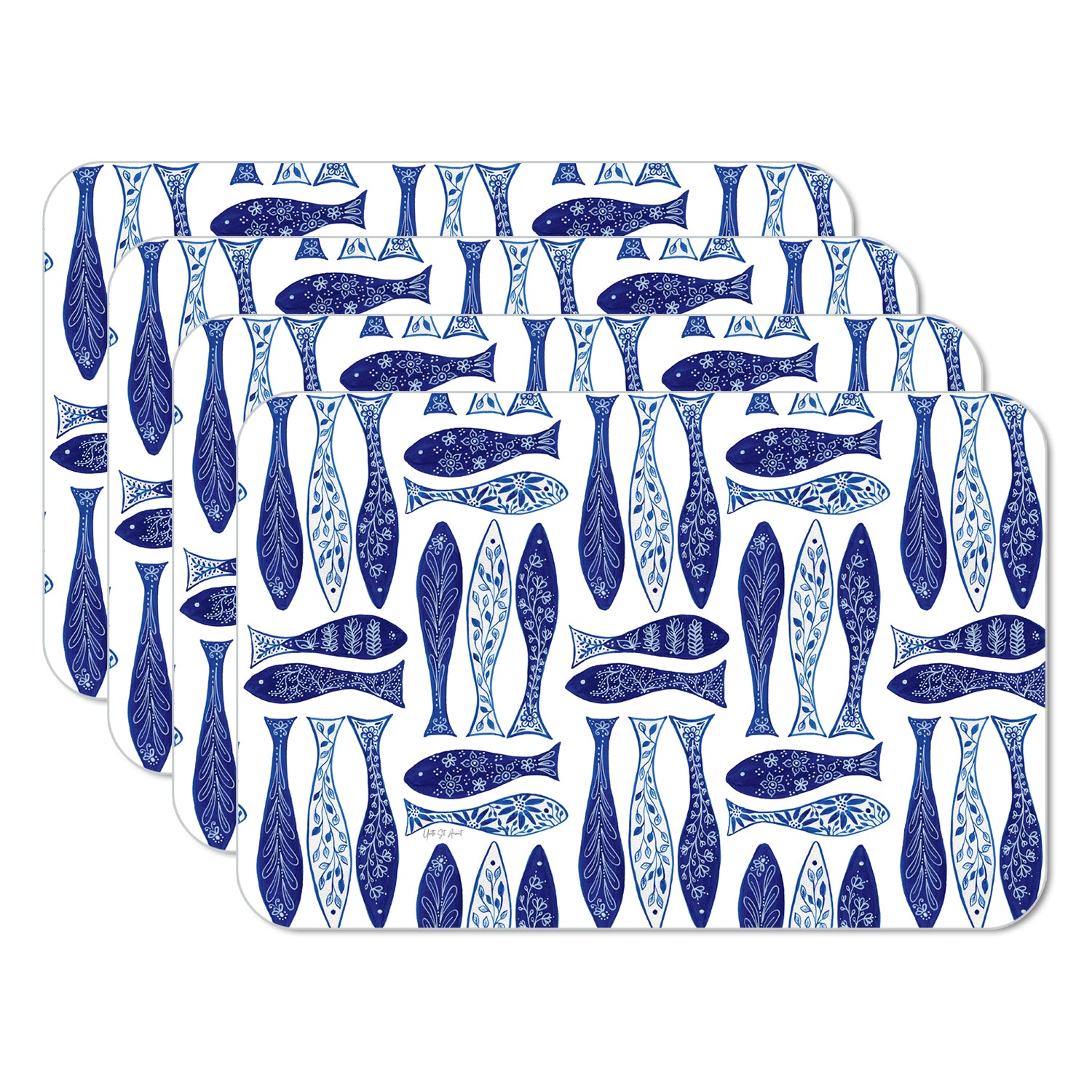 CounterArt Chinoiserie Sea 4 Pack Reversible Easy Care Flexible Placemats Made in the USA