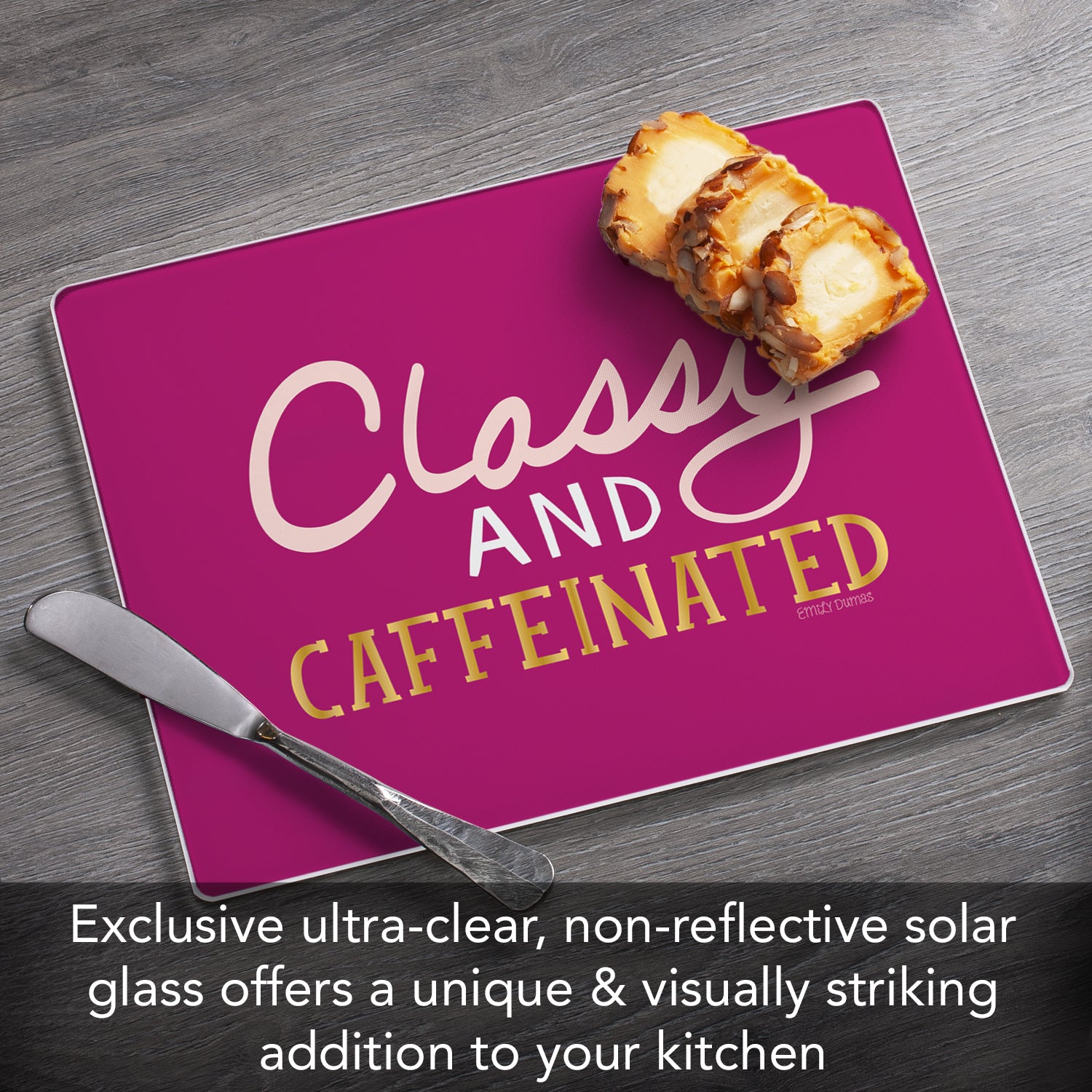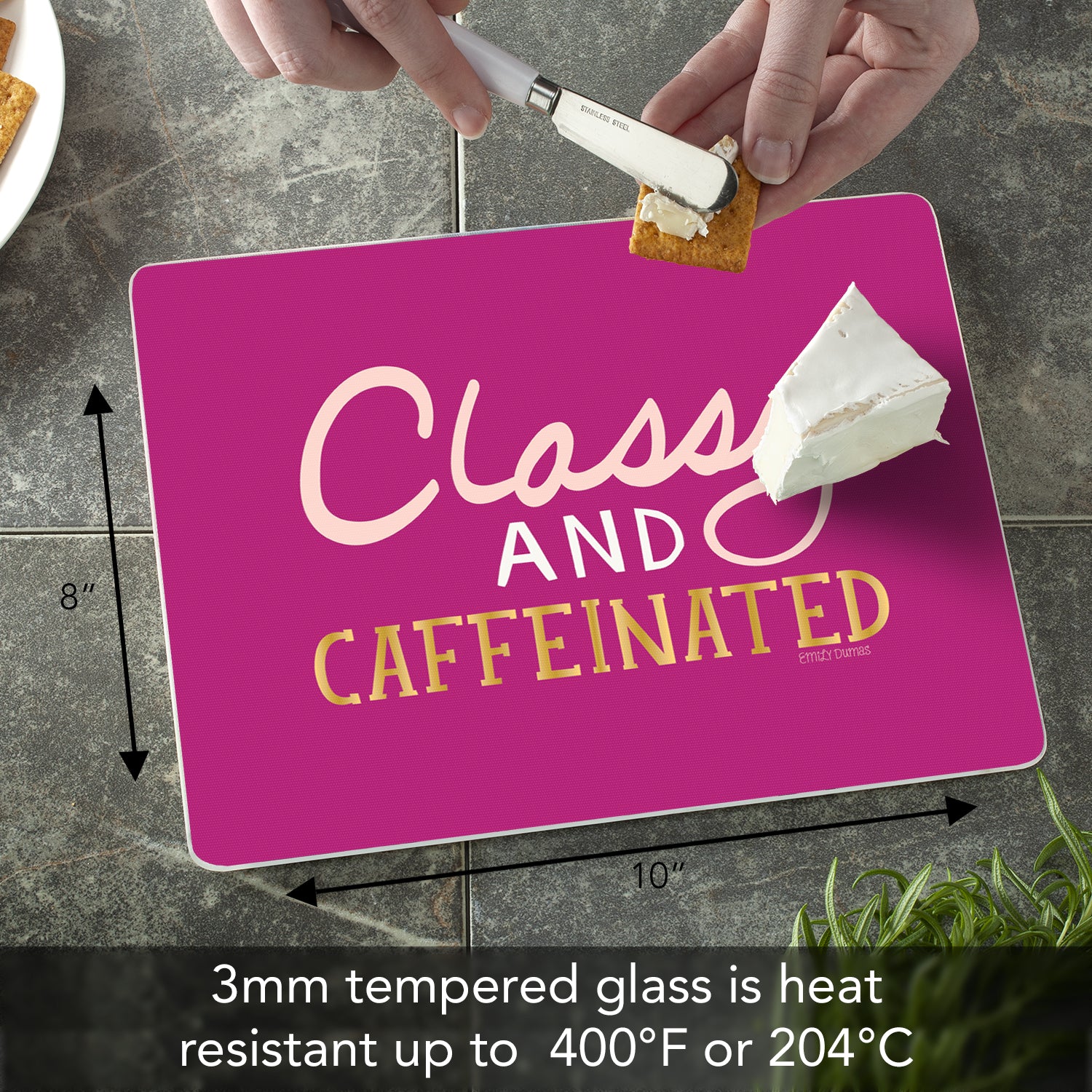 CounterArt Classy & Caffeinated 3mm Tempered Glass Cutting Board 10” x 8” Manufactured in the USA