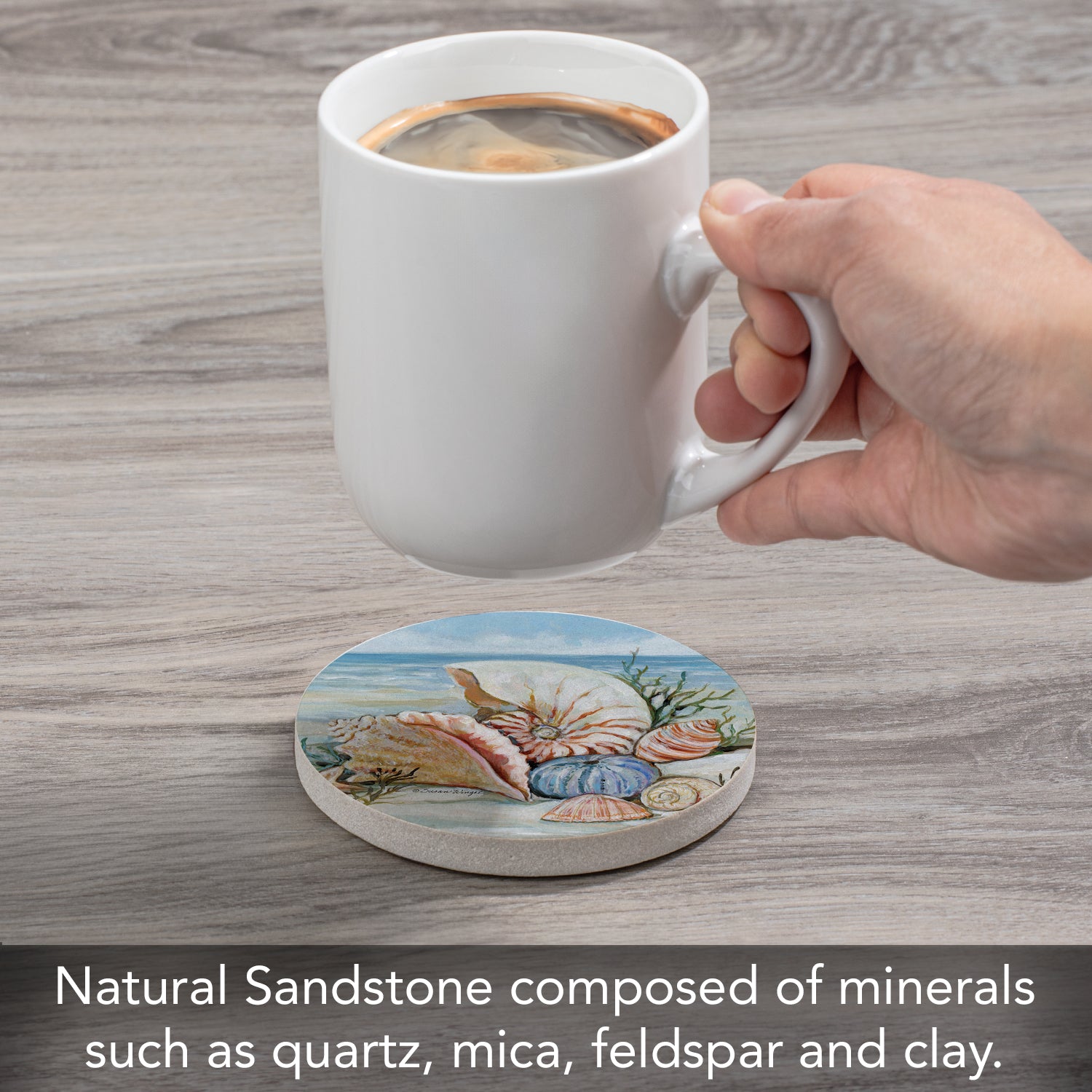Coastal Shore Single Round Natural Sandstone Coaster 4" Diameter Create Your Own Set