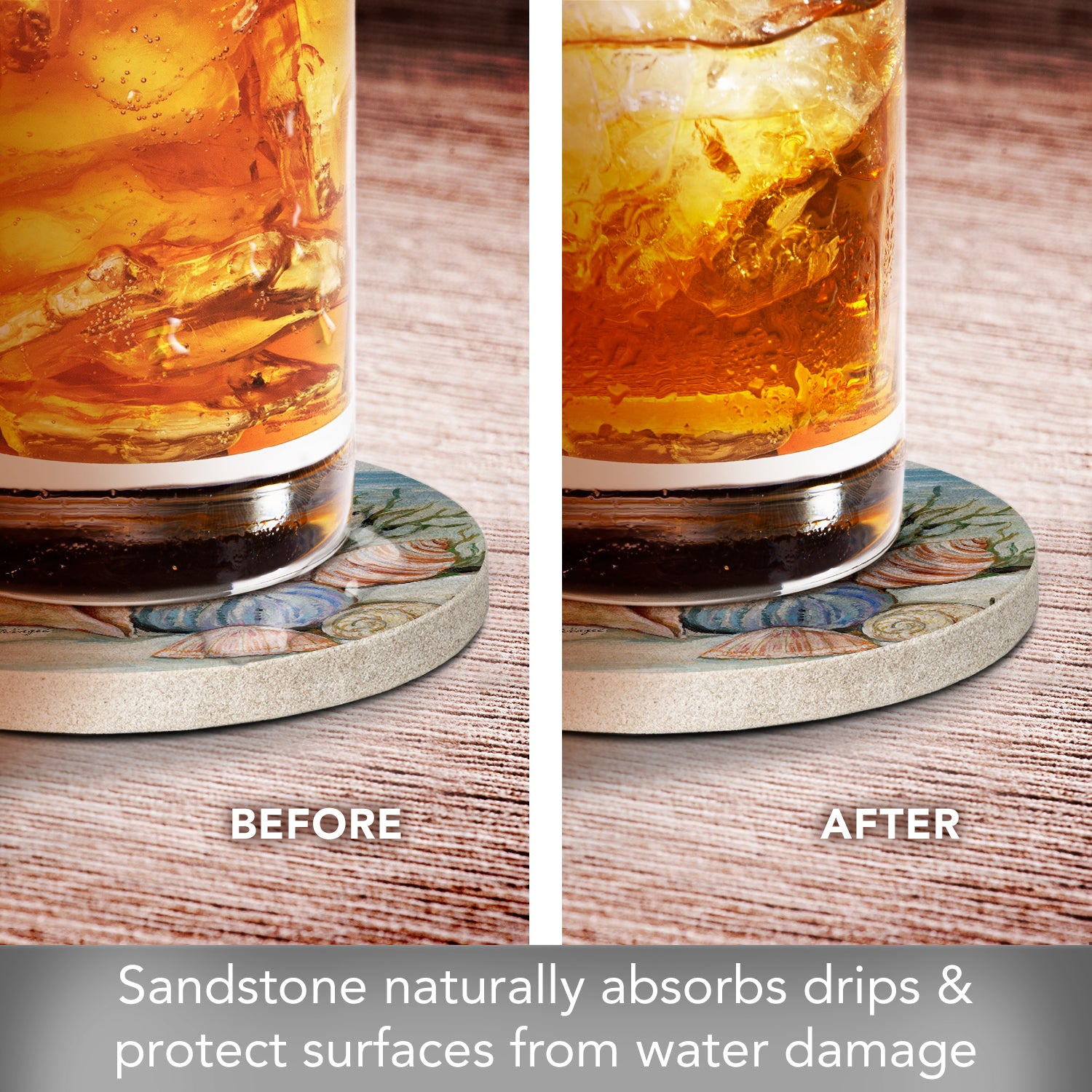 ABSORBENT STONE-Coaster is constructed from natural, absorbent sandstone to absorb excess condensation from beverages. This is a 1 Coaster Pack to allow you to choose from our other coordinating Coaster Designs and complete your own personal set.