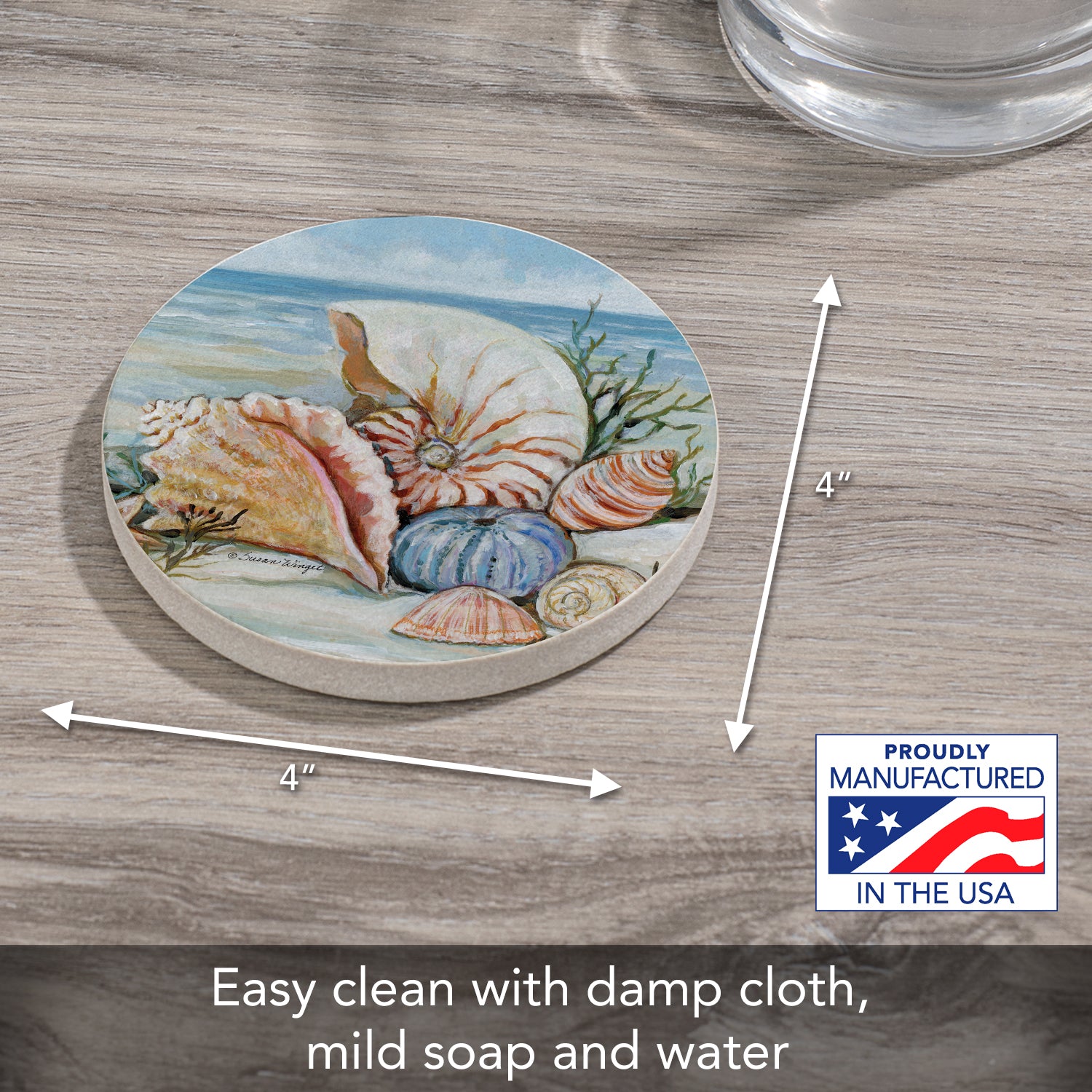 FUNCTIONAL ART-Beautiful artistic design allows the Coaster to remain displayed even when not in use. Each Coaster measures 4” x 4” x .31”. Sized to fit larger Mugs & Glasses.