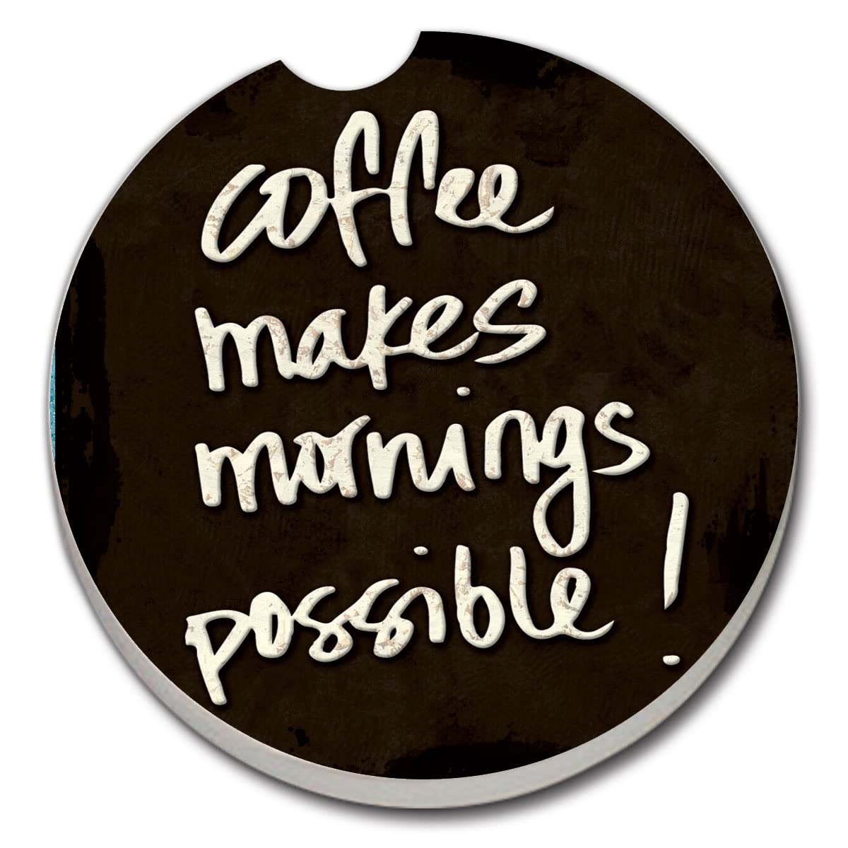 Coffee Makes Mornings Single Absorbent Stone Car Coaster 2.6” Diameter Manufactured in the USA