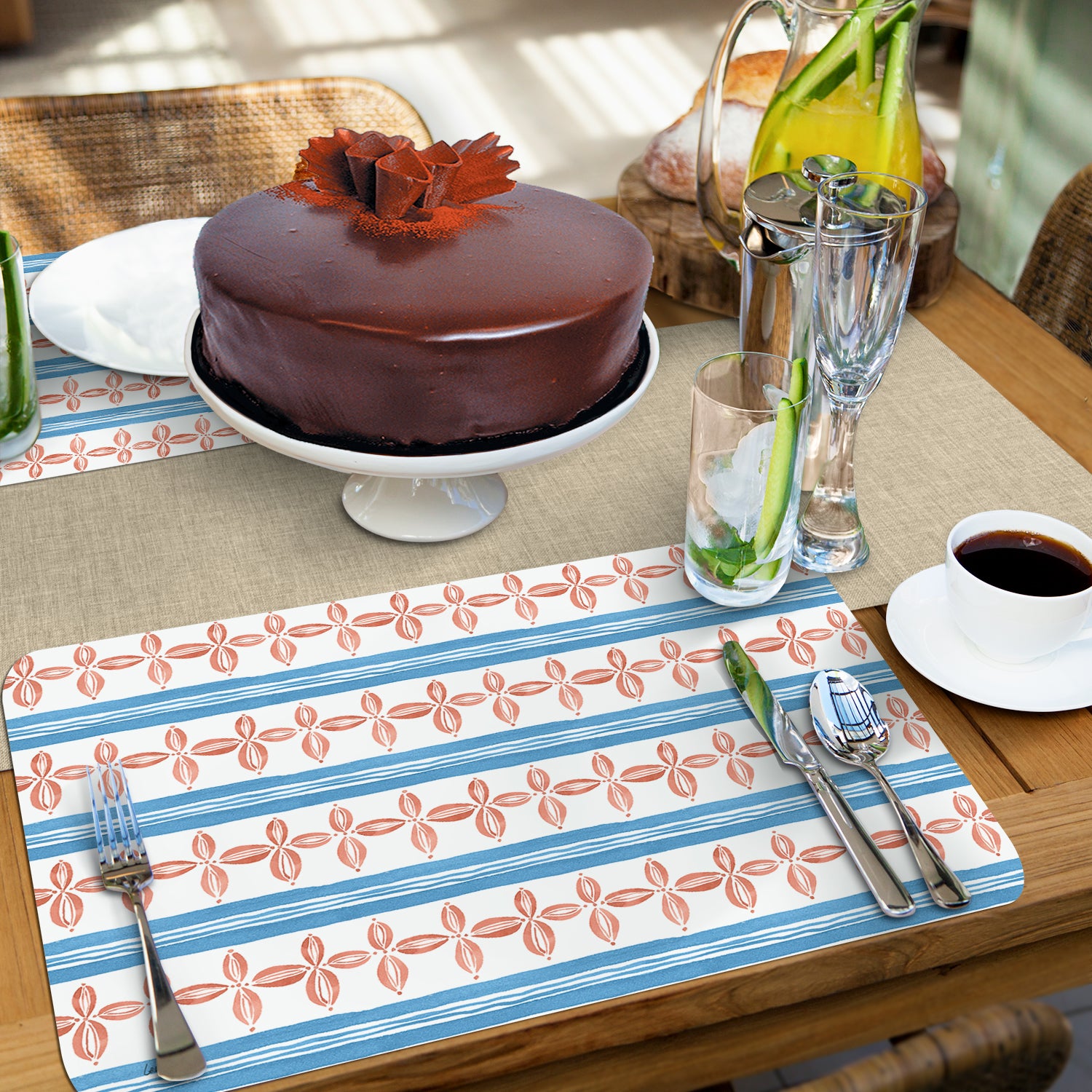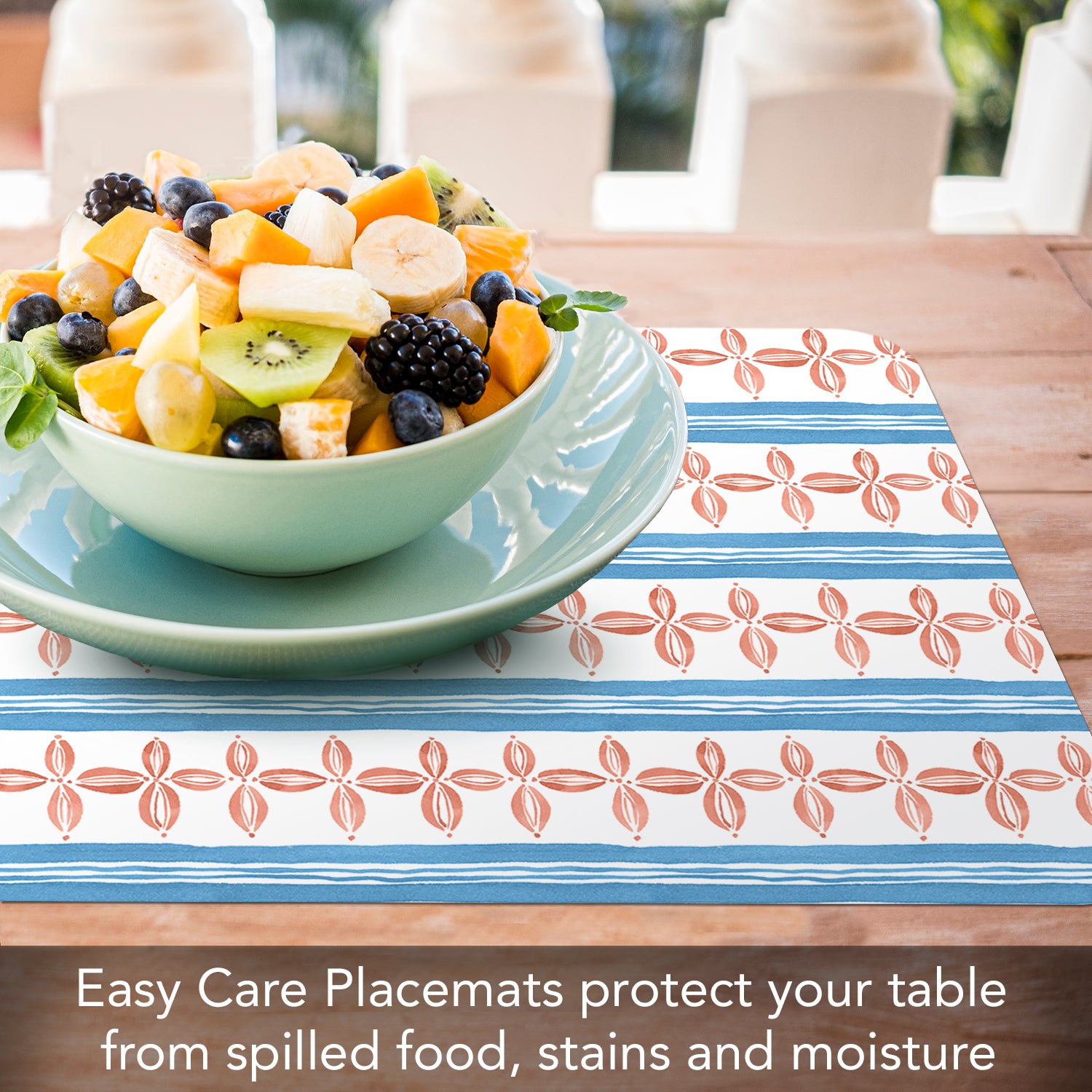 PROTECTS SURFACES-Placemats protect your table or countertop from spilled food, scratches, or stains. Placemat material prevents liquids from soaking through to your surfaces which may cause water rings or damage.