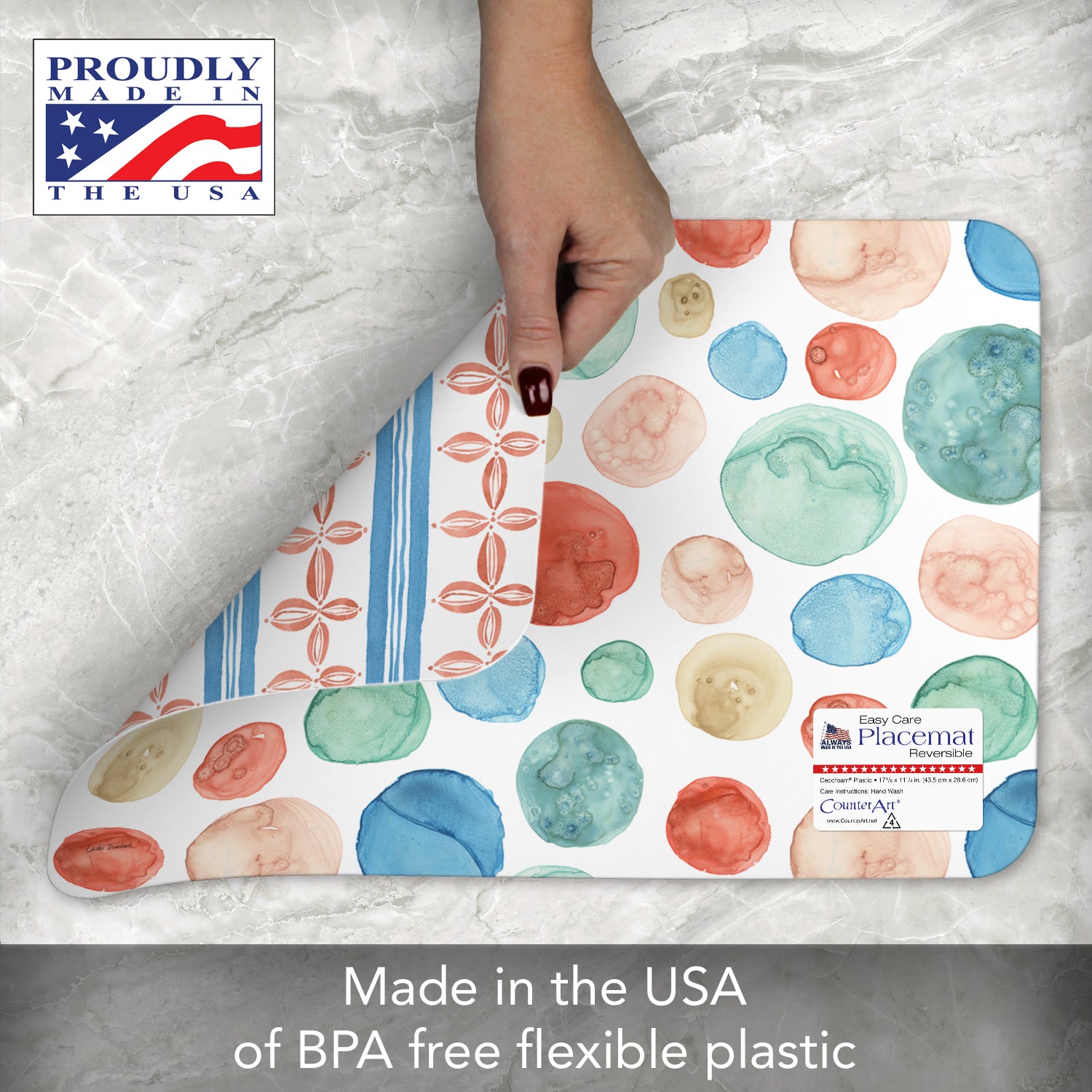 MADE IN THE USA-Placemats are constructed in our Florida facility. Each purchase supports hard working American families and communities.