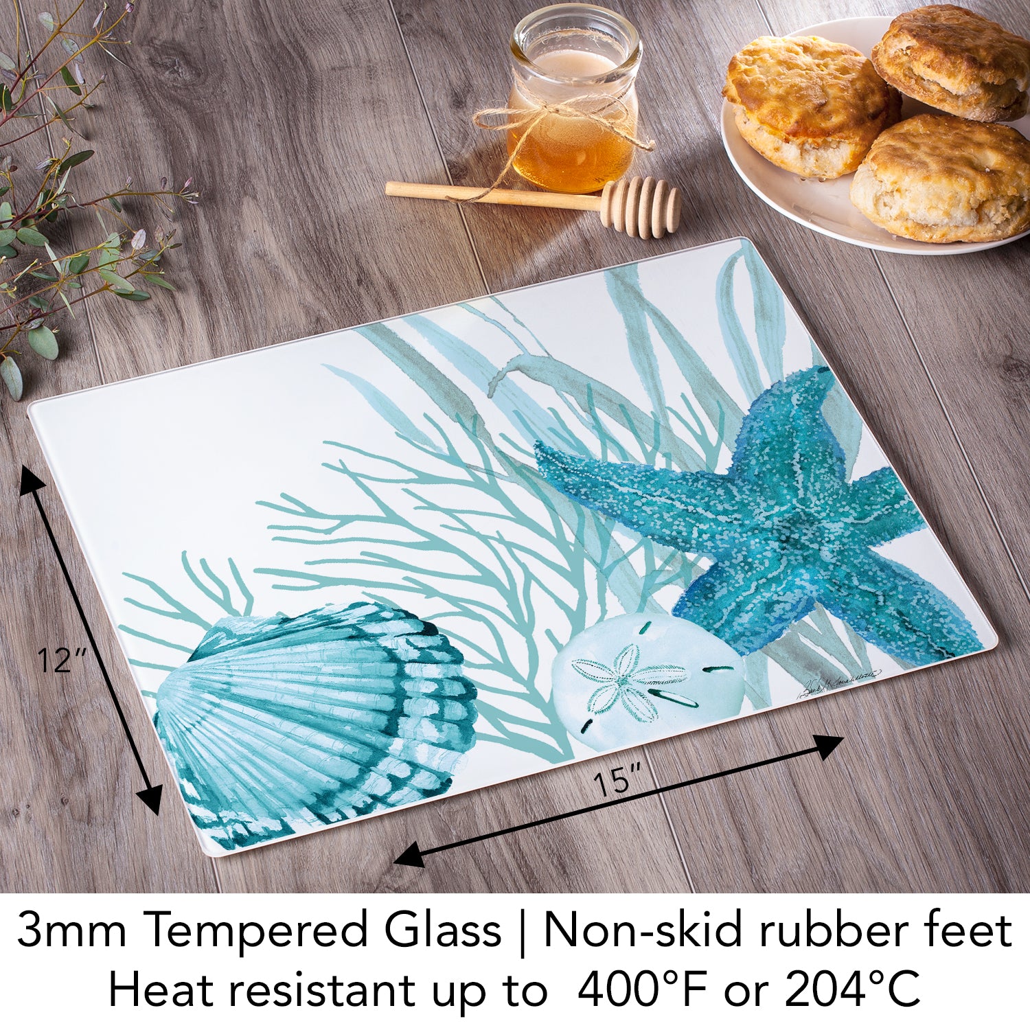 CounterArt Coral Life 3mm Tempered Glass Cutting Board 15” x 12” Manufactured in the USA