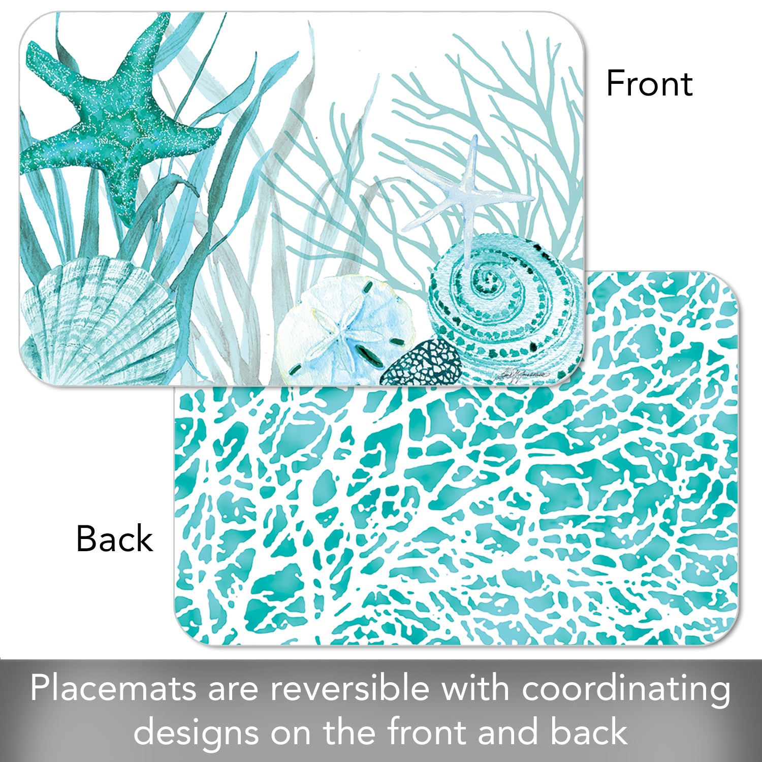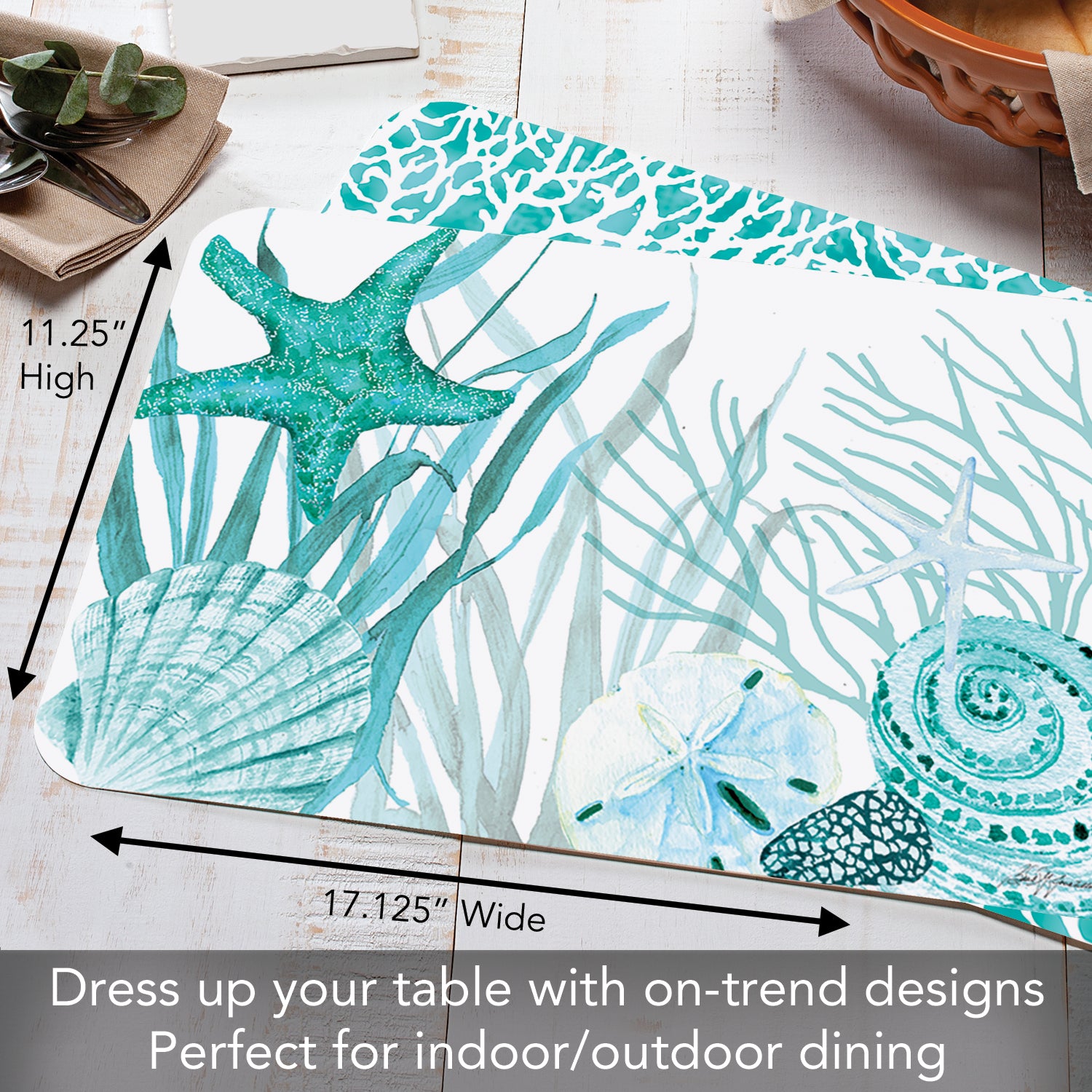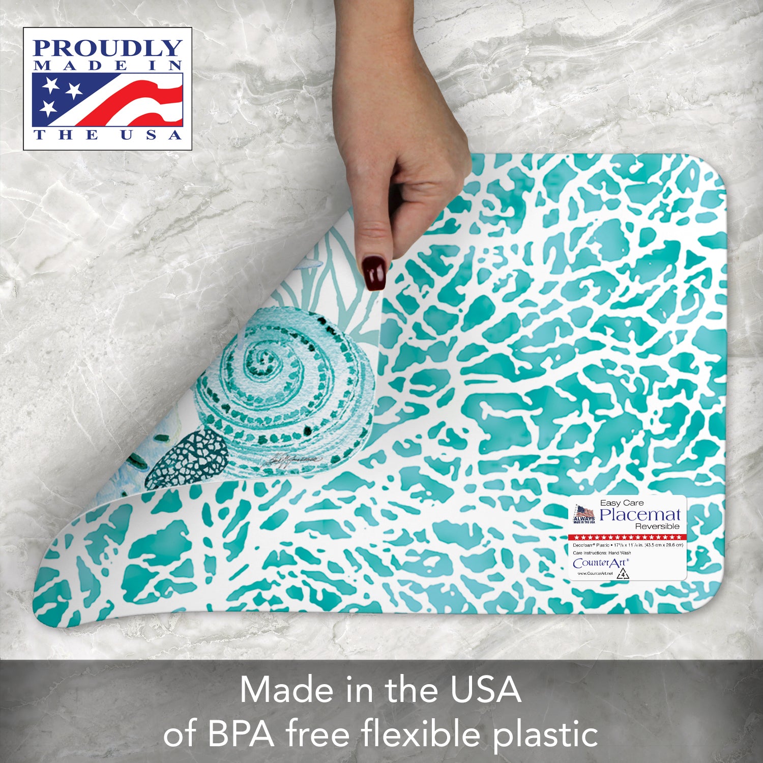 CounterArt Coral Life 4 Pack Reversible Easy Care Flexible Placemats Made in the USA