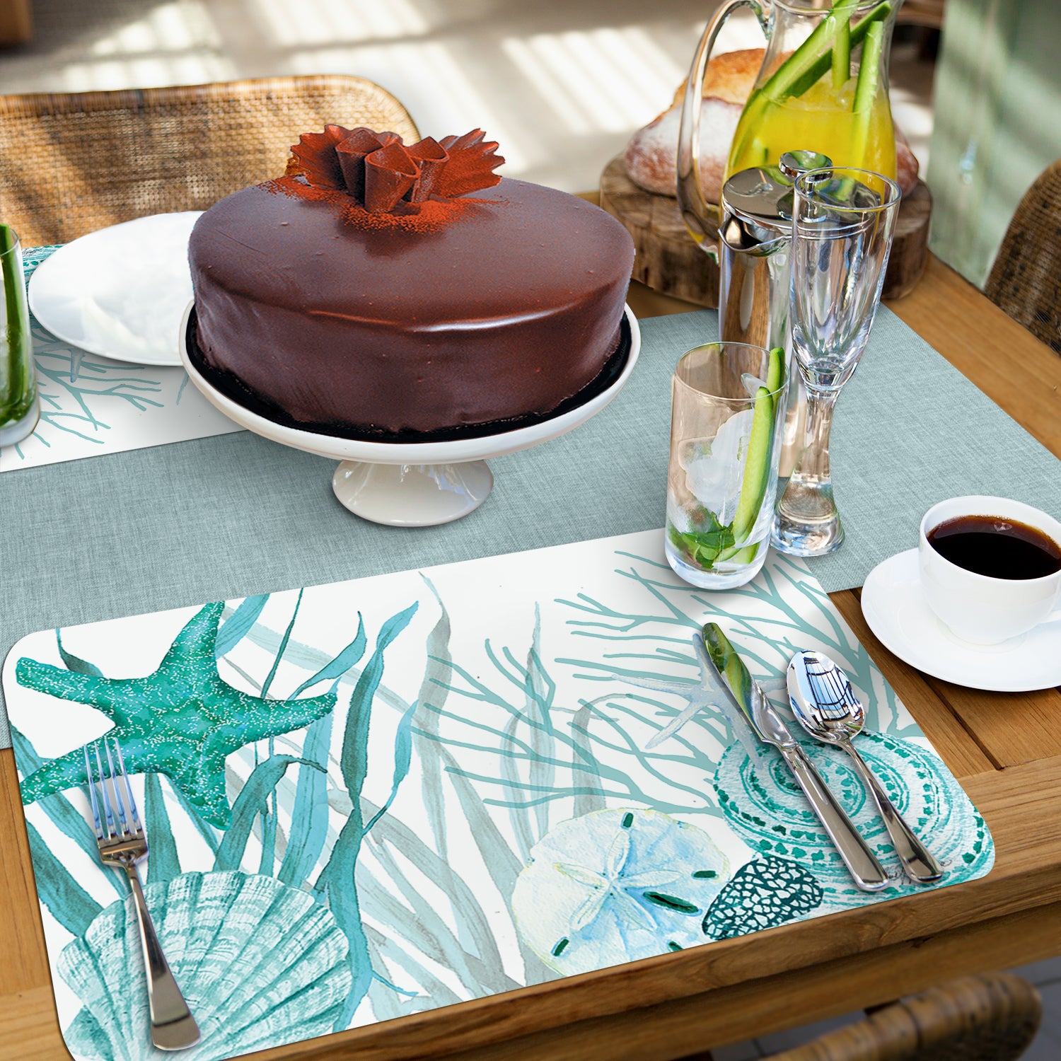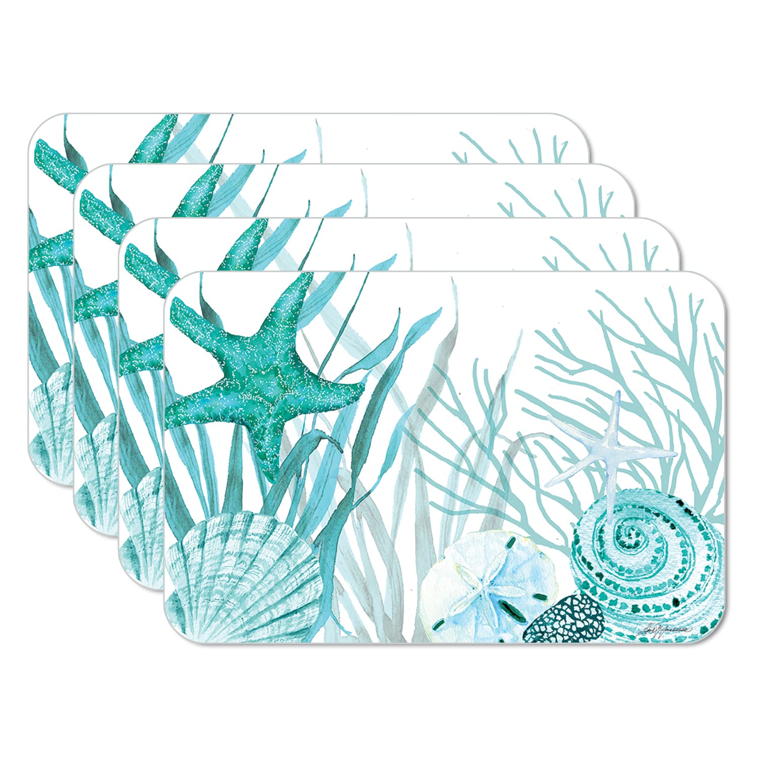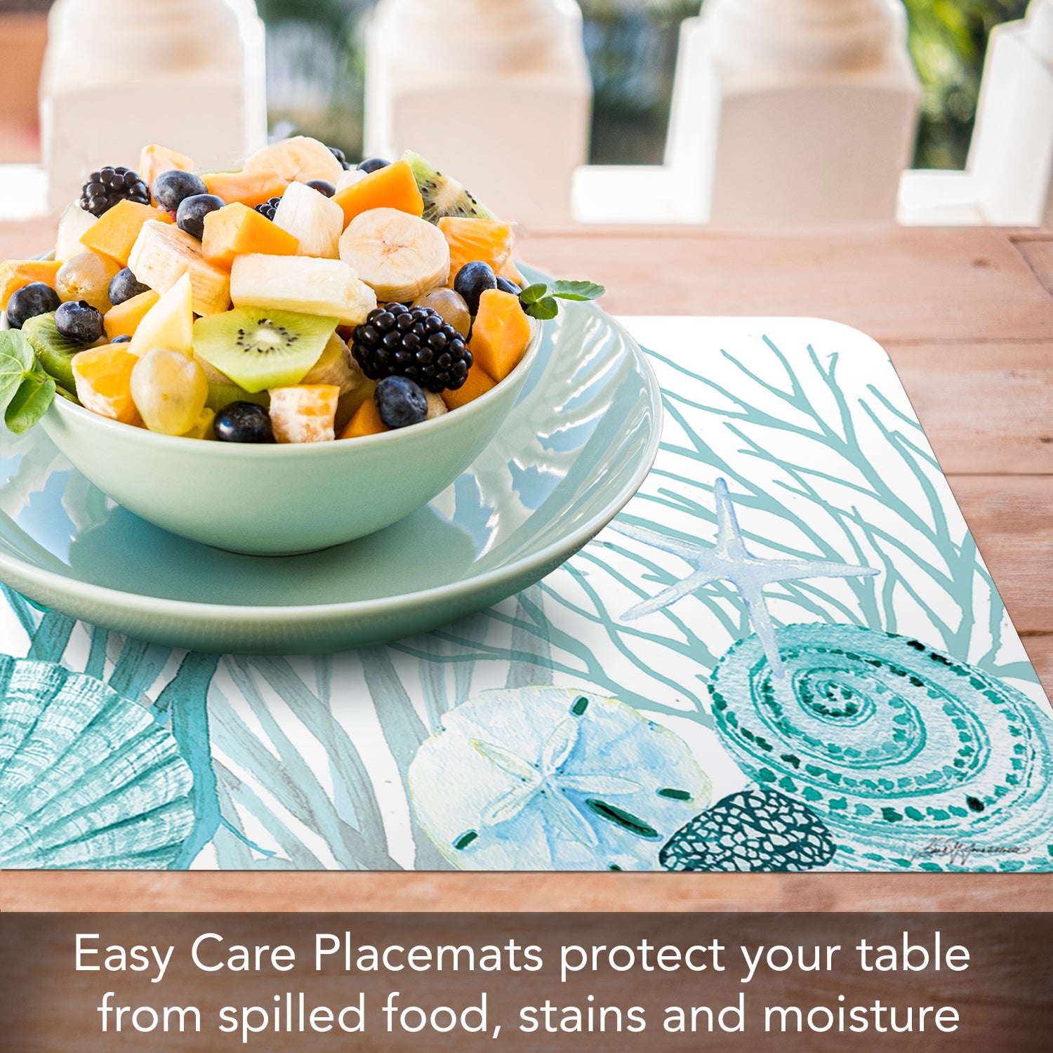 CounterArt Coral Life 4 Pack Reversible Easy Care Flexible Placemats Made in the USA