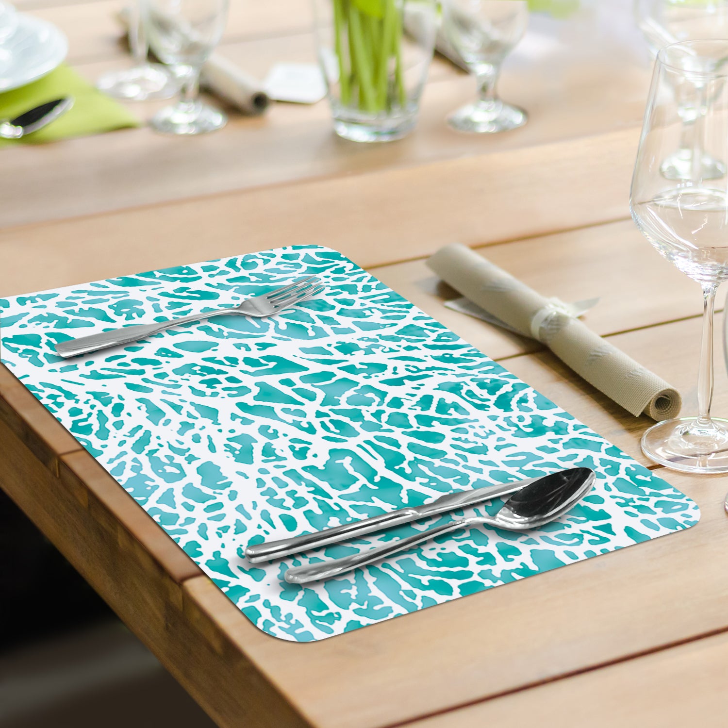 REVERSIBLE-Each Placemat features a coordinating design printed on the opposite side. Placemats are constructed of BPA and PVC free flexible plastic.