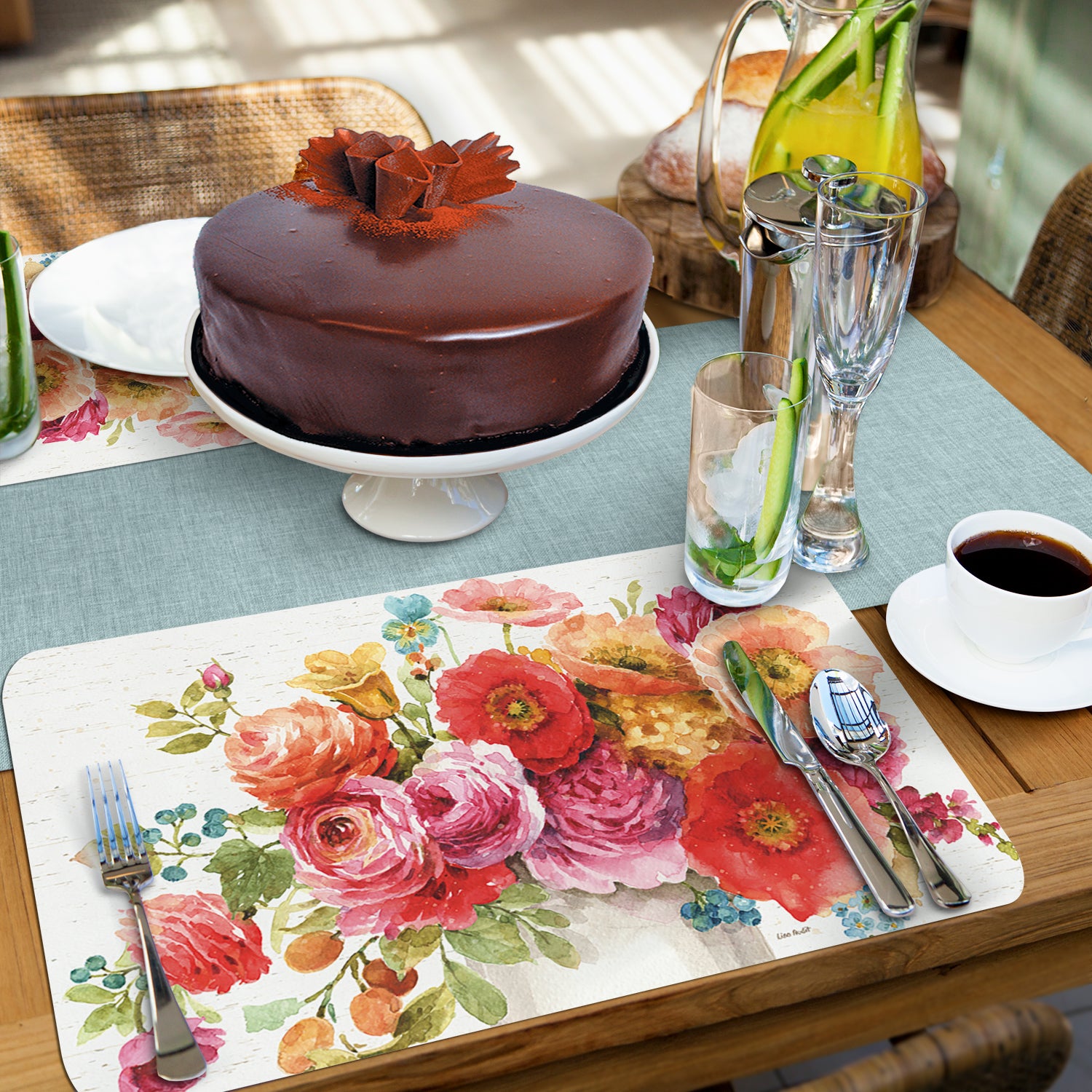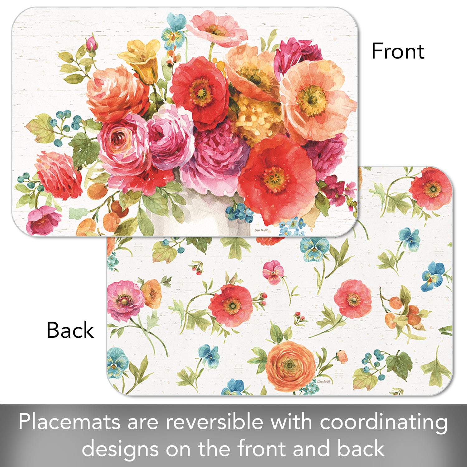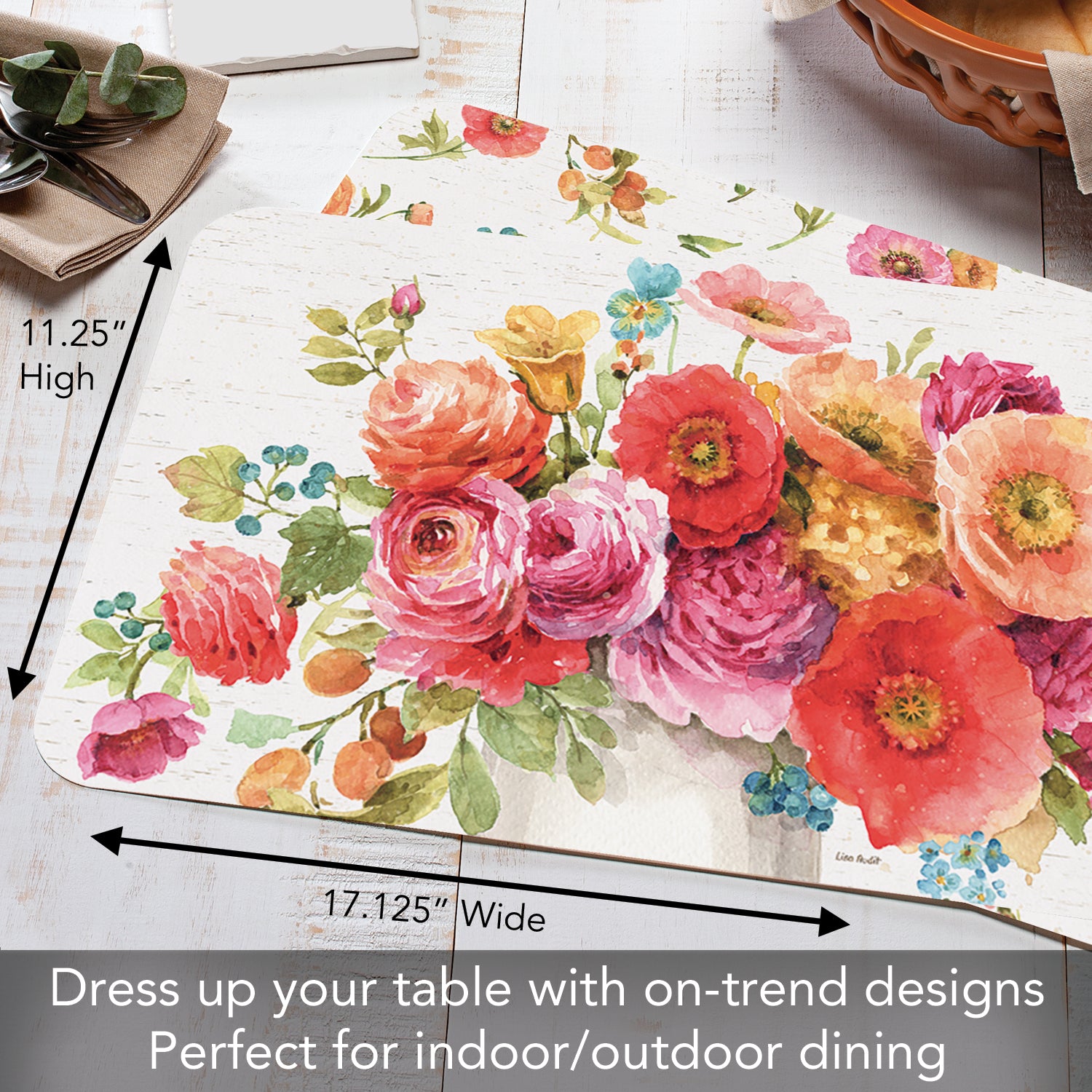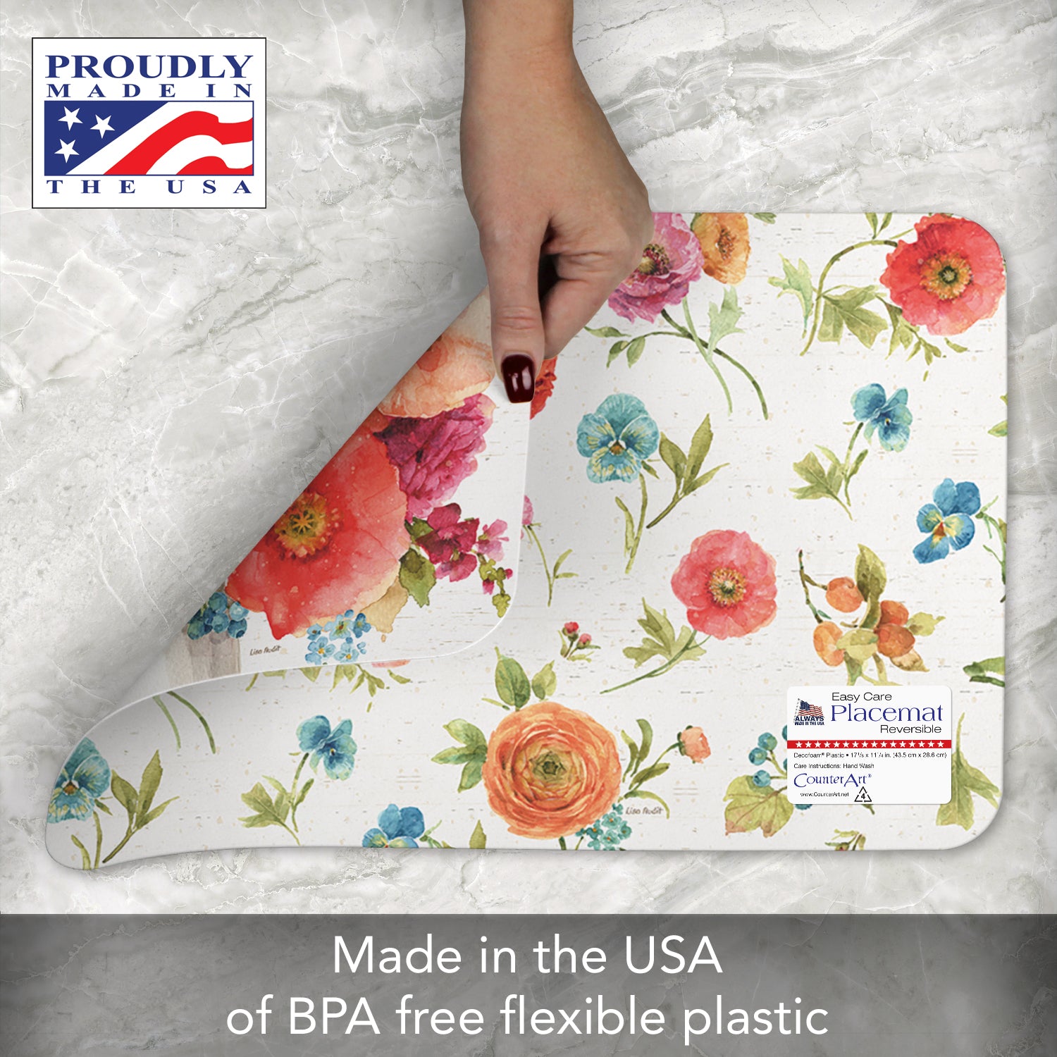 Counterart Country Fresh Flowers 4 Pack Reversible Easy Care Flexible Placemats Made in the USA