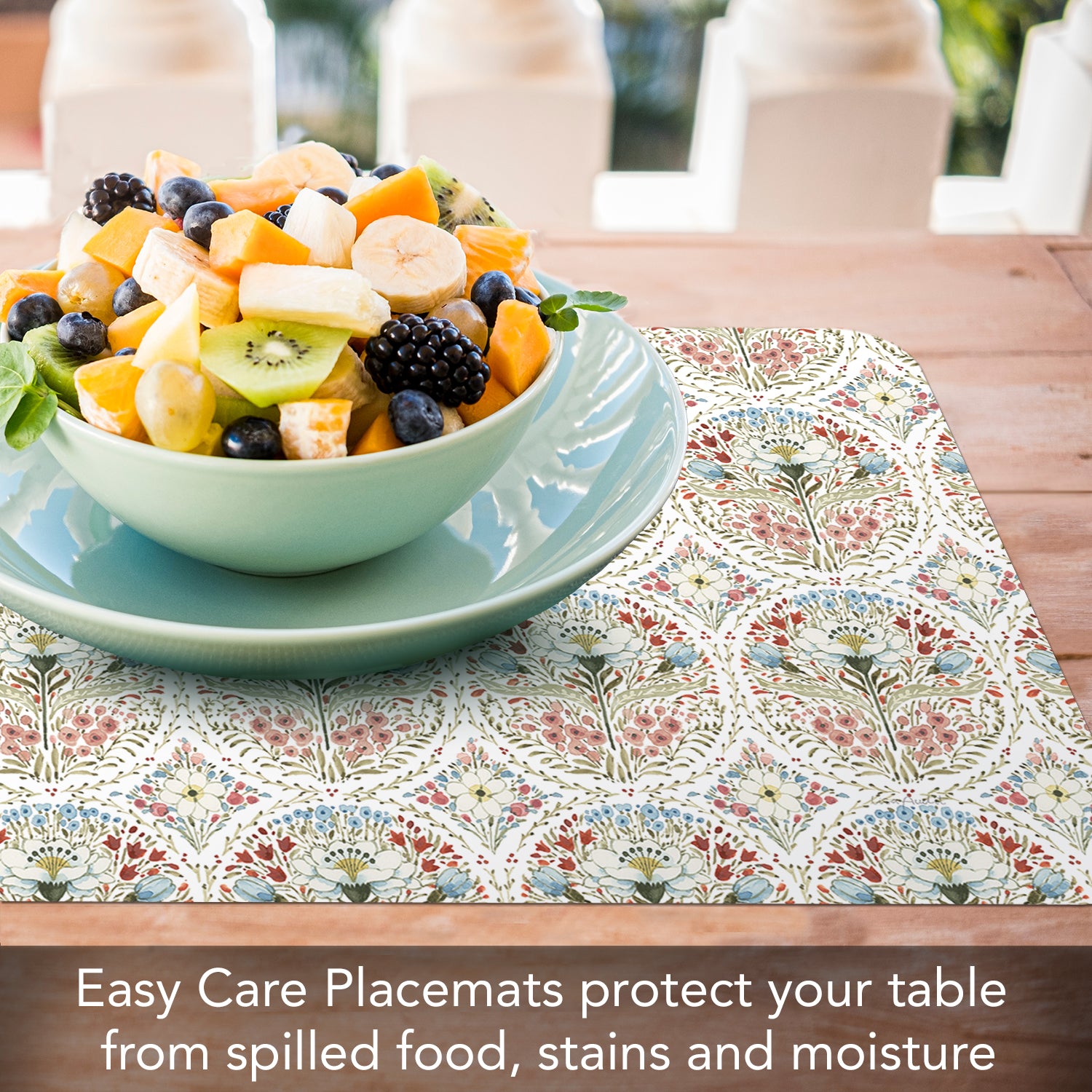 PROTECTS SURFACES-Placemats protect your table or countertop from spilled food, scratches, or stains. Placemat material prevents liquids from soaking through to your surfaces which may cause water rings or damage.