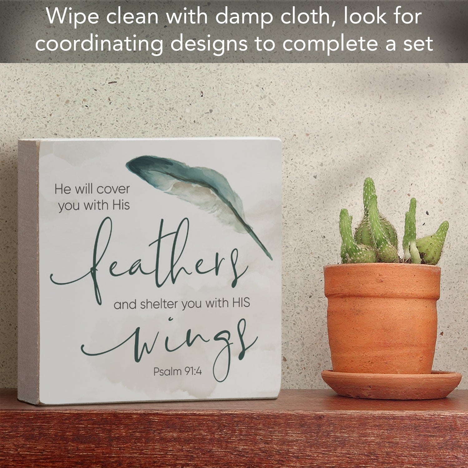 Feathers Faith Driven Wooden Home Accent Sign 3.75" Square Made in the USA