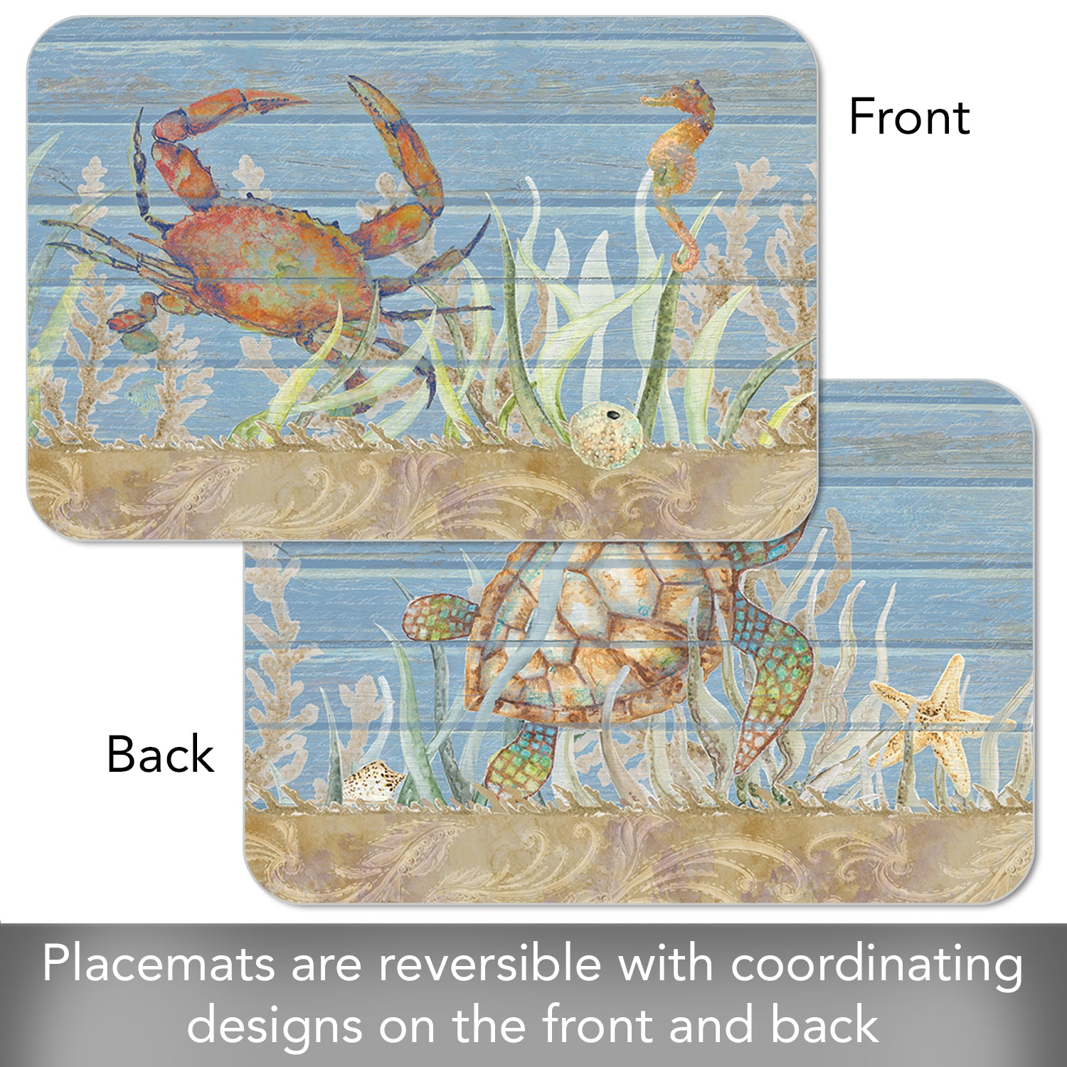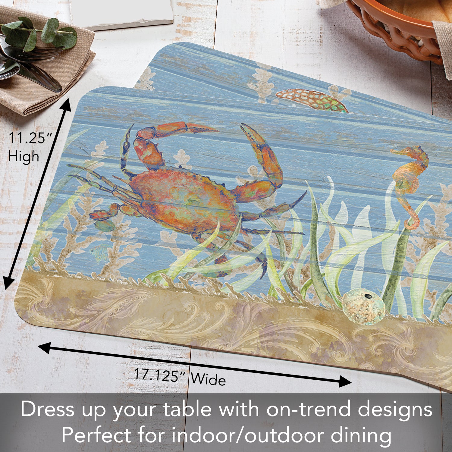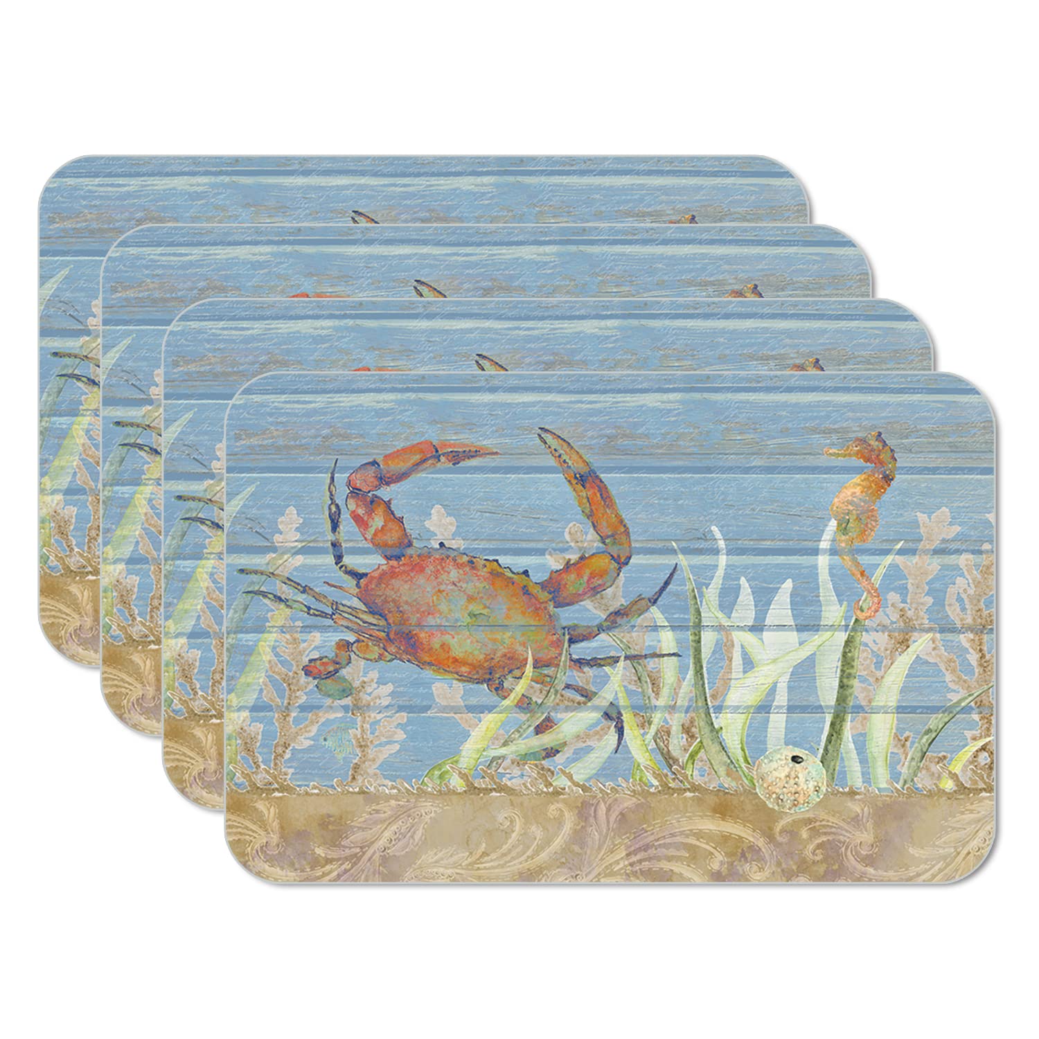 CounterArt Crab Life 4 Pack Reversible Easy Care Flexible Placemats Made in the USA