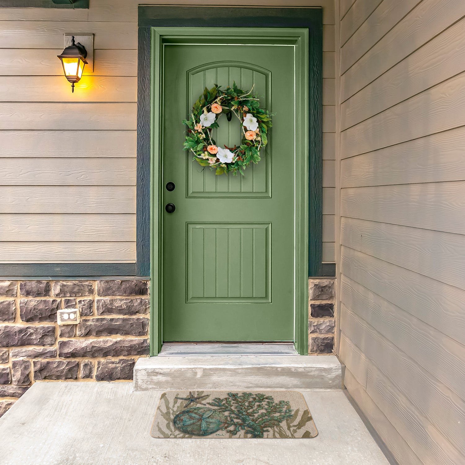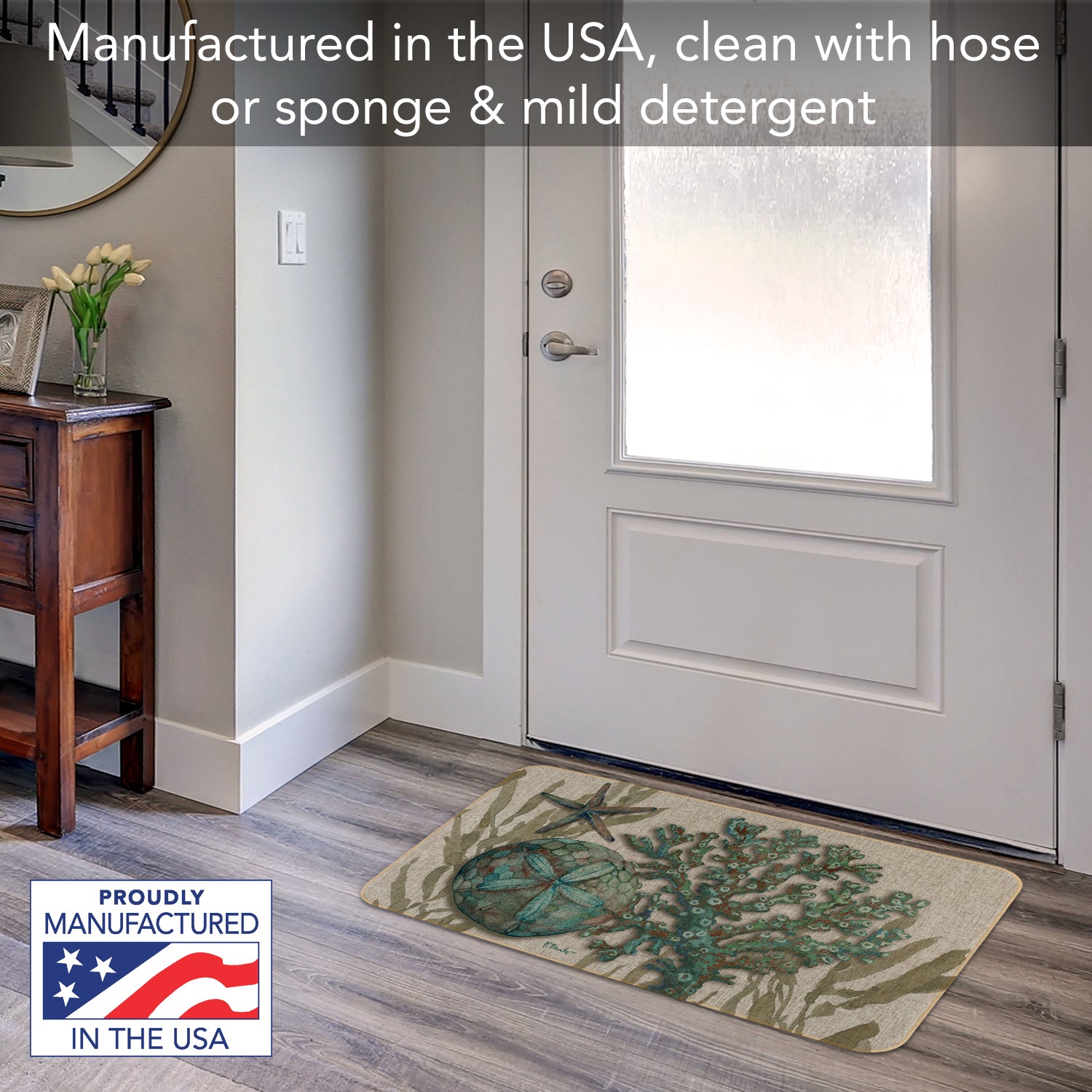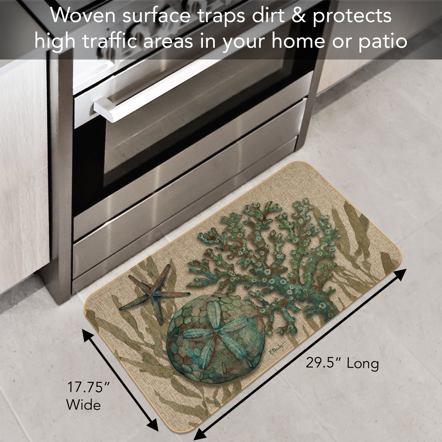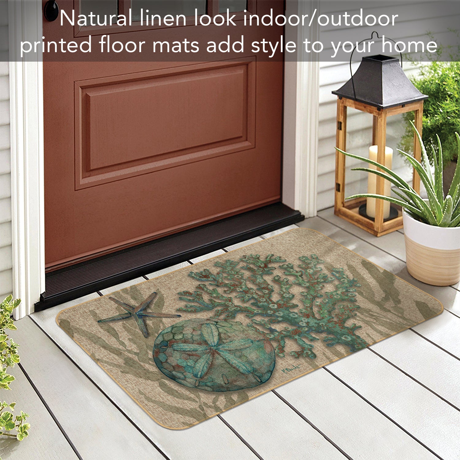 Crescent Beach Shells Decorative Indoor/Outdoor Natural Linen Look Floor Mat 29.5” x 17.75”