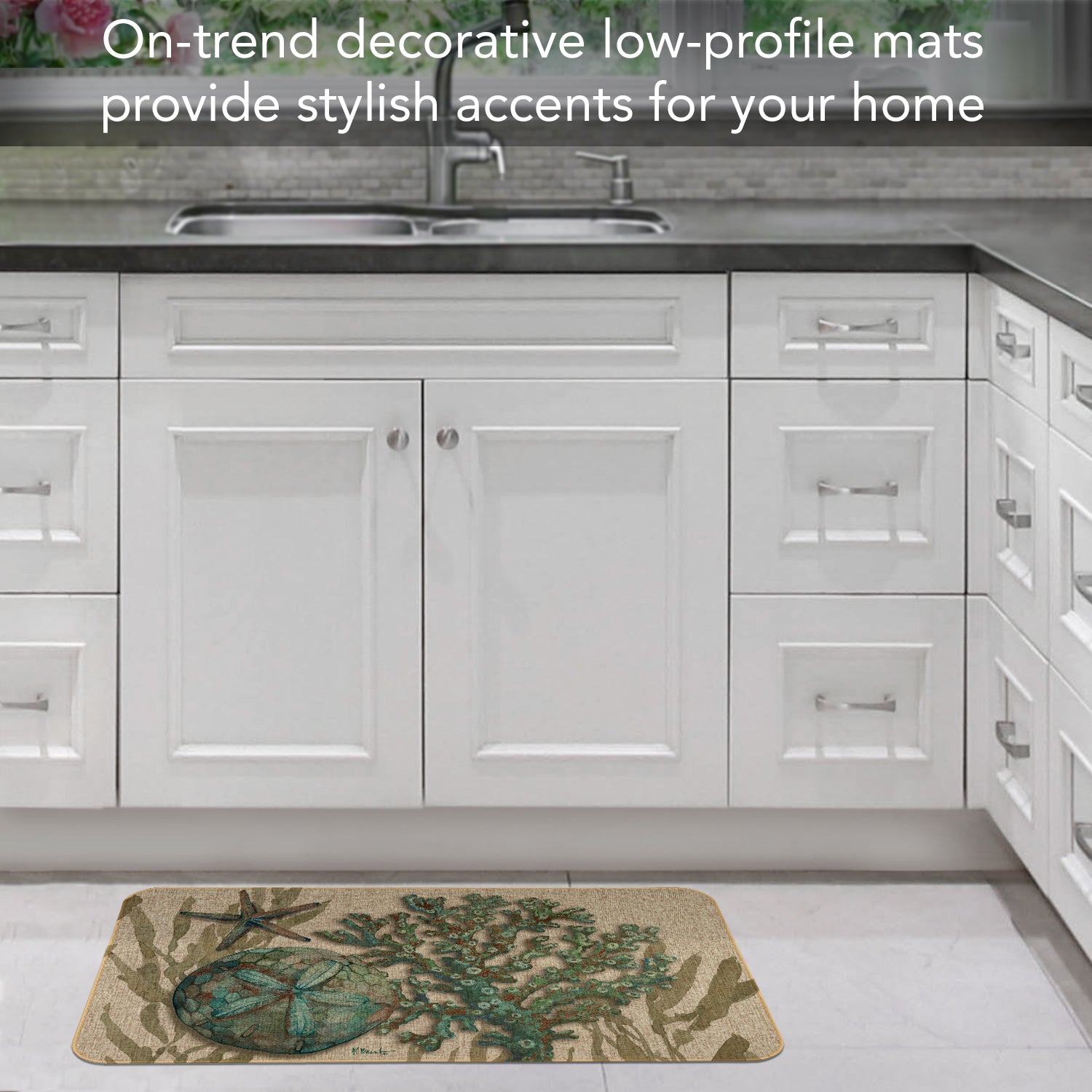 LOW PROFILE/ALL FLOOR TYPES- Textured Rubber backing allows the Floor Mat to be placed on any floor type whether it be tile, wood, or carpet. Low profile prevents tripping hazard. Rubber backing keeps the mat in place.