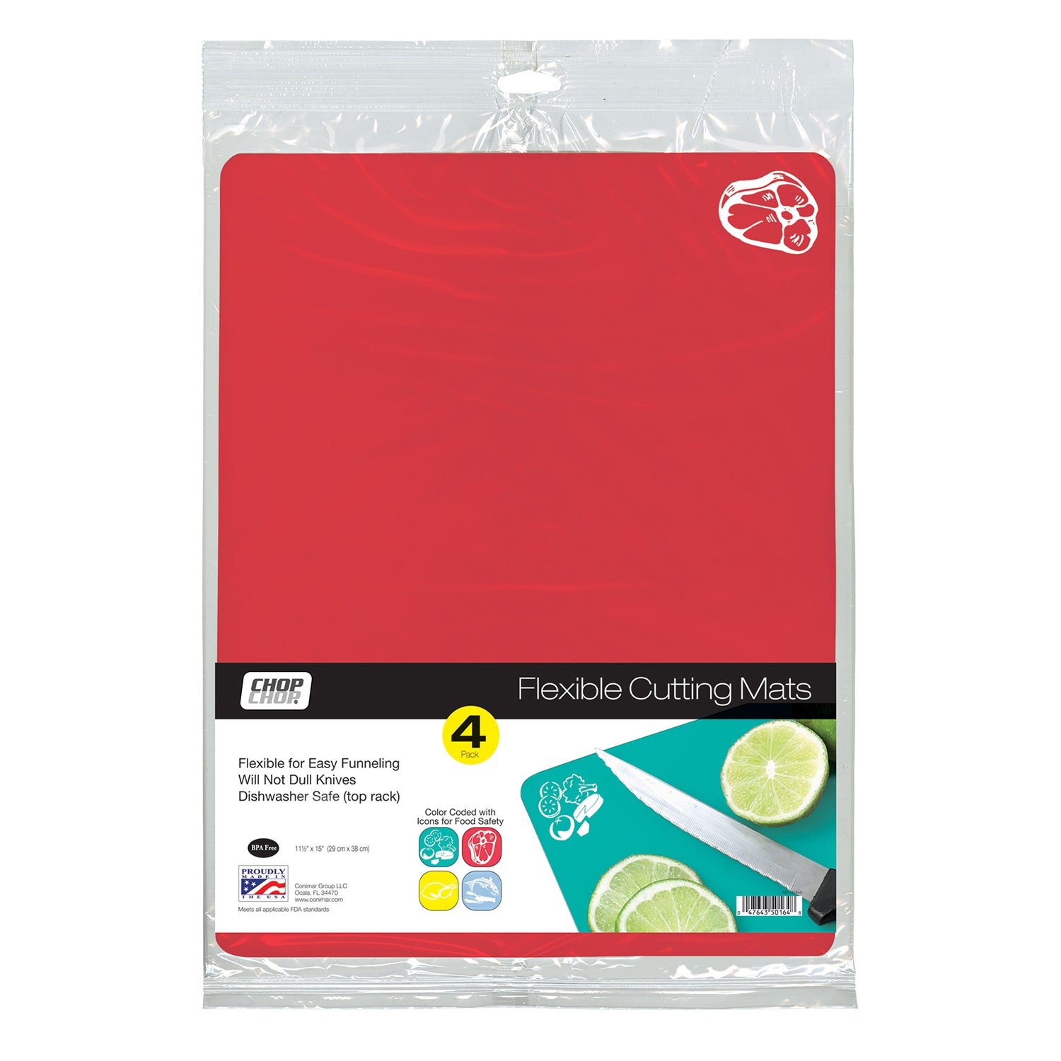 - FLEXIBLE PLASTIC- Cutting Board Mat is made of flexible plastic that bends to easily funnel chopped, sliced, or shredded food directly into a bowl, pan, or food processor. Great for chopping garnish fruit for cocktails. Clean up after use is easy with these flexible Cutting Mats. Transfer scraps, seeds, or fats directly from the Mat to the trash receptacle.
