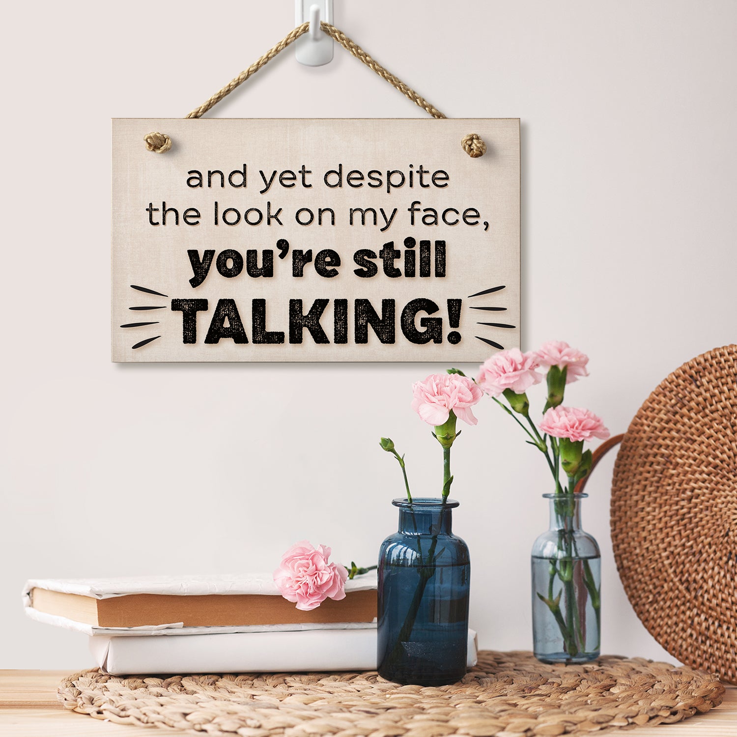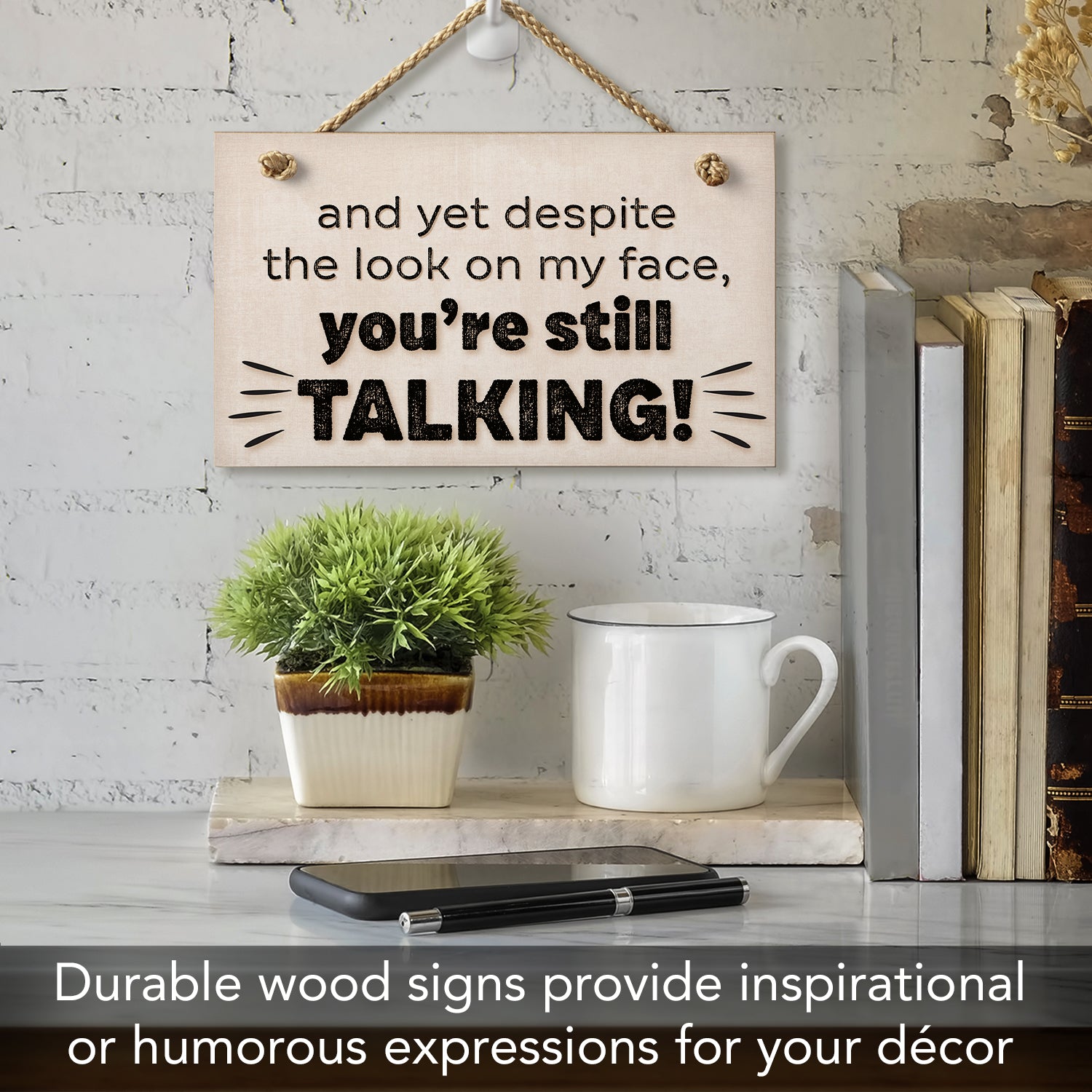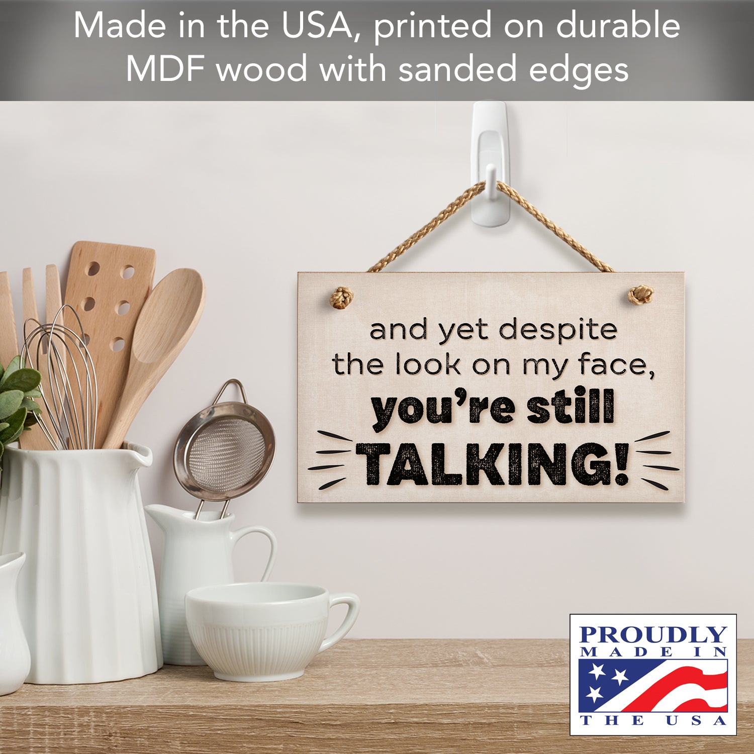 "Despite The Look On My Face You're Still Talking" Decorative Hanging Wood Wall Sign 9.5” x 5.75” Made in the USA