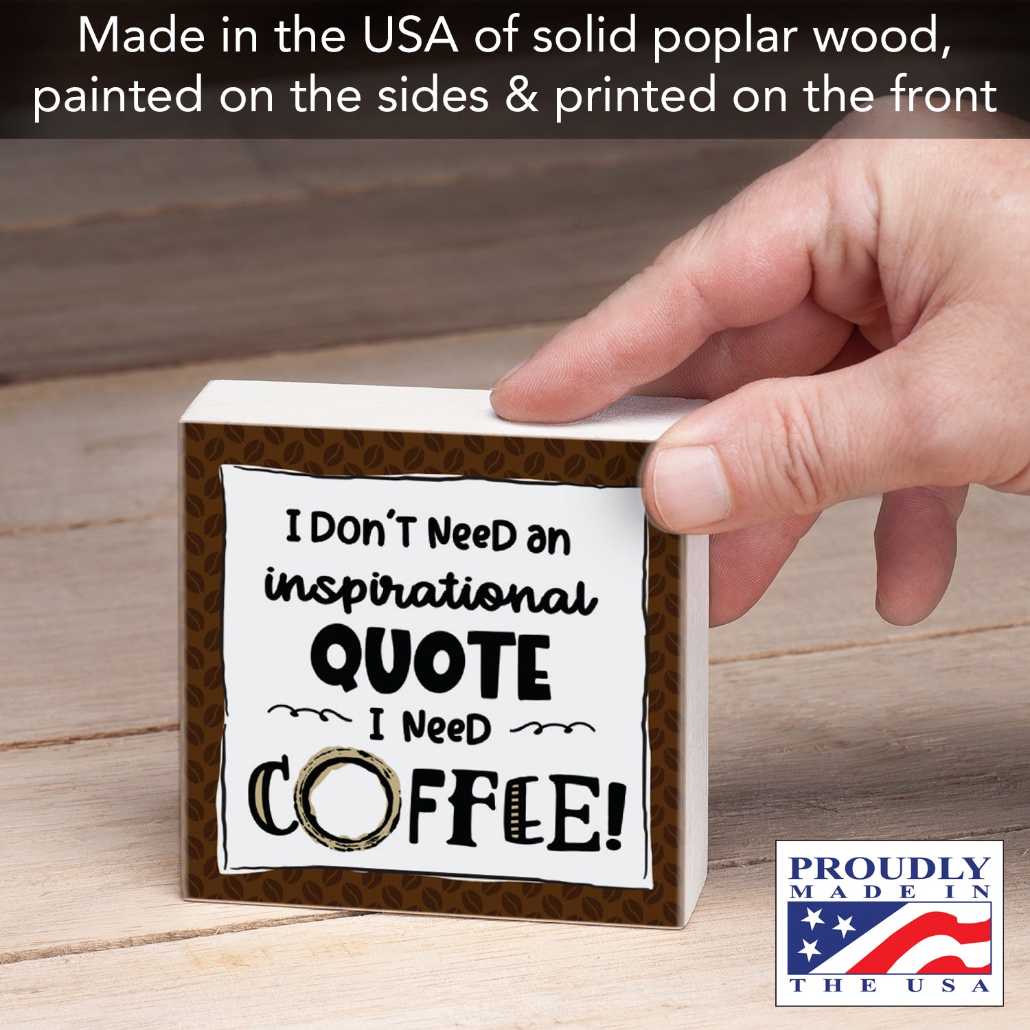 "Don't Need An Inspirational Quote" Artistic Freestanding Solid Wood Block Sign Made in the USA 3.75” Square