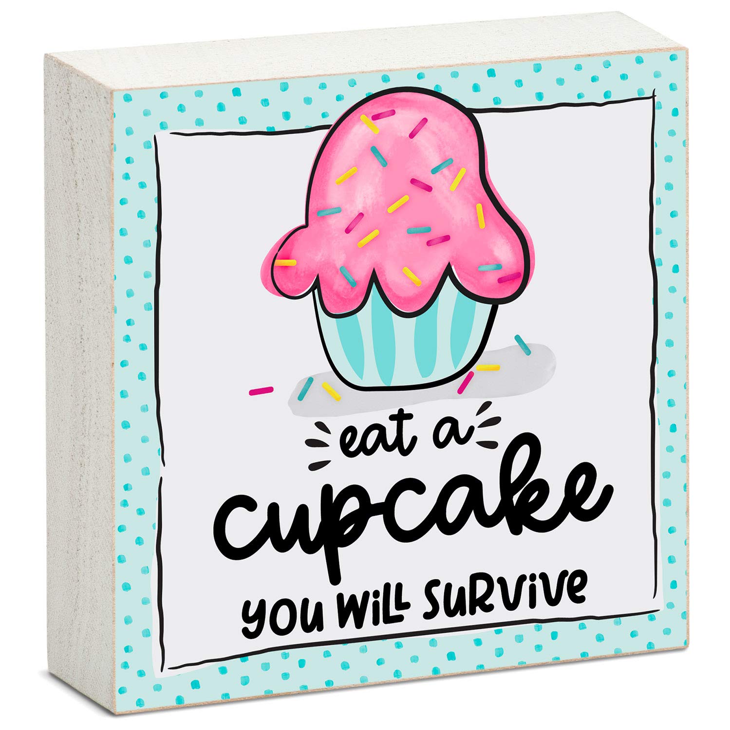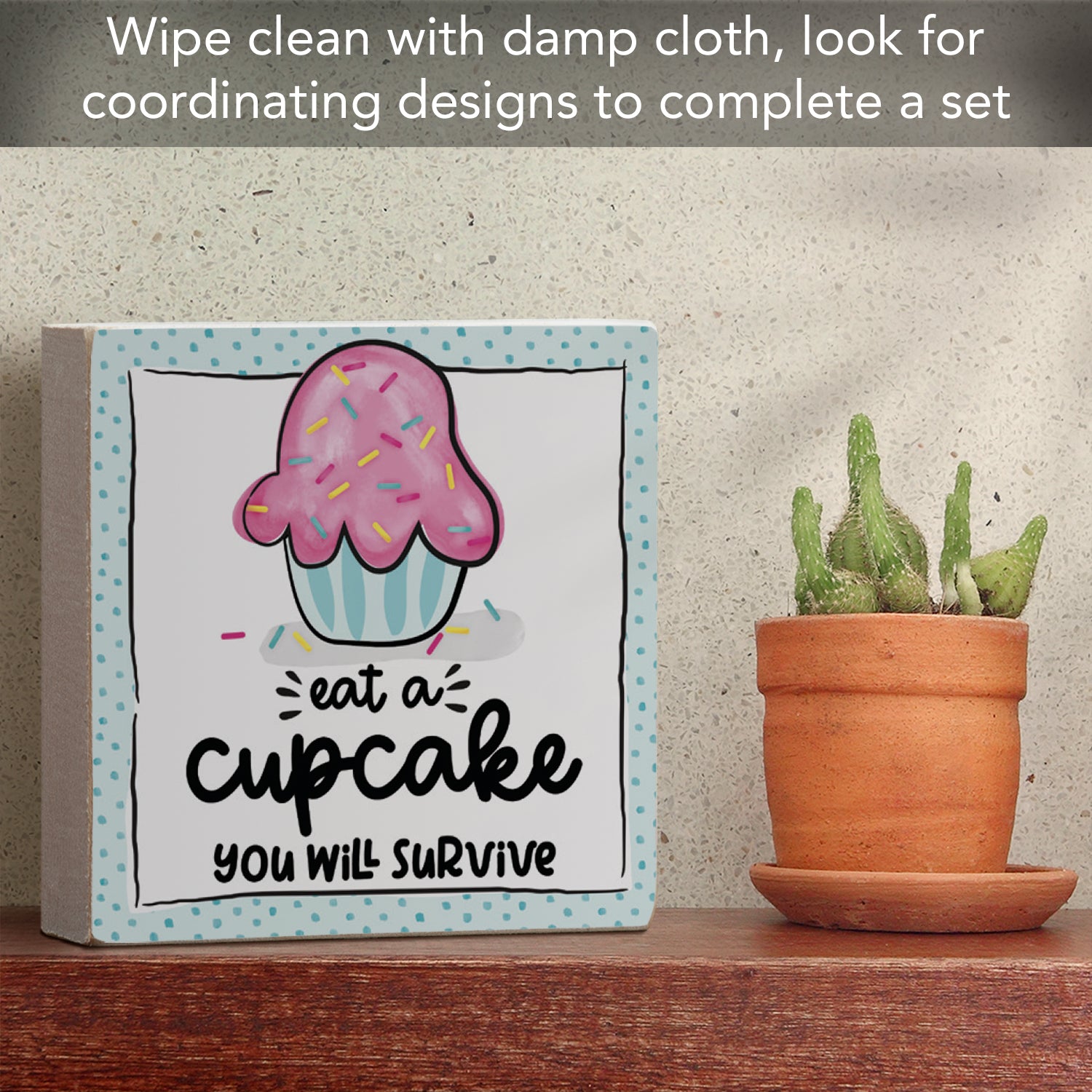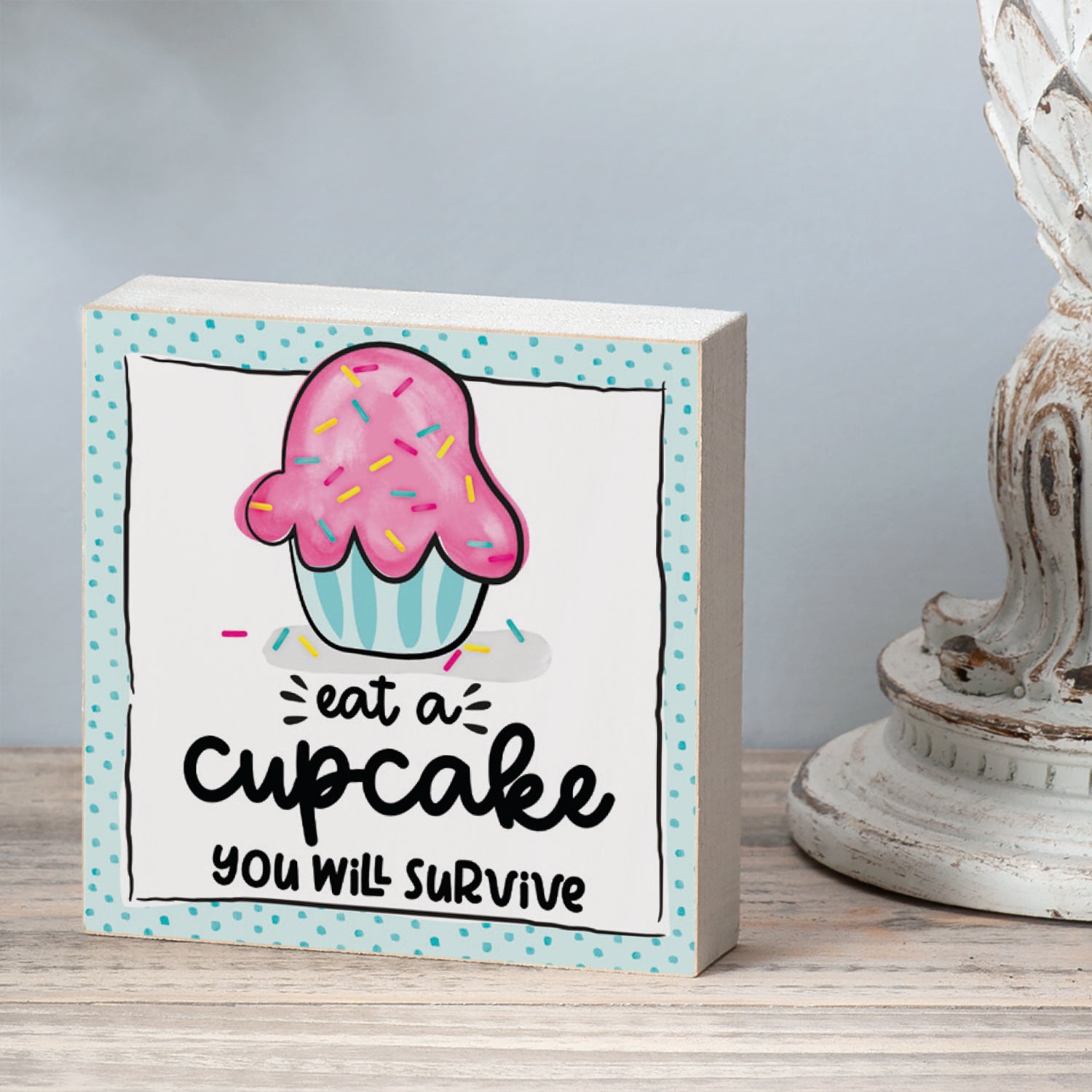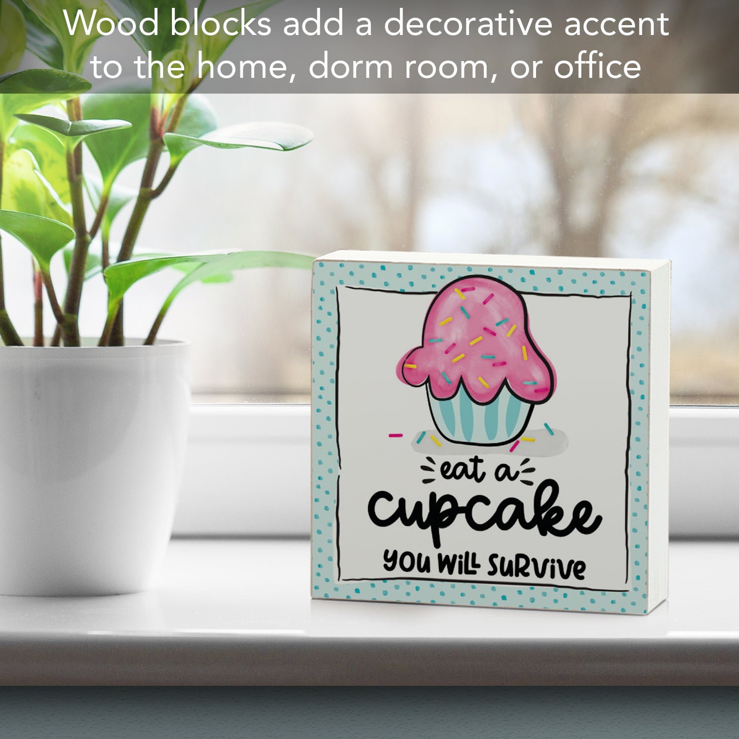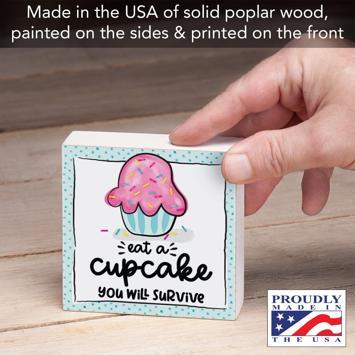 "Eat A Cupcake" Artistic Freestanding Solid Wood Block Sign Made in the USA 3.75” Square