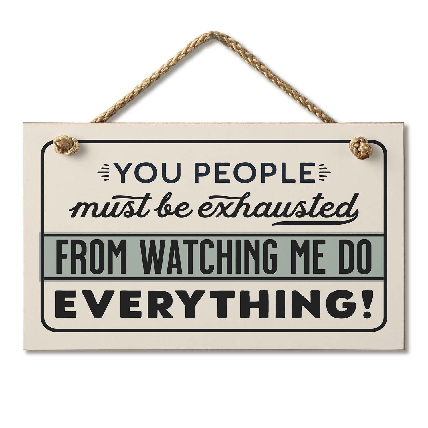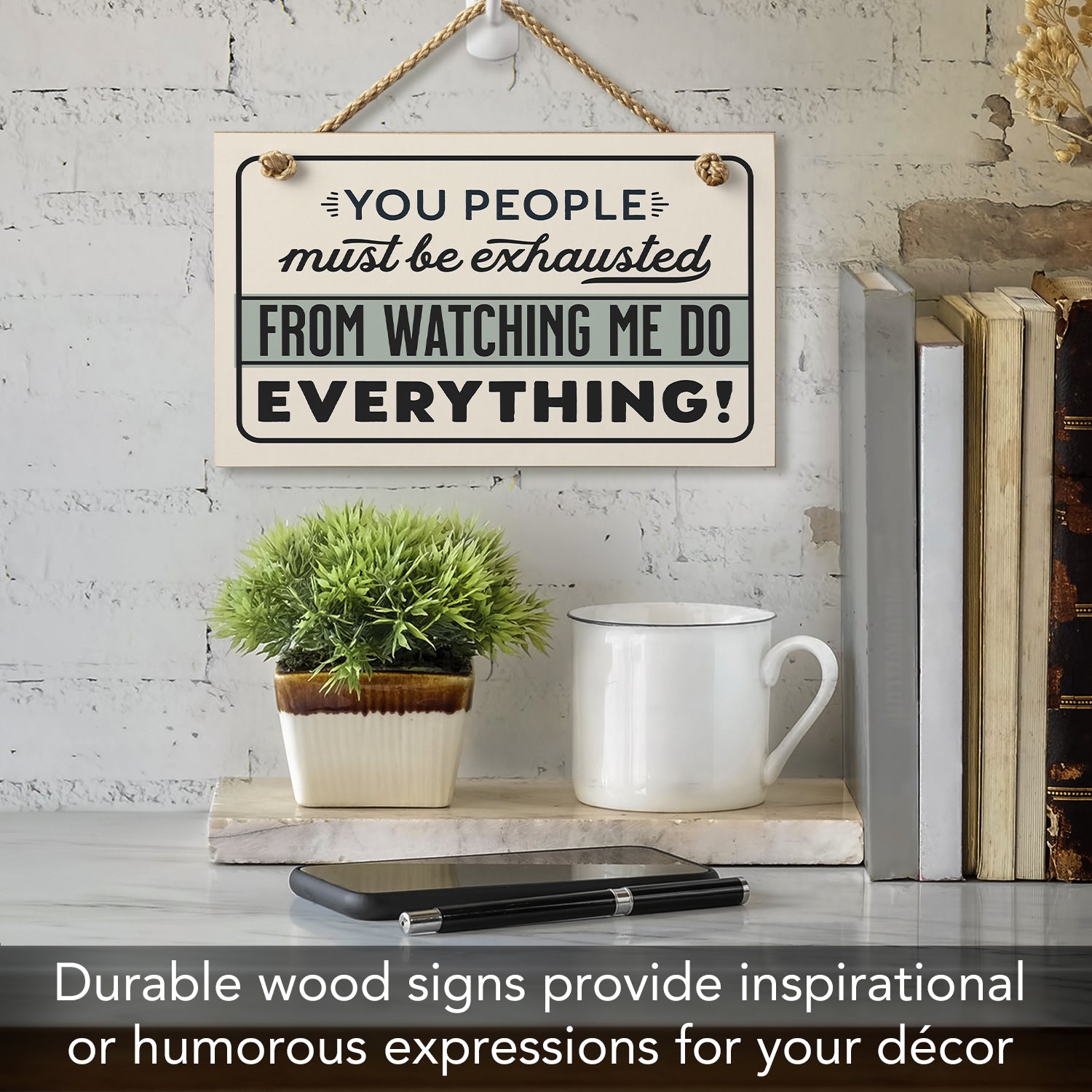 Exhausted From Watching Me Humorous Hanging Wood Wall Sign 9.5" x 5.75" Made in the USA